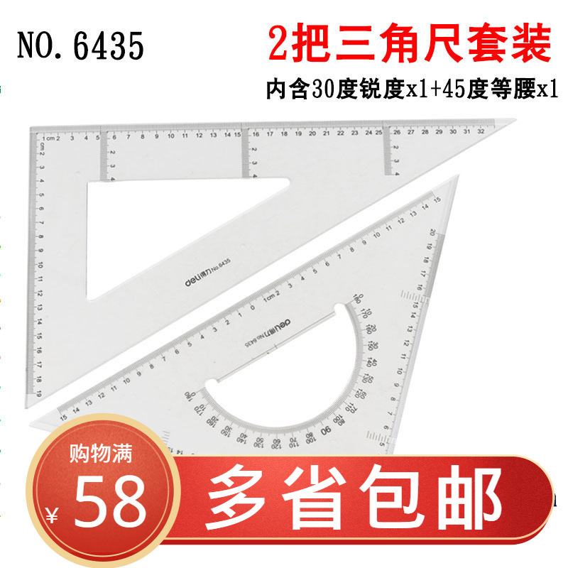 델리 6435 삼각형 통치자 대형 삼각형 플라스틱 투명 통치자 세트 33cm 드로잉 통치자 2 세트스토어 가기