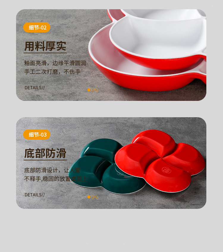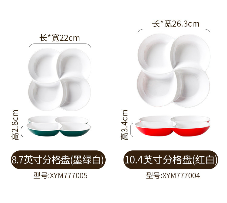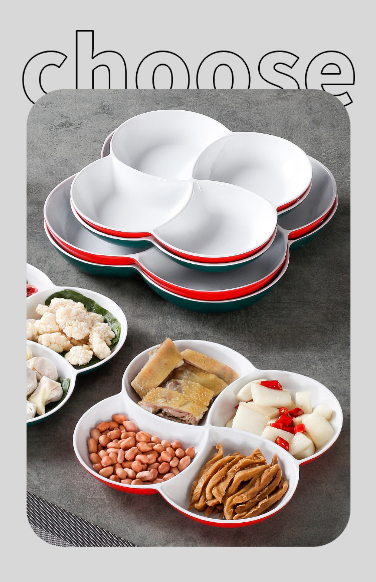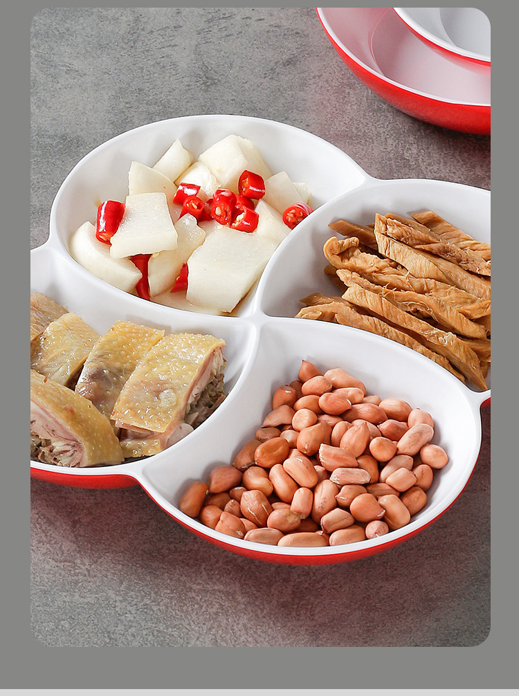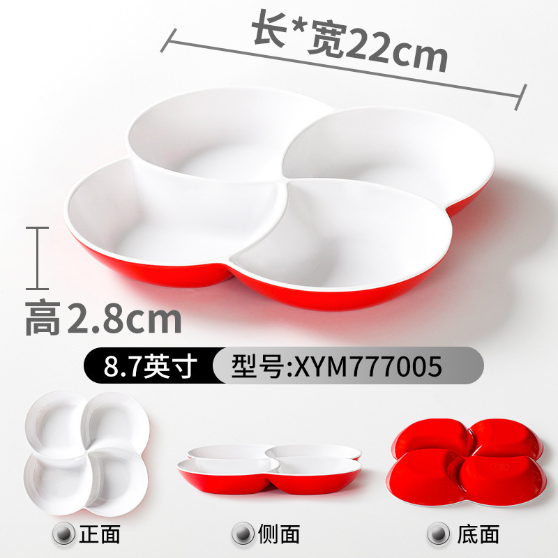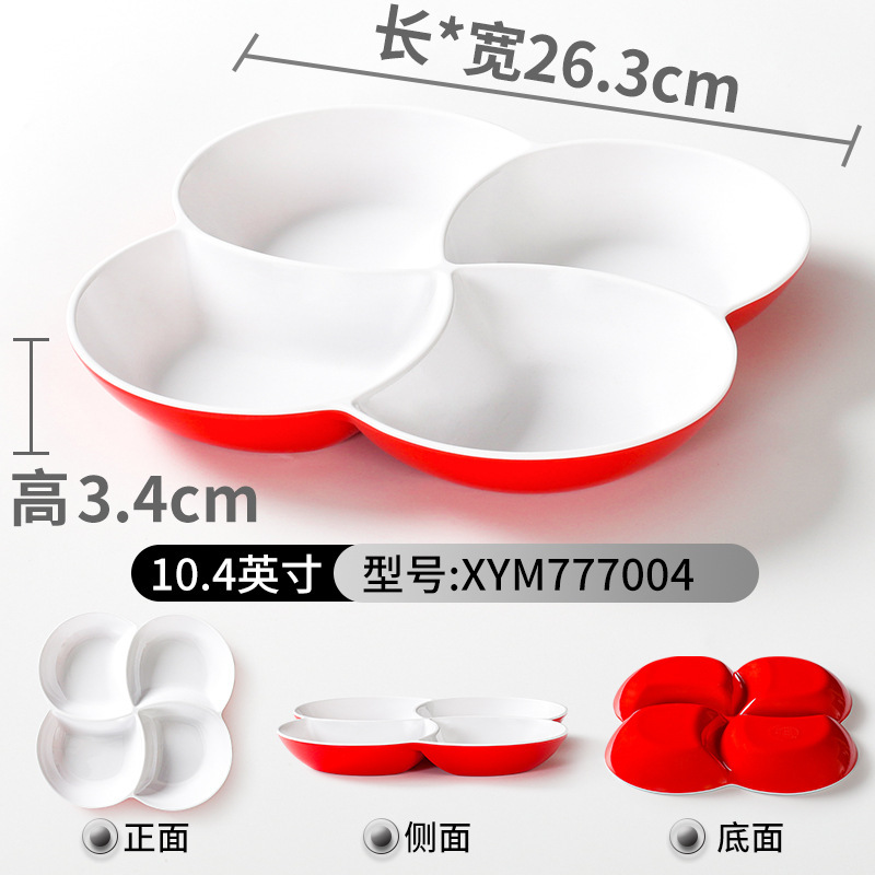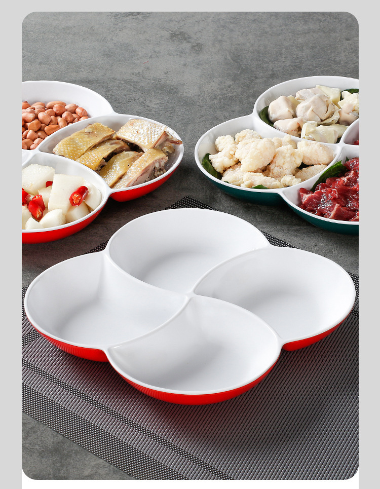 멜라민 식기 플레이트 모방 도자기 플레이트 스낵 플레이트 상업 플라스틱 4 그리드 플레이트 창조적 인 말린 과일 너트 플레이트 그리드 플레이트 플레이트스토어 가기