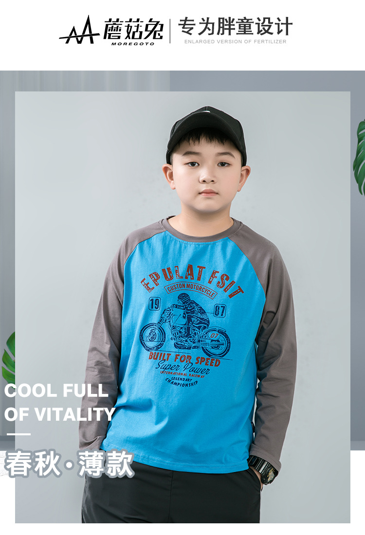 버섯 토끼 통통한 아동복 남아 긴팔 티셔츠 봄과 가을 얇은 2023 새로운 대형 플러스 사이즈 십대 의류스토어 가기