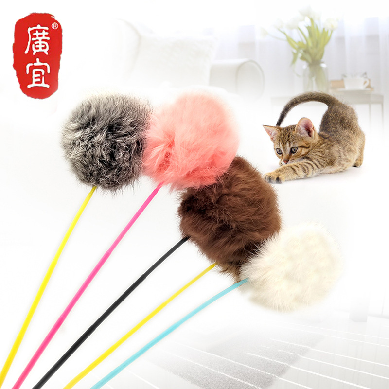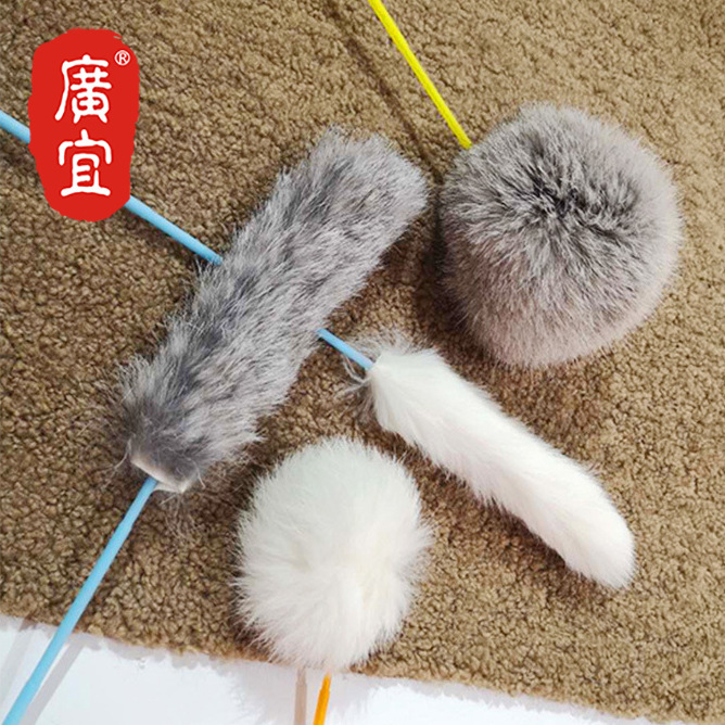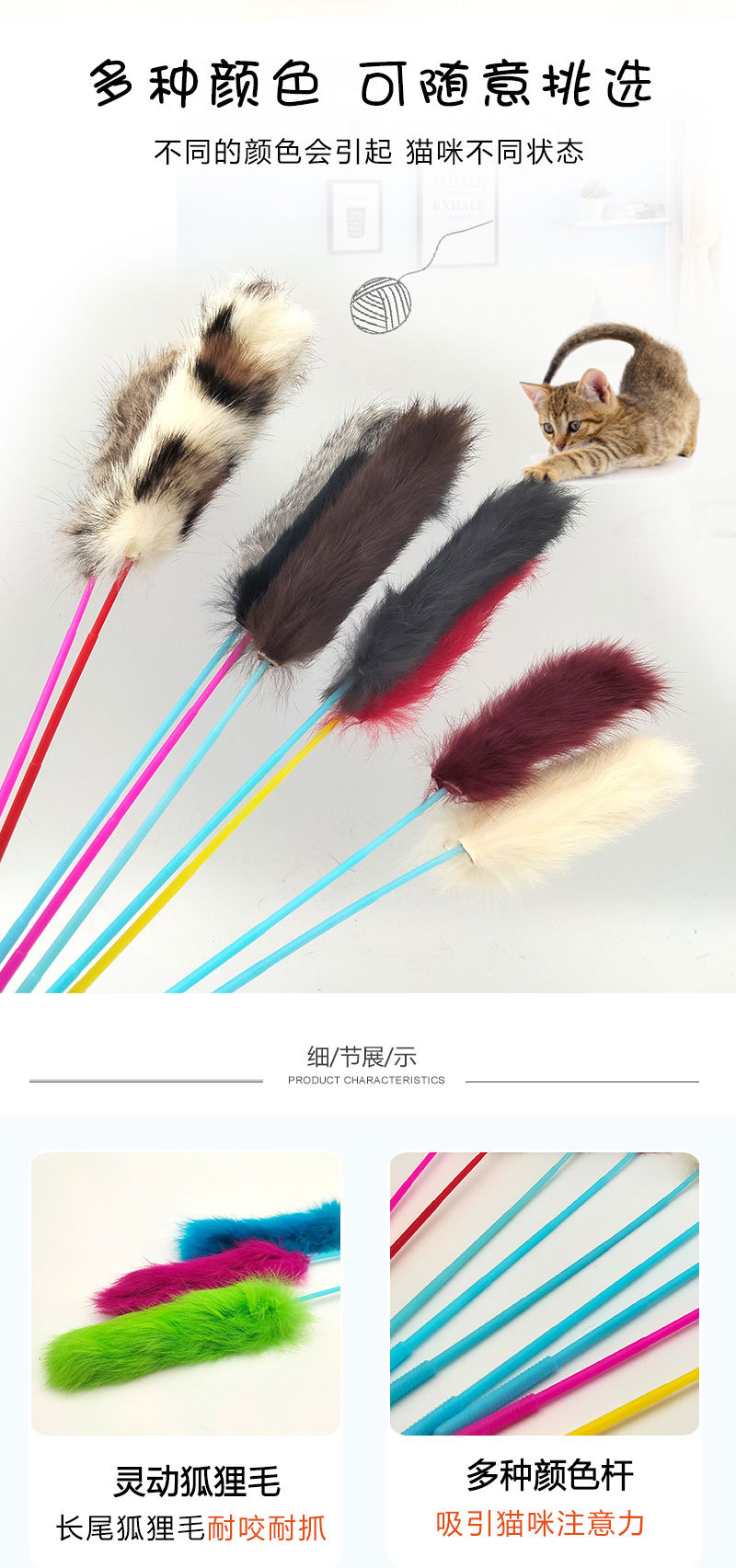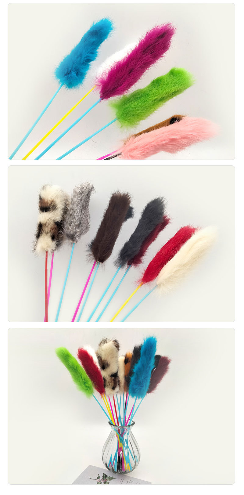 토끼 모피 놀리는 고양이 스틱 모피 공 긴 고양이 장난감 고양이 좋아하는 애완 동물 제품