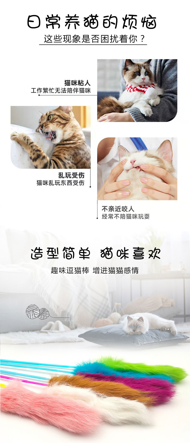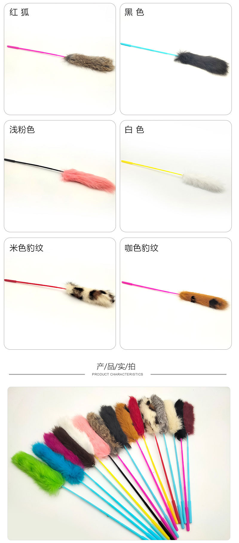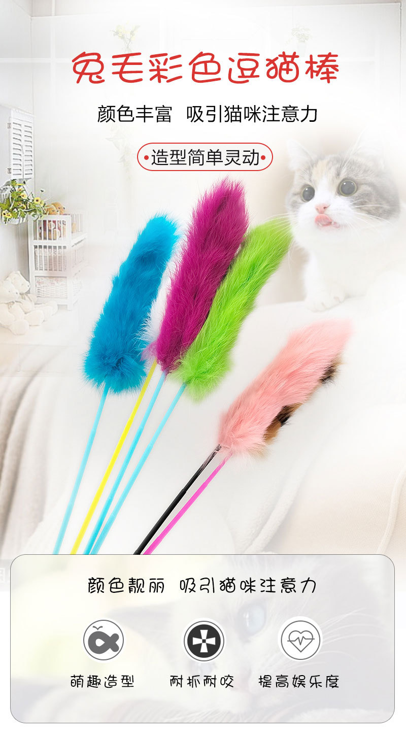 토끼 모피 놀리는 고양이 스틱 모피 공 긴 고양이 장난감 고양이 좋아하는 애완 동물 제품