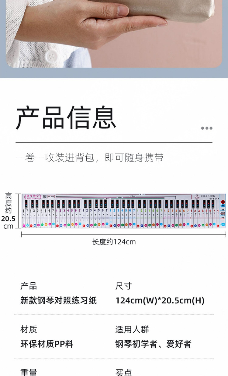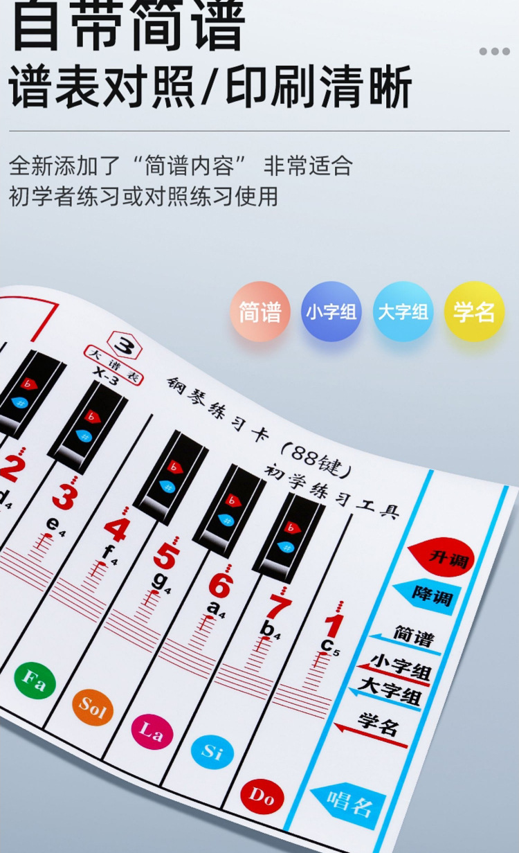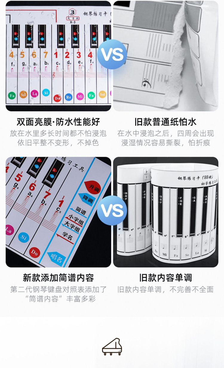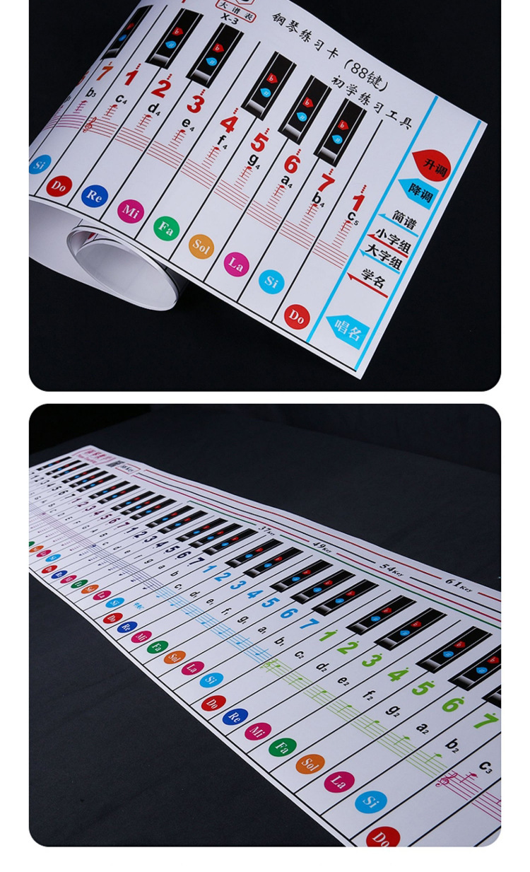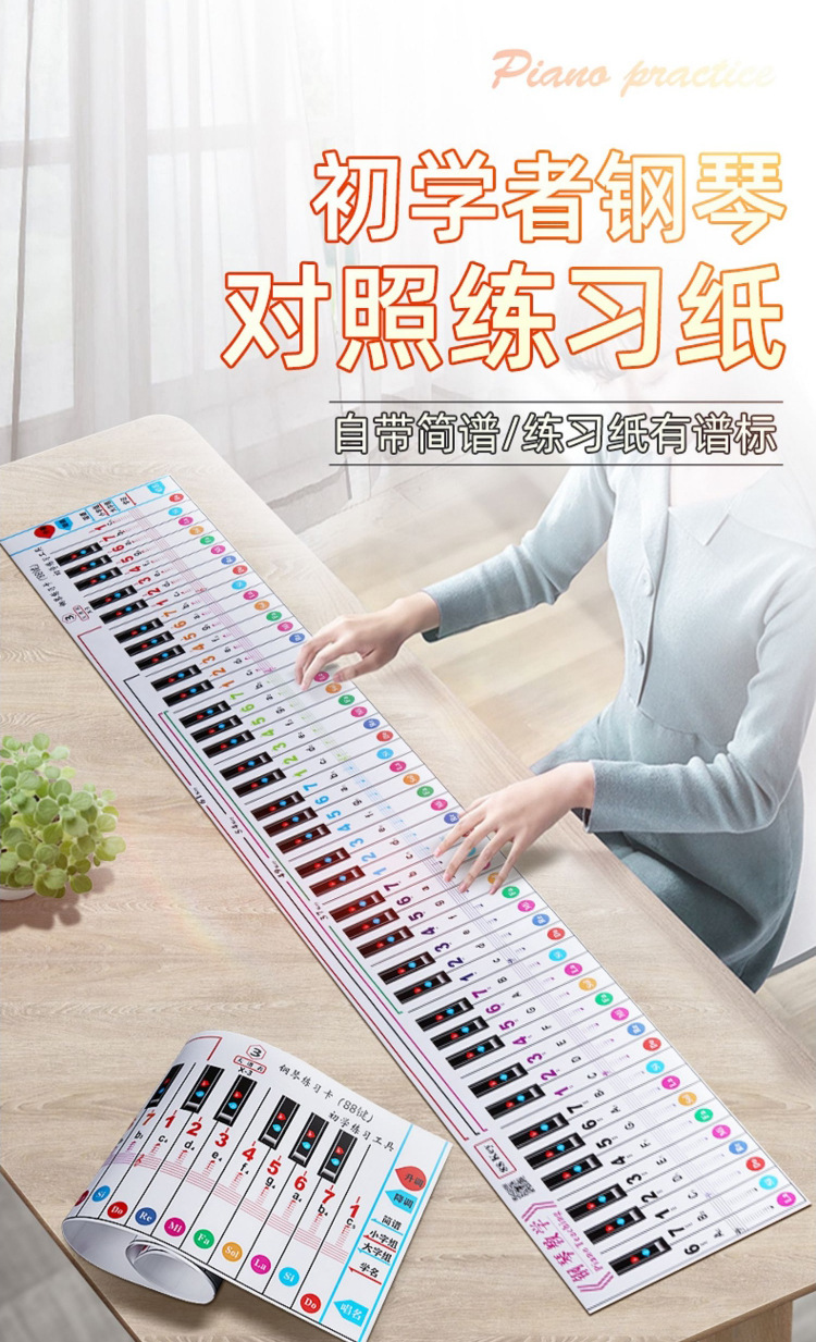 88 키 휴대용 피아노 키보드 드로잉 핸드 롤 피아노 초급 연습 카드 연습 5 라인 스펙트럼 간단한 스펙트럼 비교 테이블