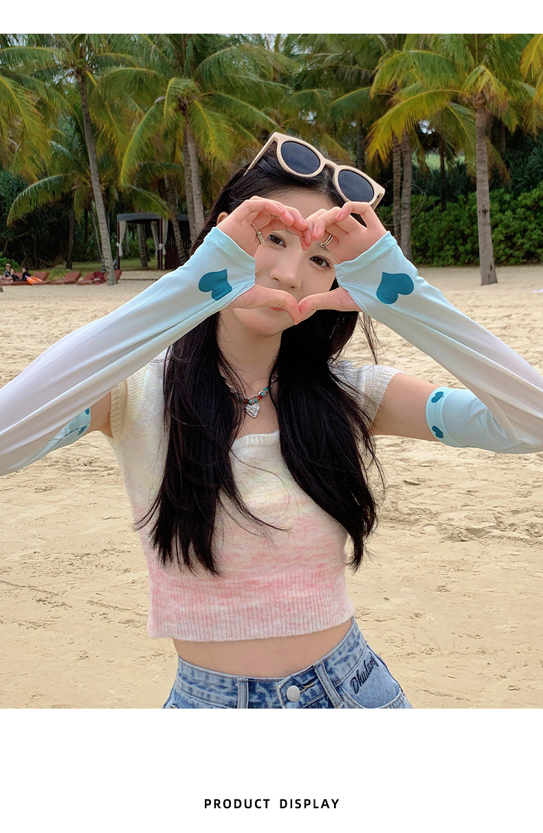 2023 여름 새로운 스타일 아이스 슬리브 러브 스타일 여성용 편안한 느슨한 발신 자외선 차단 아이스 실크 슬리브