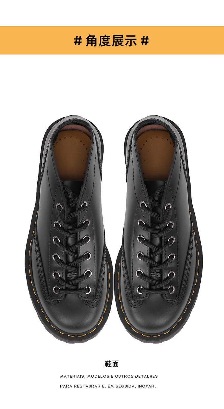 빈티지 앤티크 두꺼운 밑창 짧은 얼굴 부츠 여성용 Goodyear Craft 빈티지 마틴 탑 레이어 소가죽 툴링 슈즈