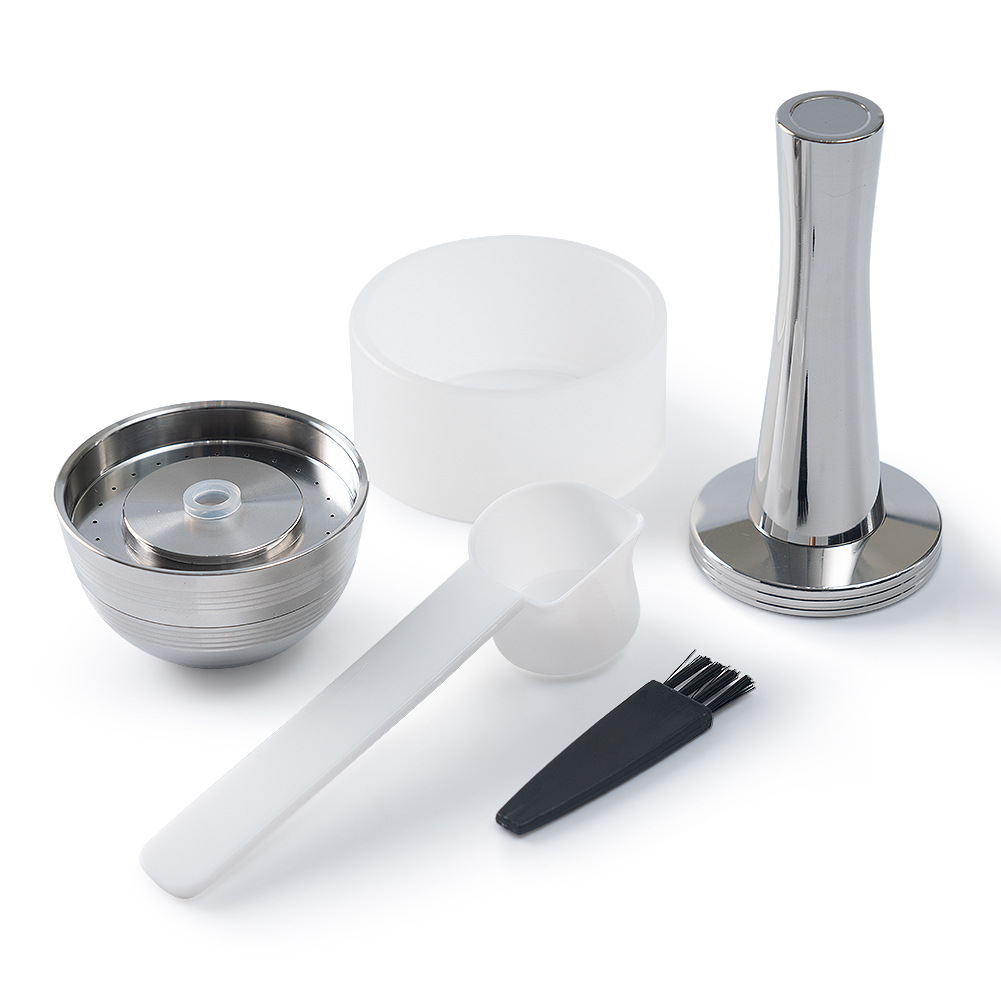 • 다크 브라운 캡슐 컵 5 개 (150ml) + 대형 네슬레 실리콘 커버 2 개 + 스푼 브러쉬