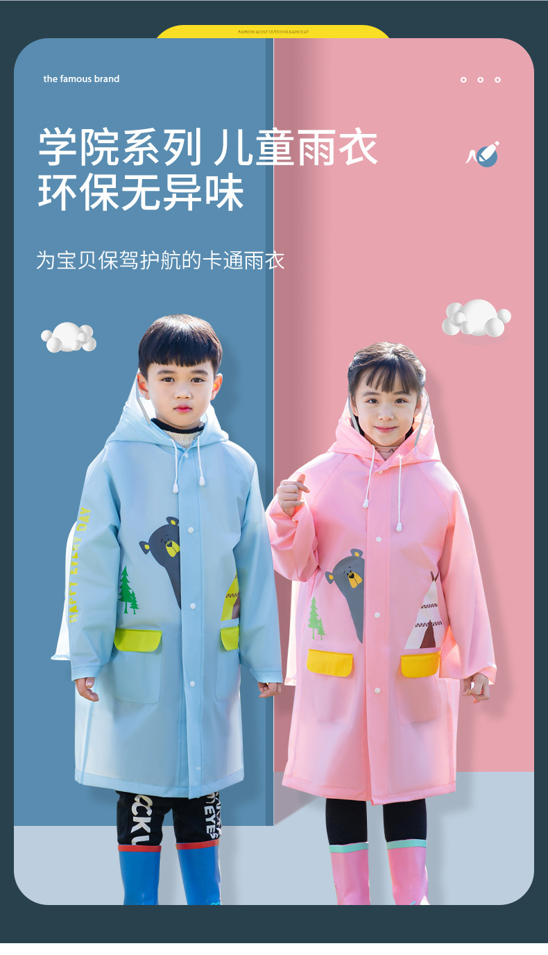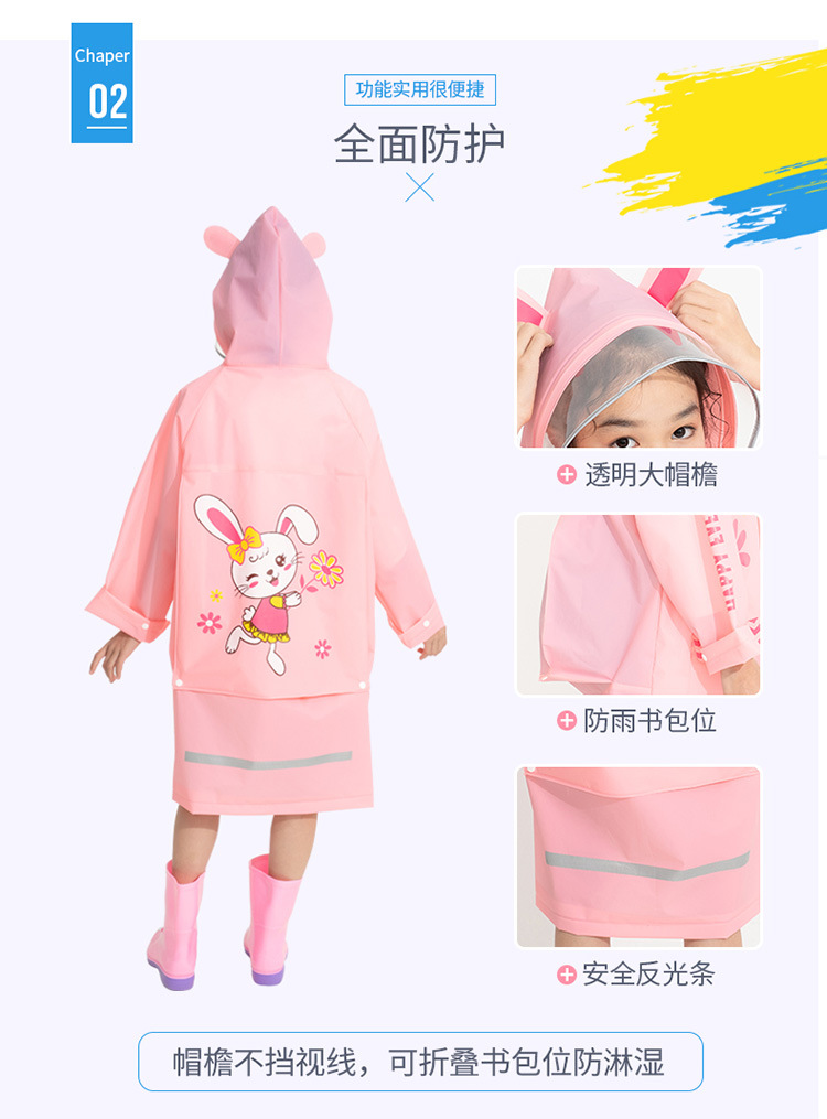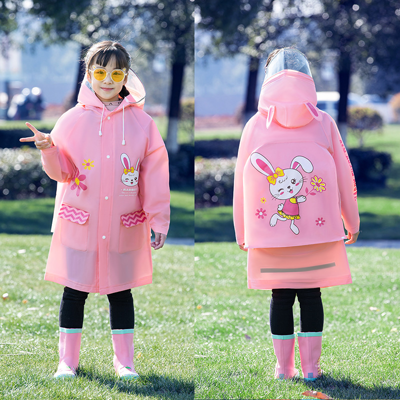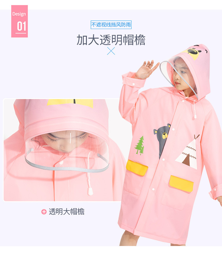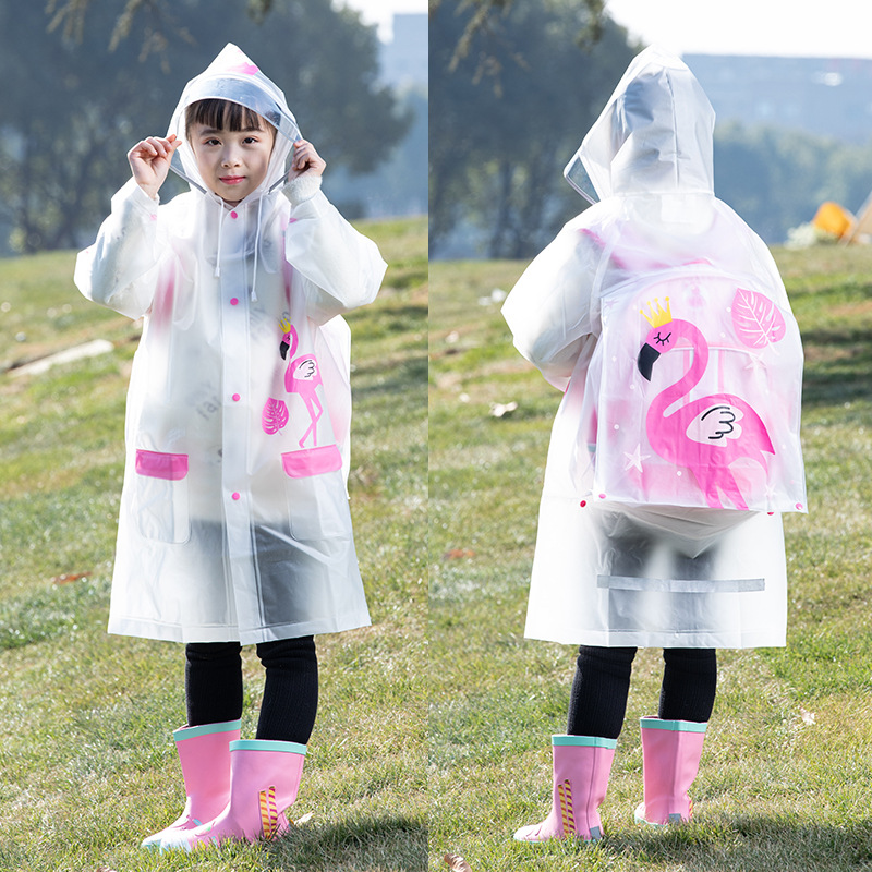 Mingjia EVA 아동 배낭 우비 두꺼운 증가 투명 모자 챙 바디 방수 판초 소스 공장 직판