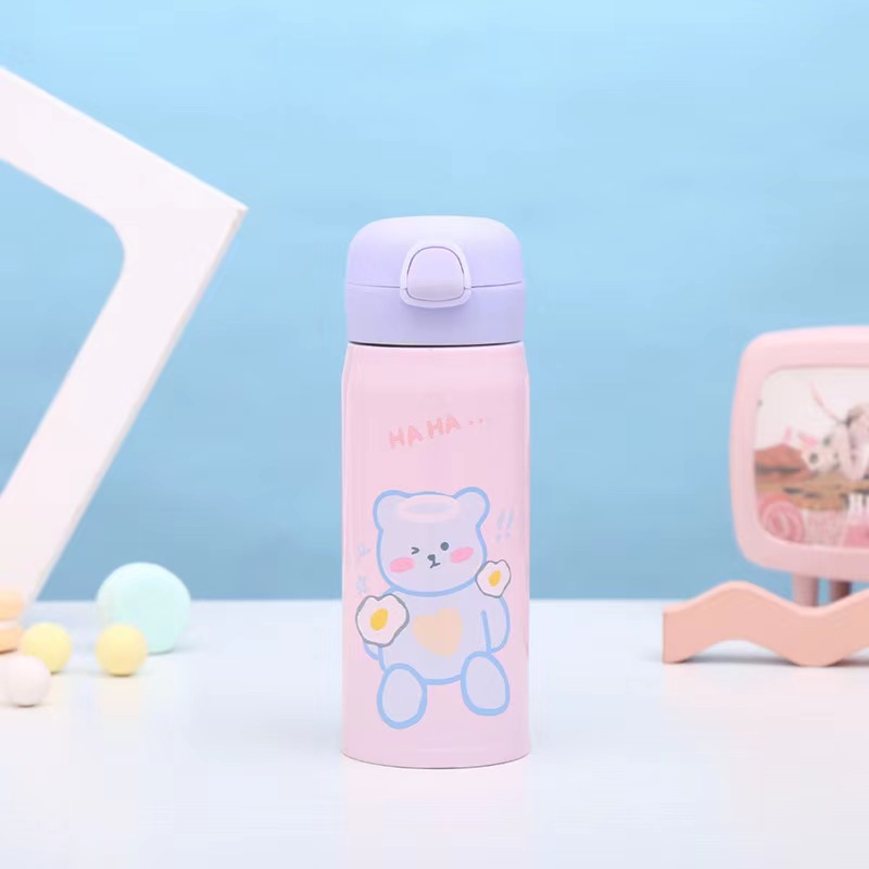 만화 튀는 컵 휴대용 어린이 보온병 컵 304 스테인레스 스틸 흡입 컵 이중 진공 컵 재고스토어 가기