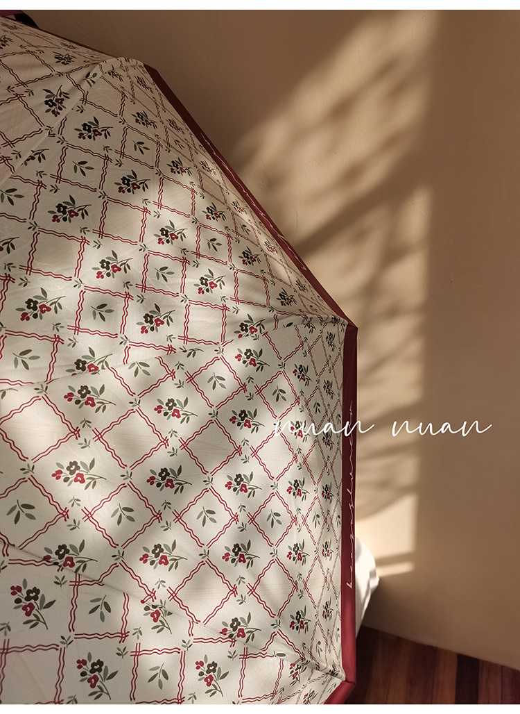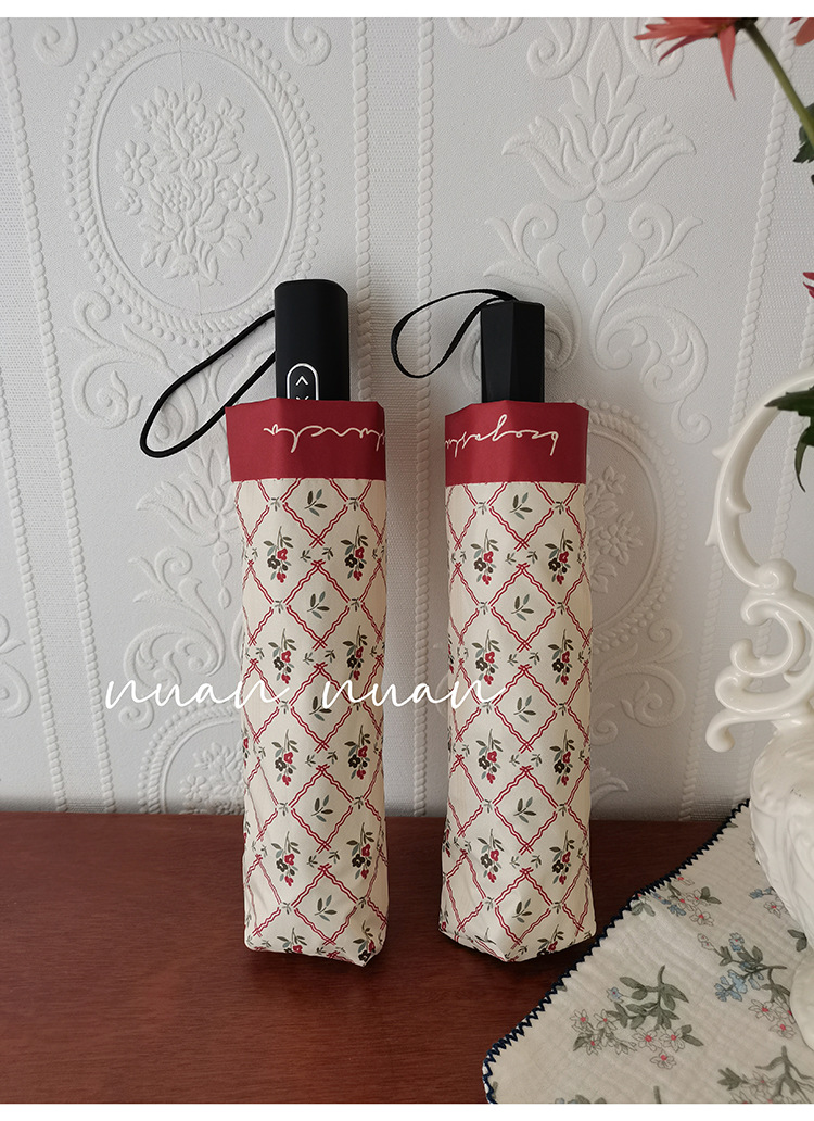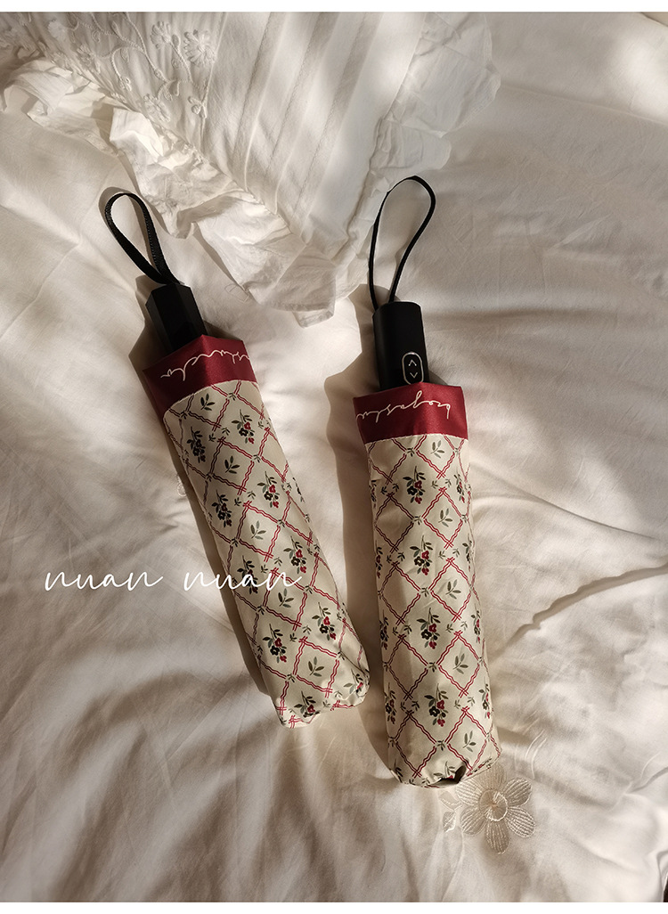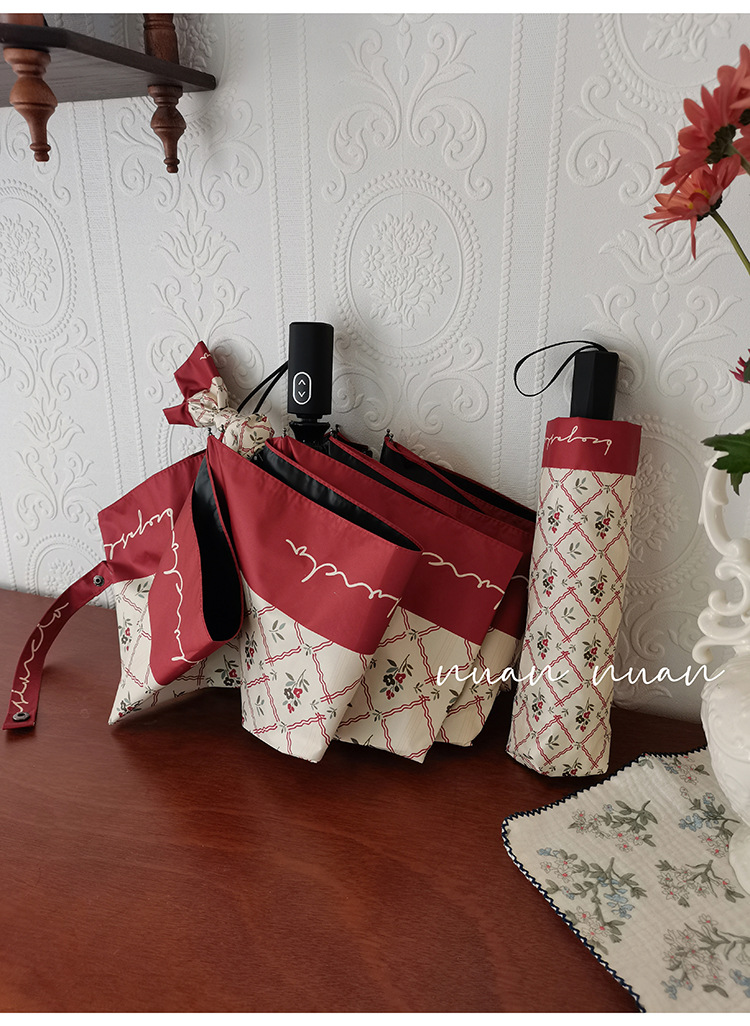 빈티지 작은 꽃 접는 우산 여성의 이중 목적 완전 자동 강력하고 튼튼한 자외선 차단제 자외선 차단 태양 우산