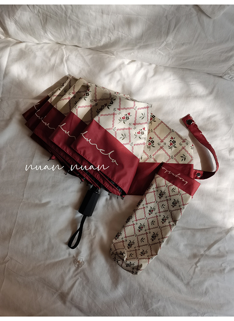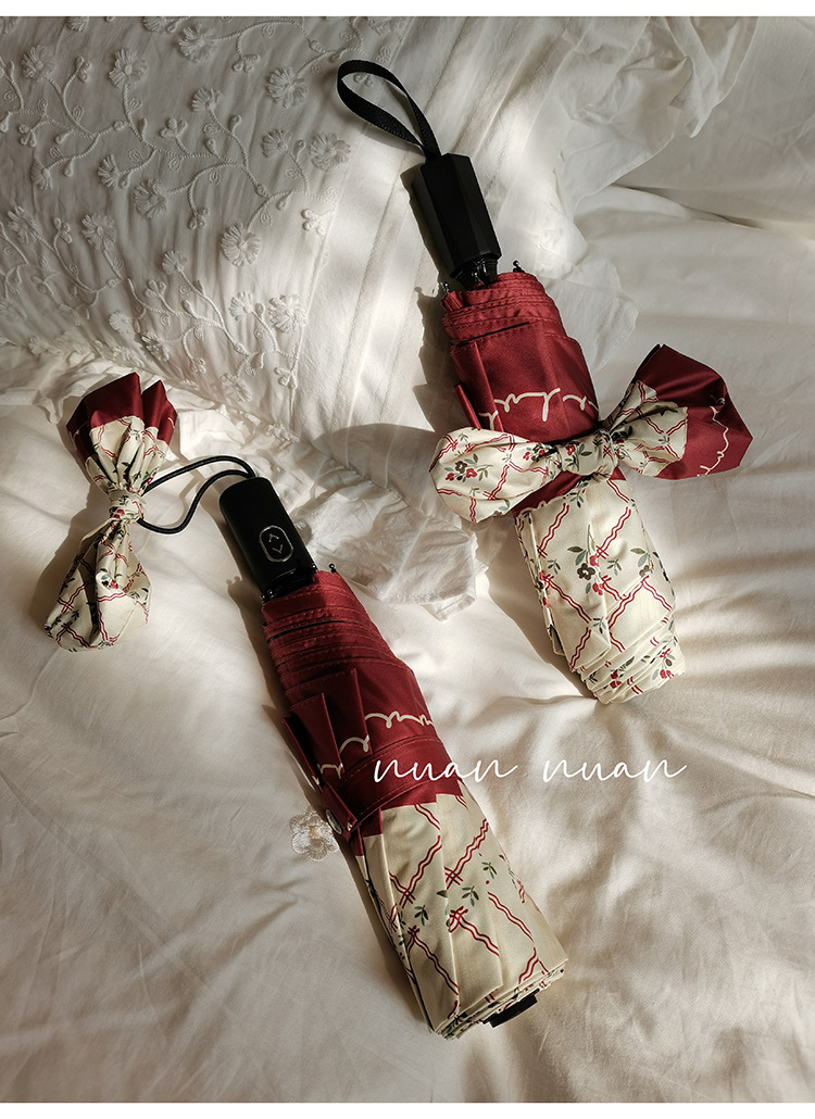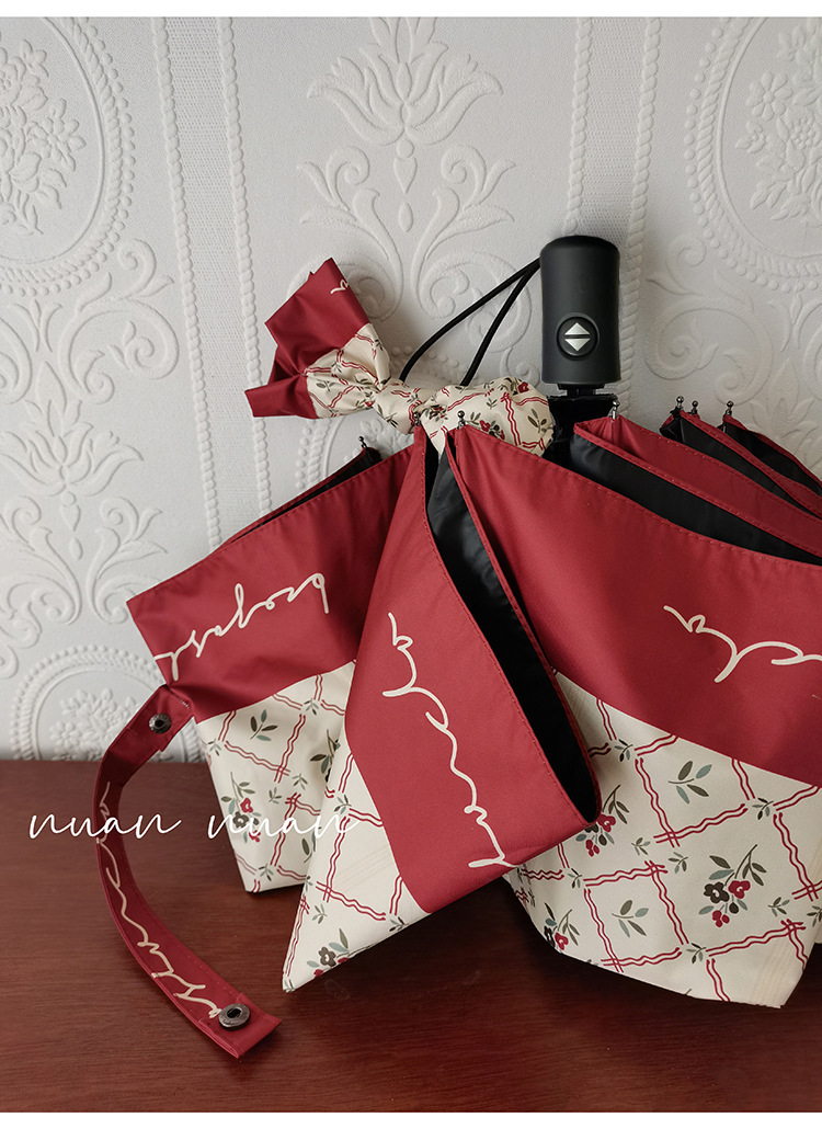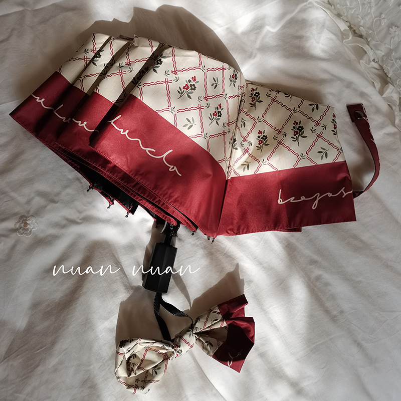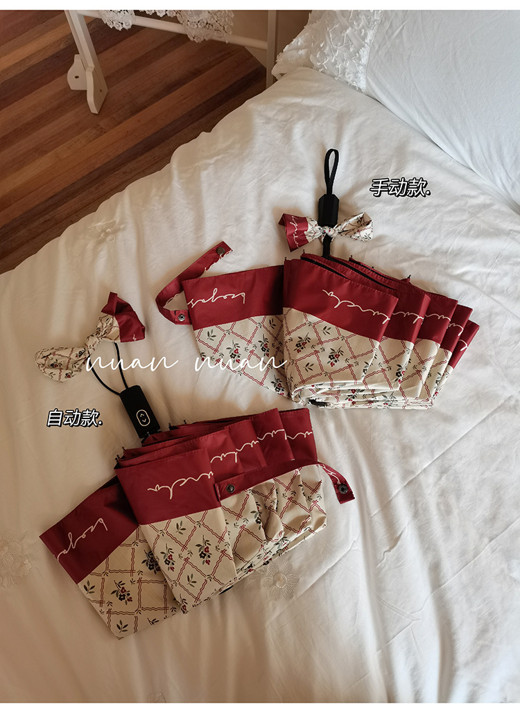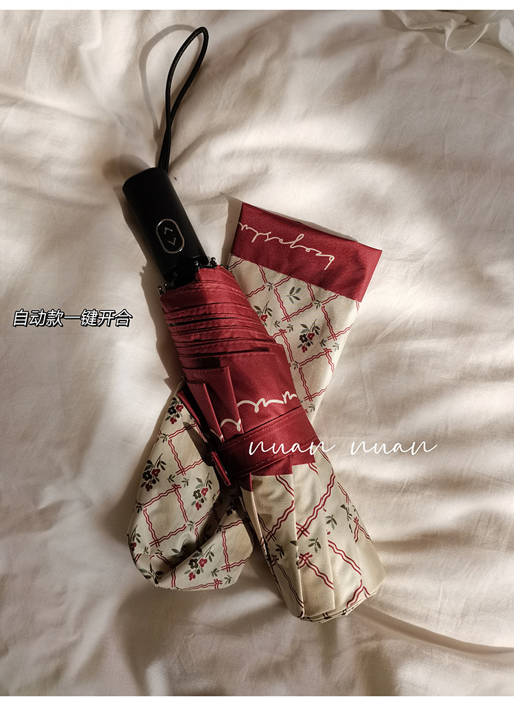 빈티지 작은 꽃 접는 우산 여성의 이중 목적 완전 자동 강력하고 튼튼한 자외선 차단제 자외선 차단 태양 우산스토어 가기