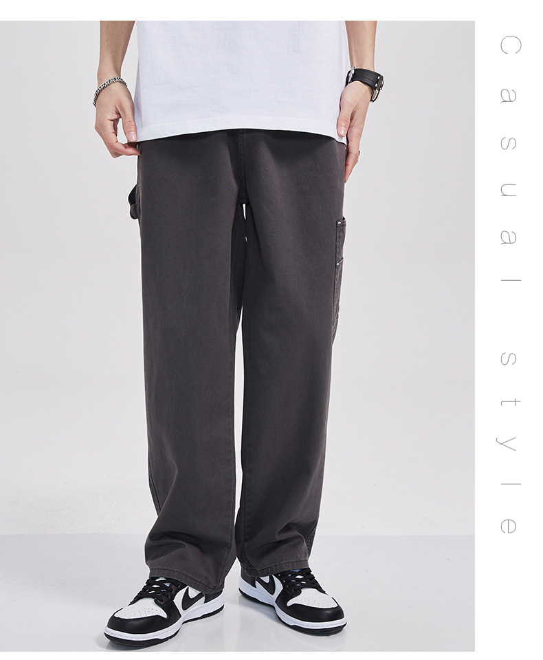 xxbro 남성복 # 트렌디한 하이 스트리트 스타일의 순면 살구색 워크 팬츠, 활용도 높은 루즈핏 남녀공용 캐주얼 데님 팬츠