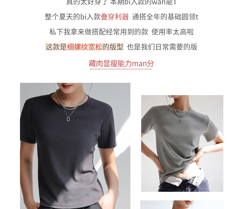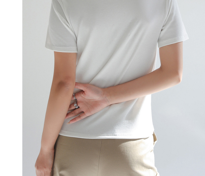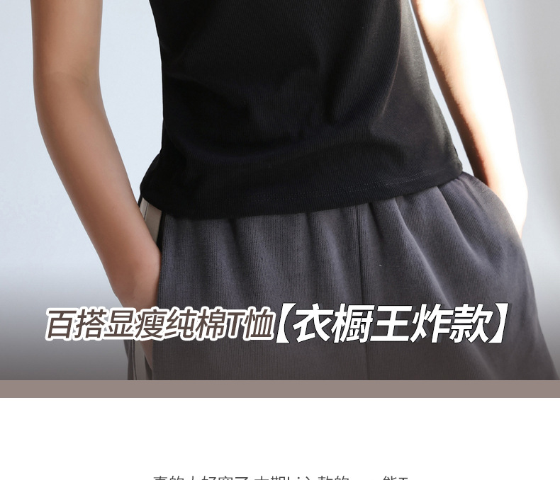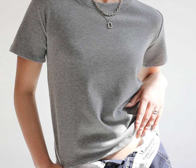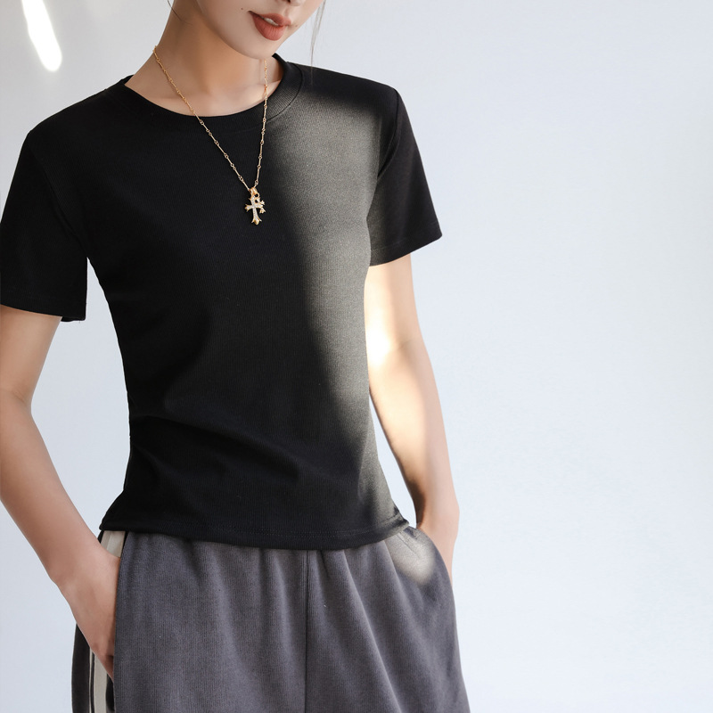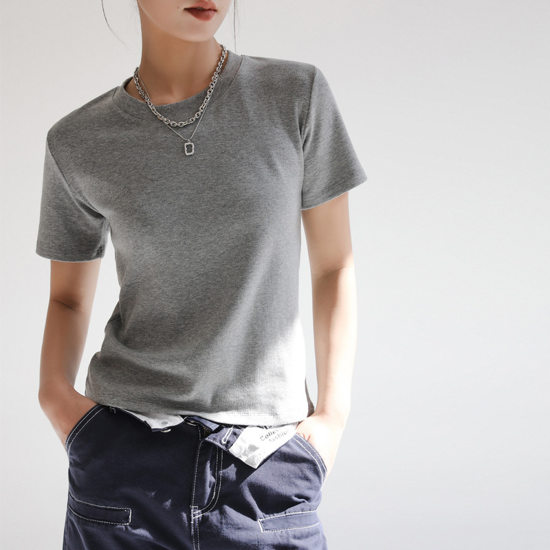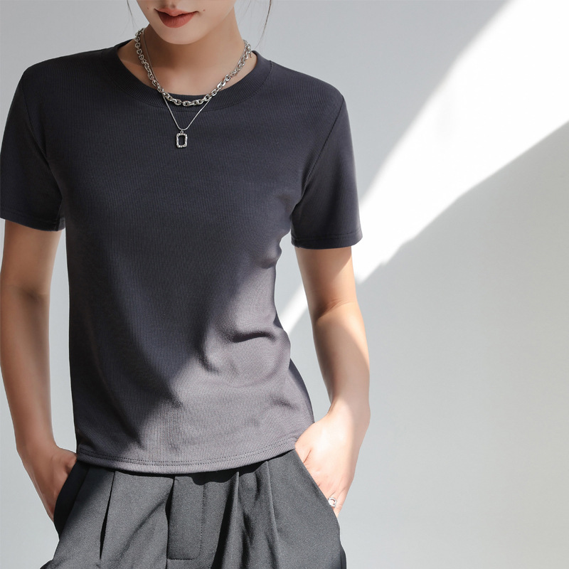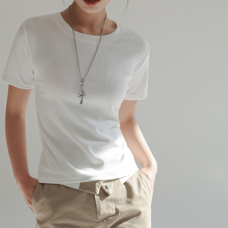 Q 여름 스레드 코튼 라운드 넥 솔리드 컬러 반팔 여성 루즈 한 한국 스타일 바닥 오른쪽 어깨 티셔츠 심플 다용도 탑스토어 가기
