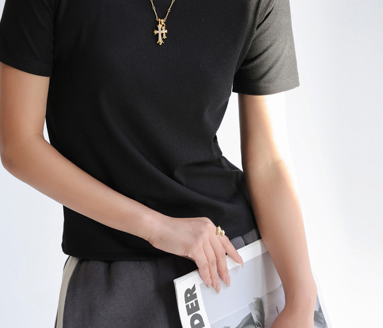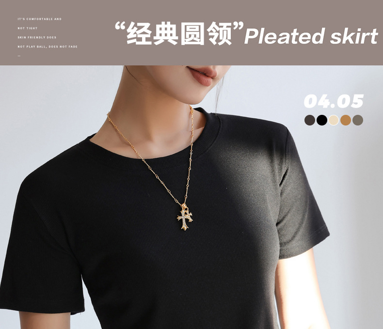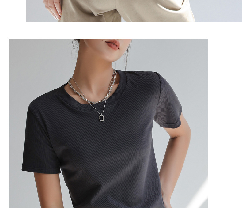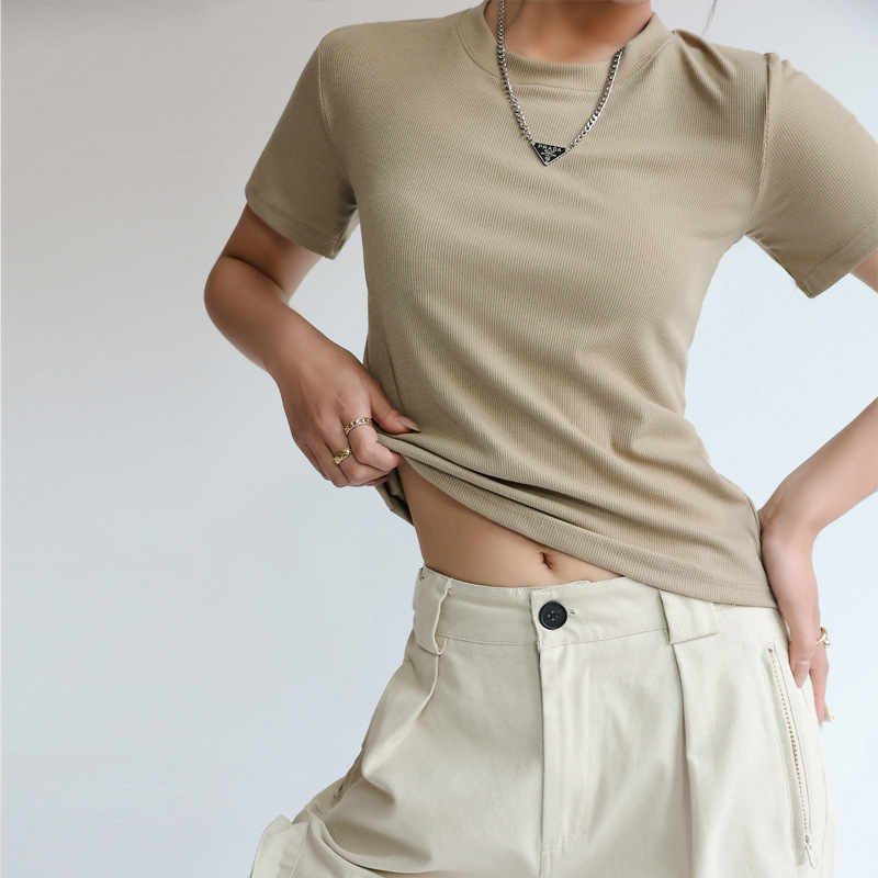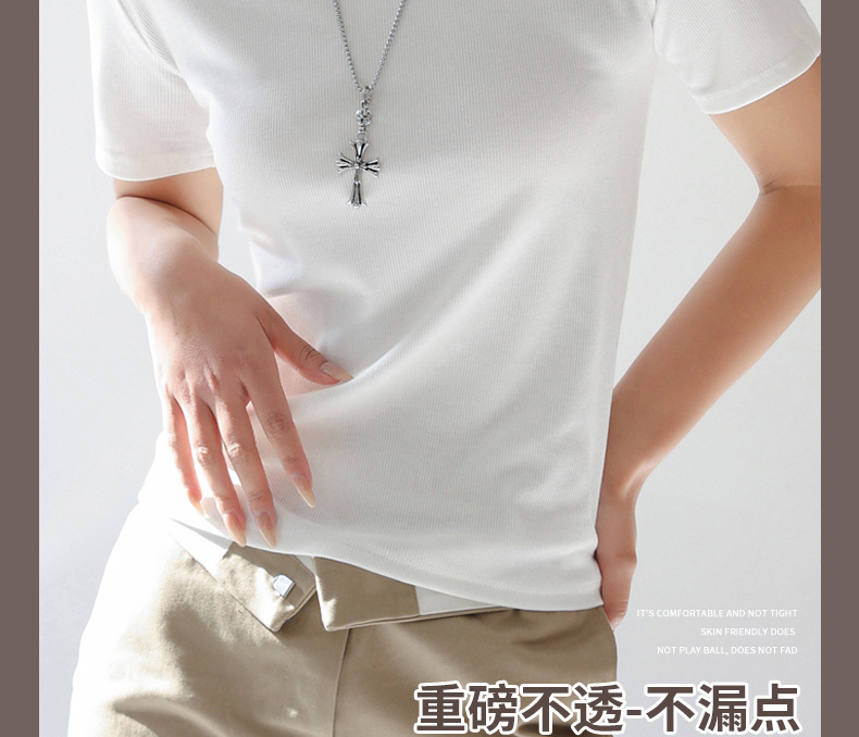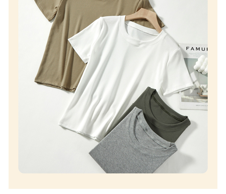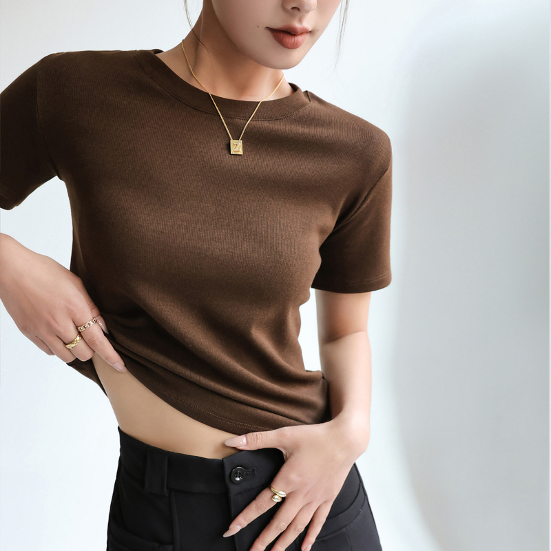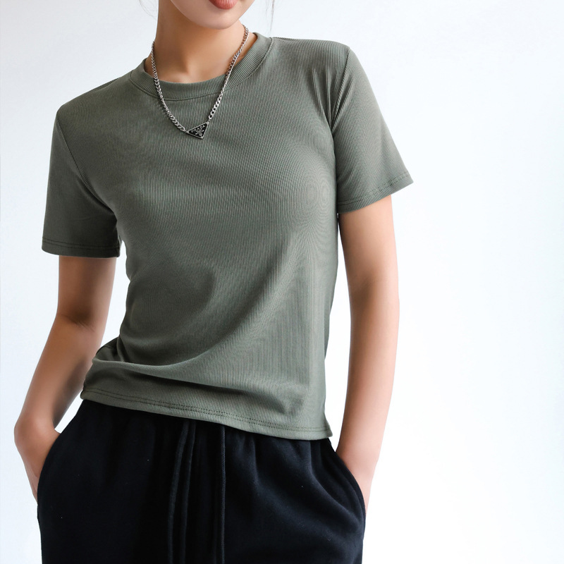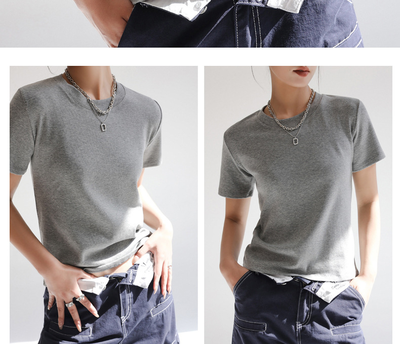 Q 여름 스레드 코튼 라운드 넥 솔리드 컬러 반팔 여성 루즈 한 한국 스타일 바닥 오른쪽 어깨 티셔츠 심플 다용도 탑스토어 가기