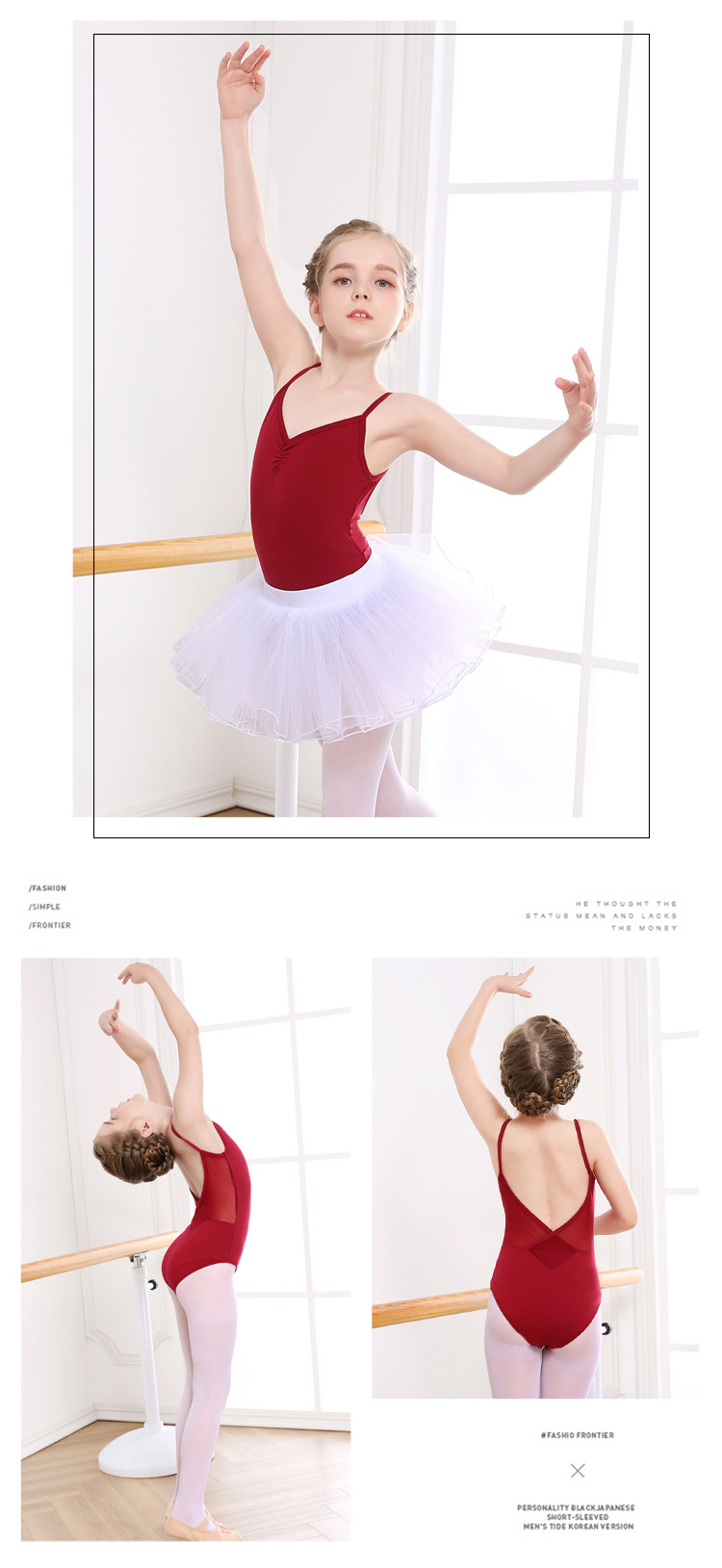 • 버건디 레이스 멜빵 + 흰색 투투 스커트