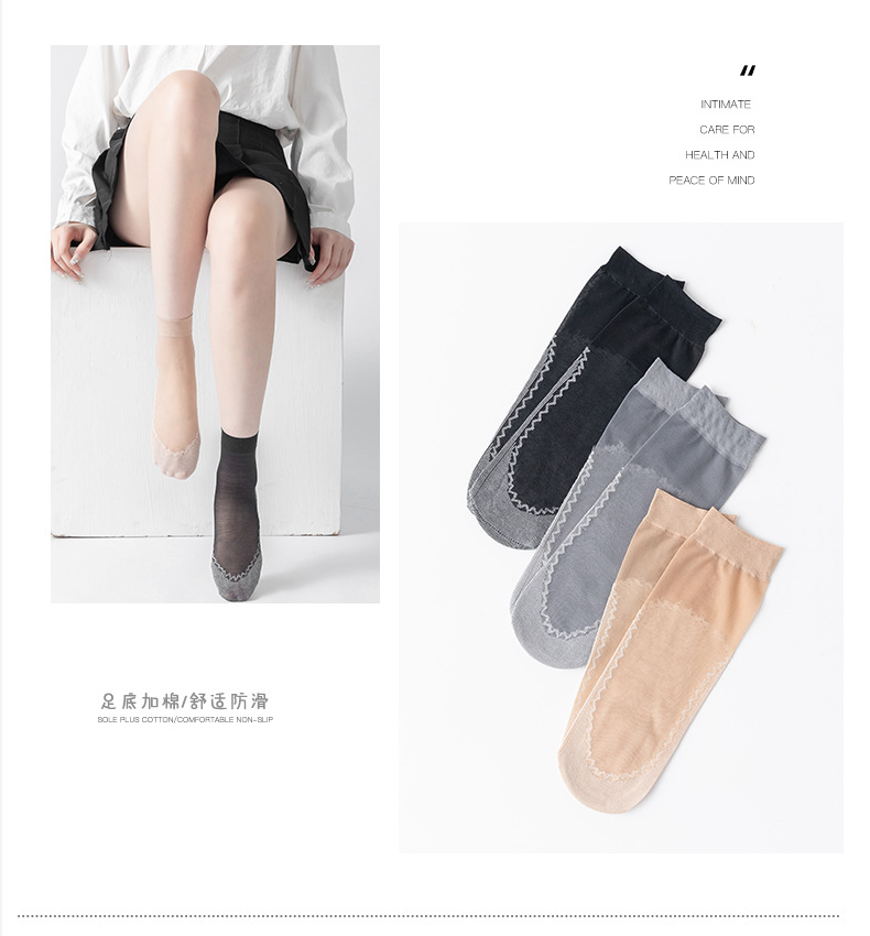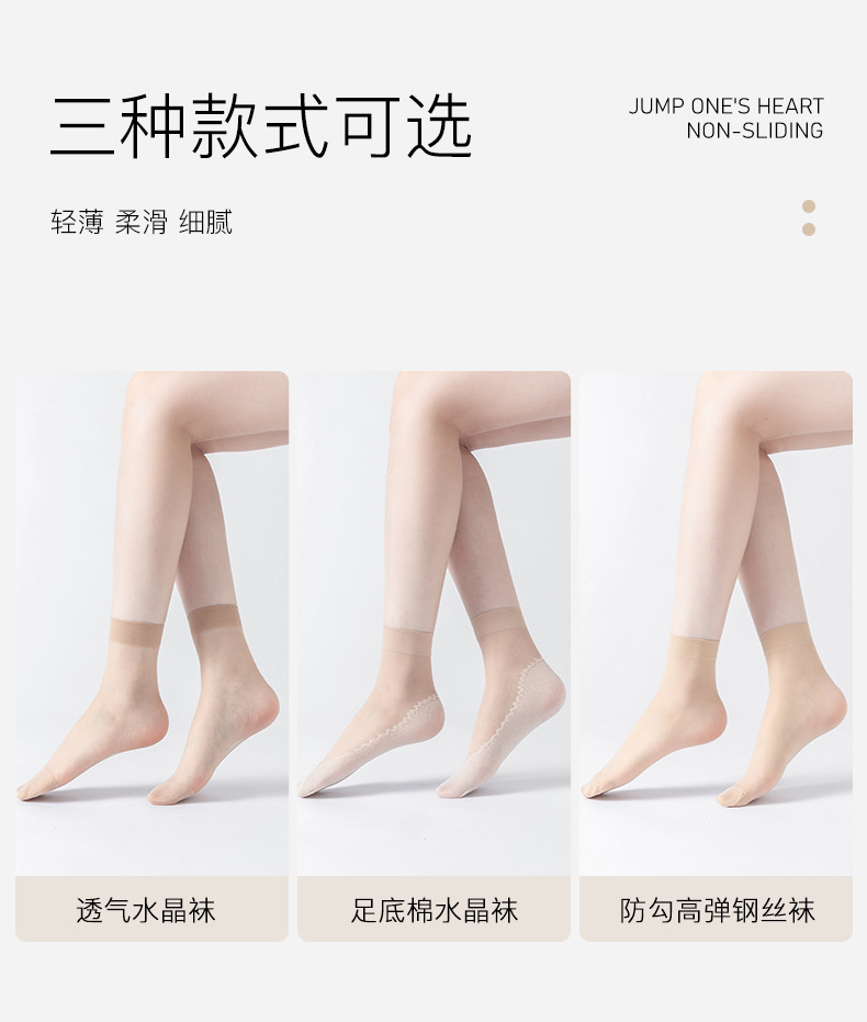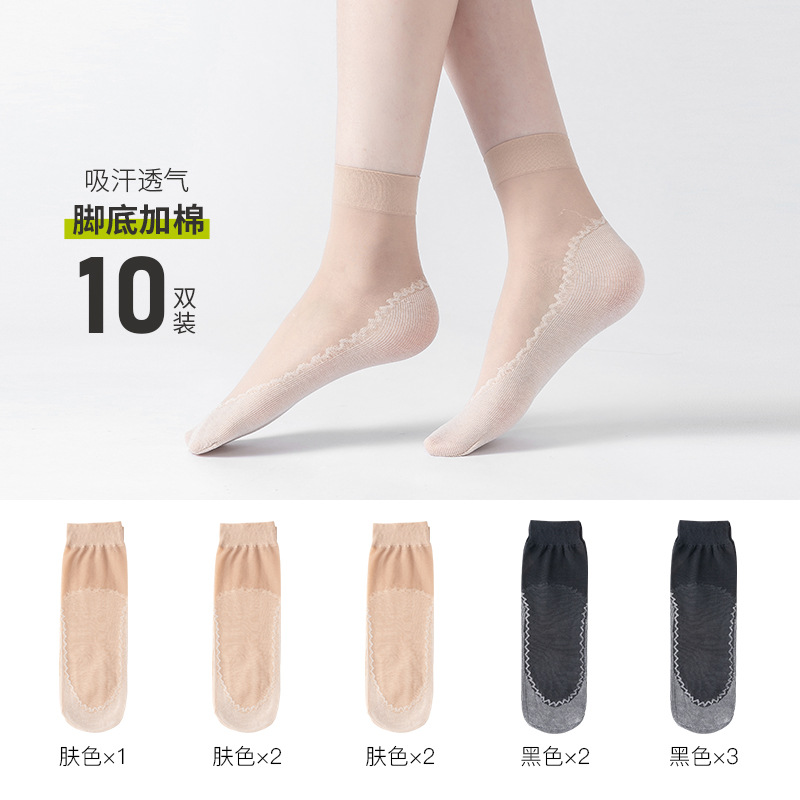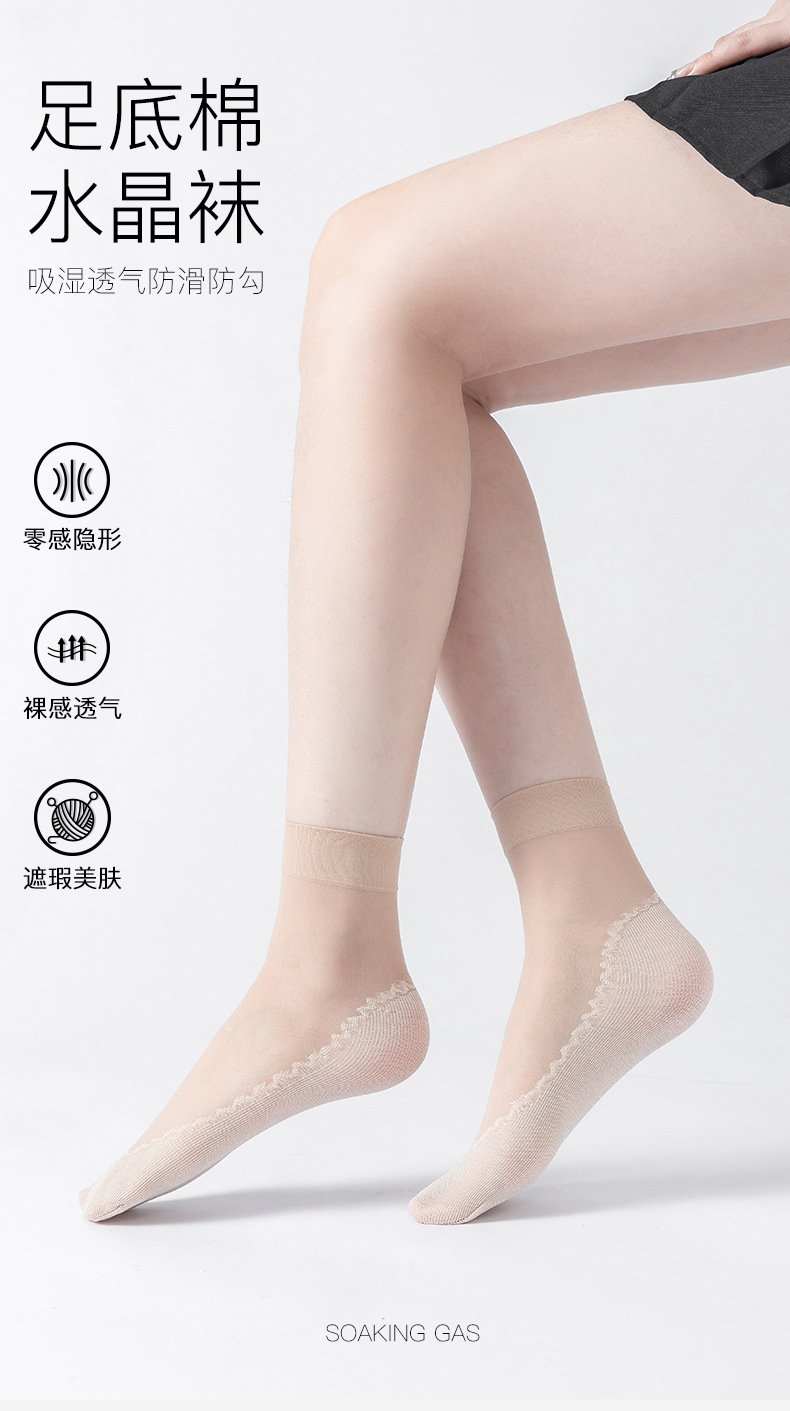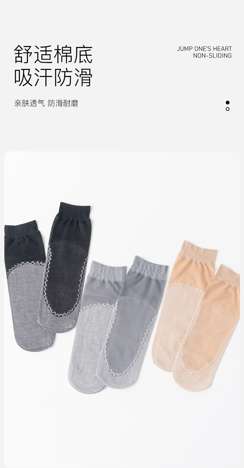 보너스 코튼 바닥 짧은 스타킹 여성용 봄과 여름 얇은 크리스탈 실크 미끄럼 방지 짧은 스타킹 투명 걸림 방지 실크 내마모성 스틸 스타킹
