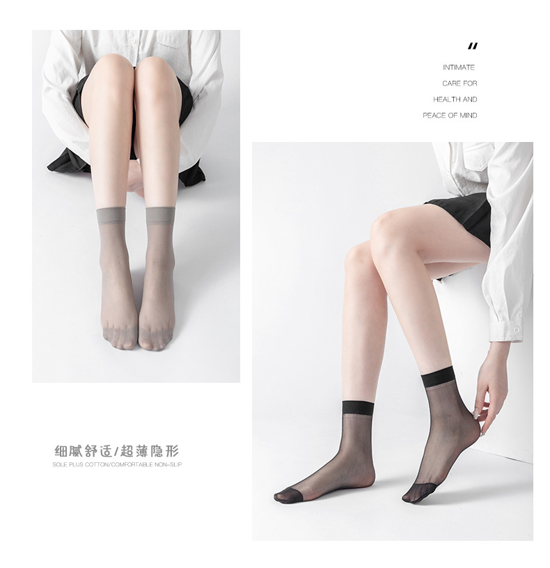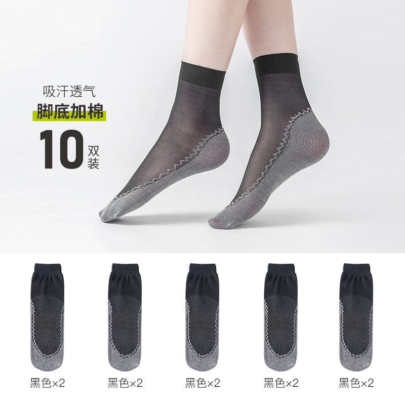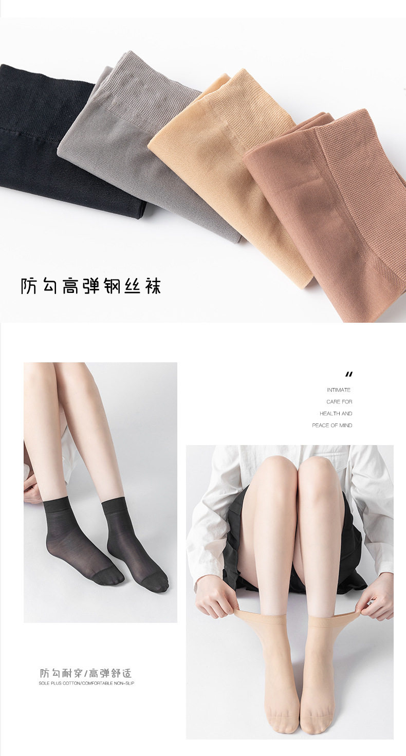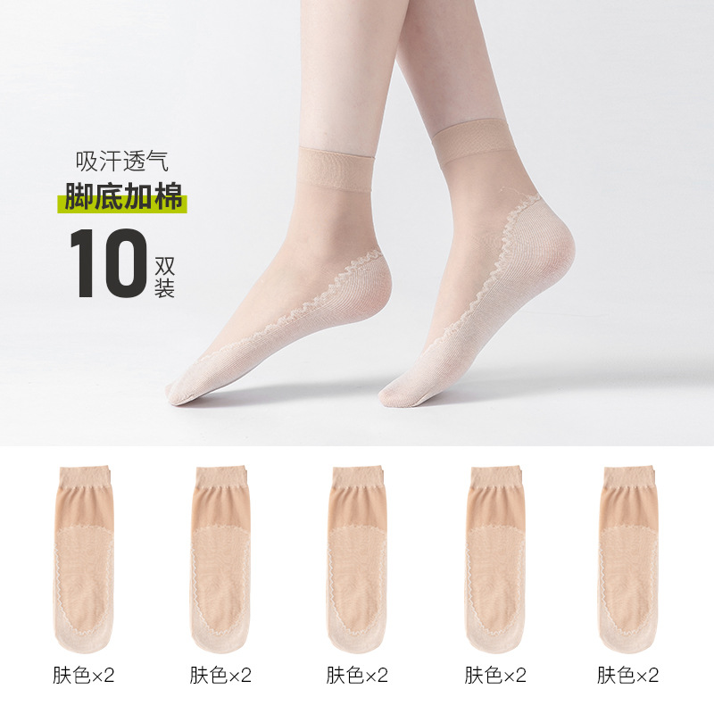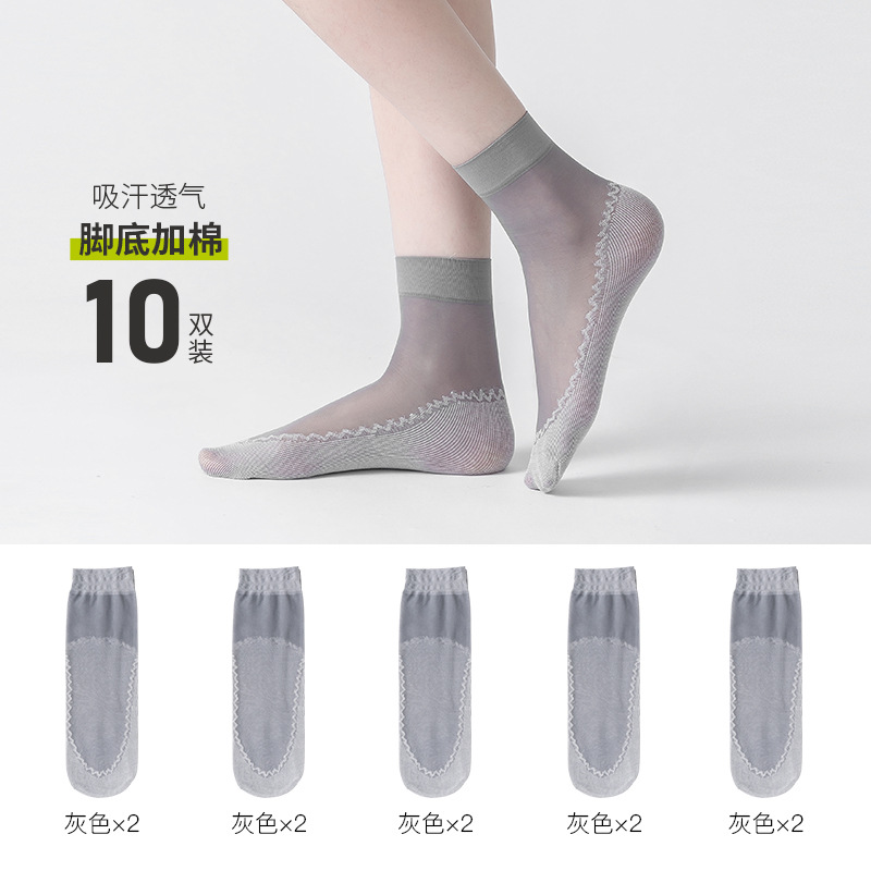 보너스 코튼 바닥 짧은 스타킹 여성용 봄과 여름 얇은 크리스탈 실크 미끄럼 방지 짧은 스타킹 투명 걸림 방지 실크 내마모성 스틸 스타킹