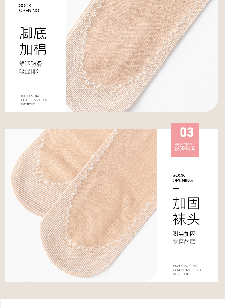 보너스 코튼 바닥 짧은 스타킹 여성용 봄과 여름 얇은 크리스탈 실크 미끄럼 방지 짧은 스타킹 투명 걸림 방지 실크 내마모성 스틸 스타킹스토어 가기