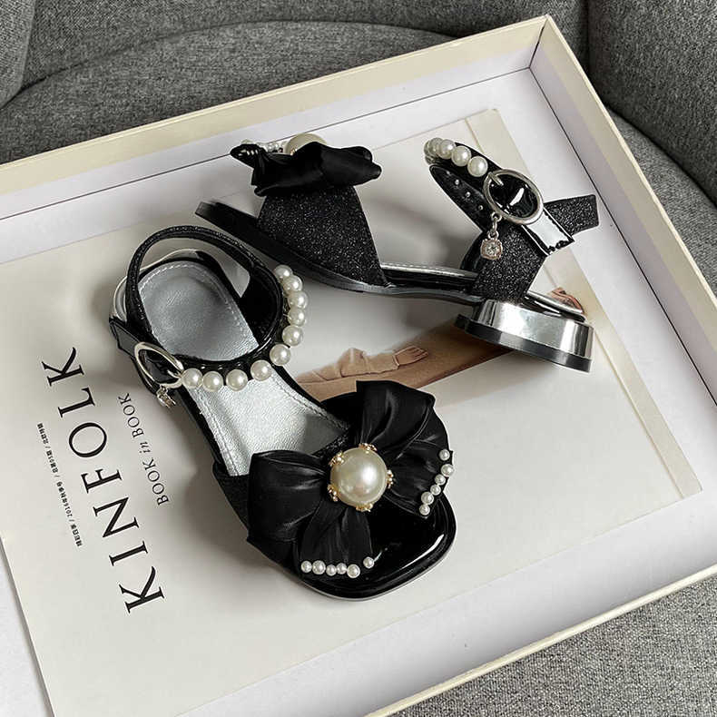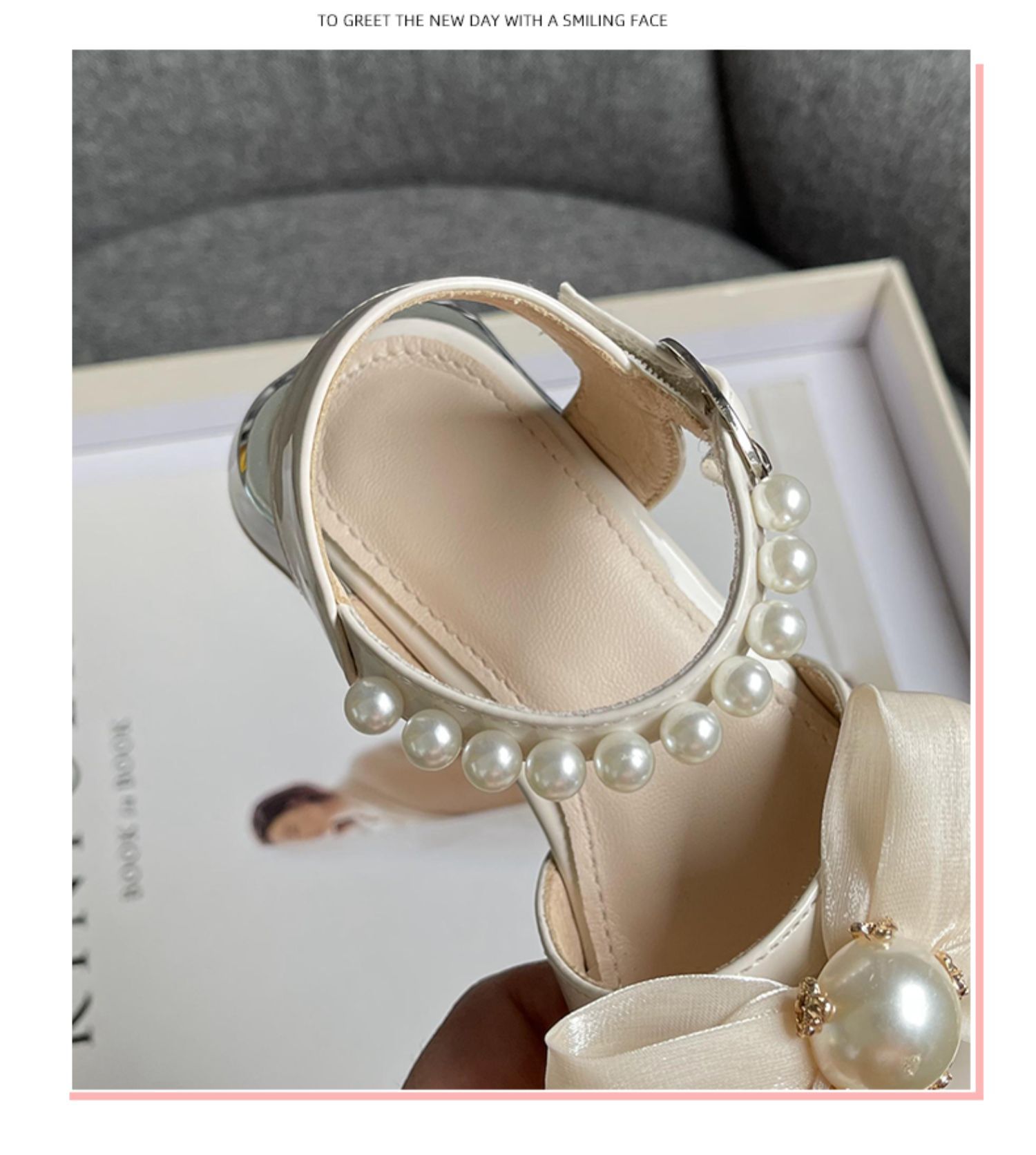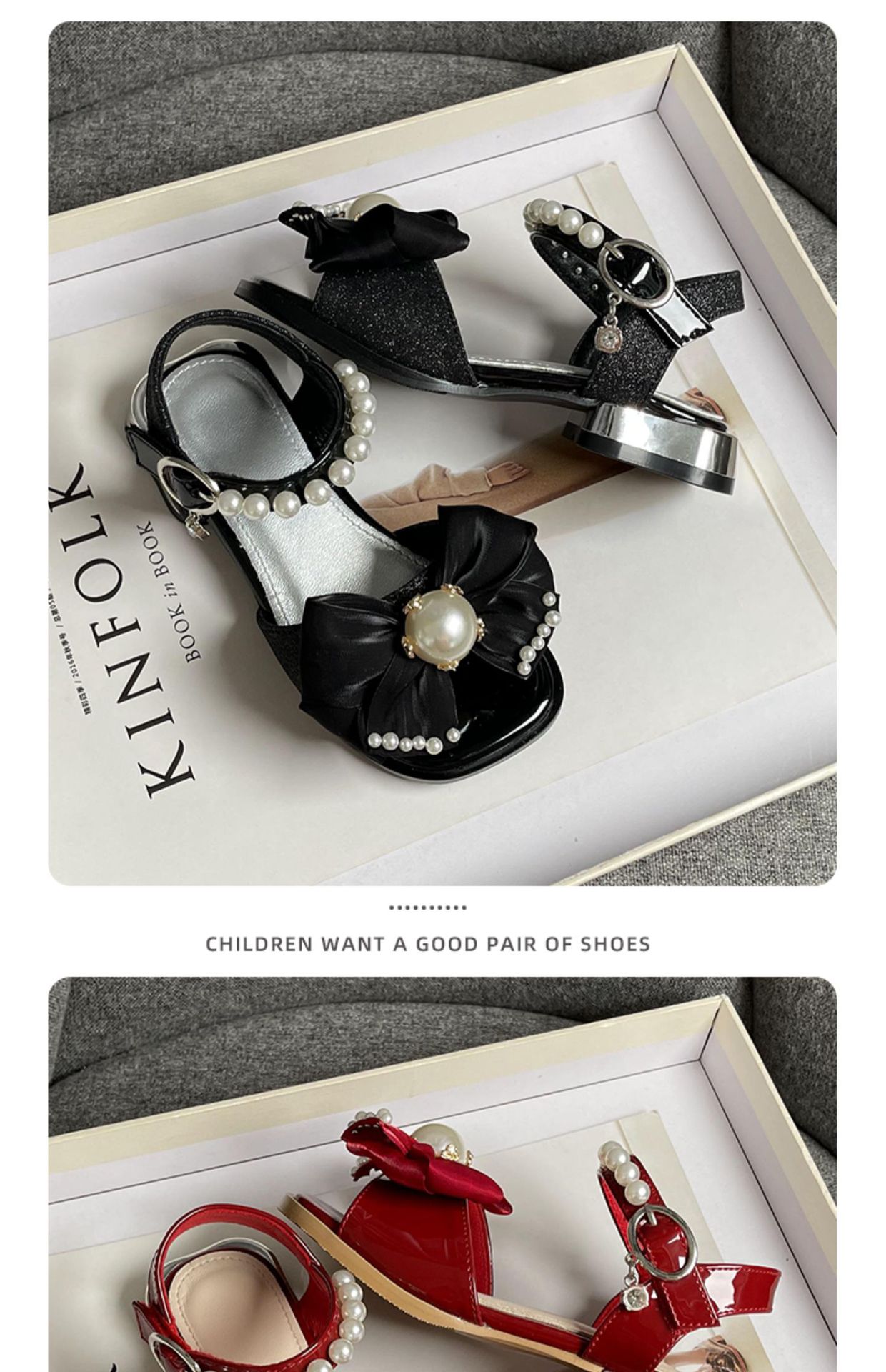 어린이 샌들 2025 중대형 어린이용 소녀용 부드러운 밑창 작은 굽 리본 장식 공주 신발 부드러운 밑창 편안함