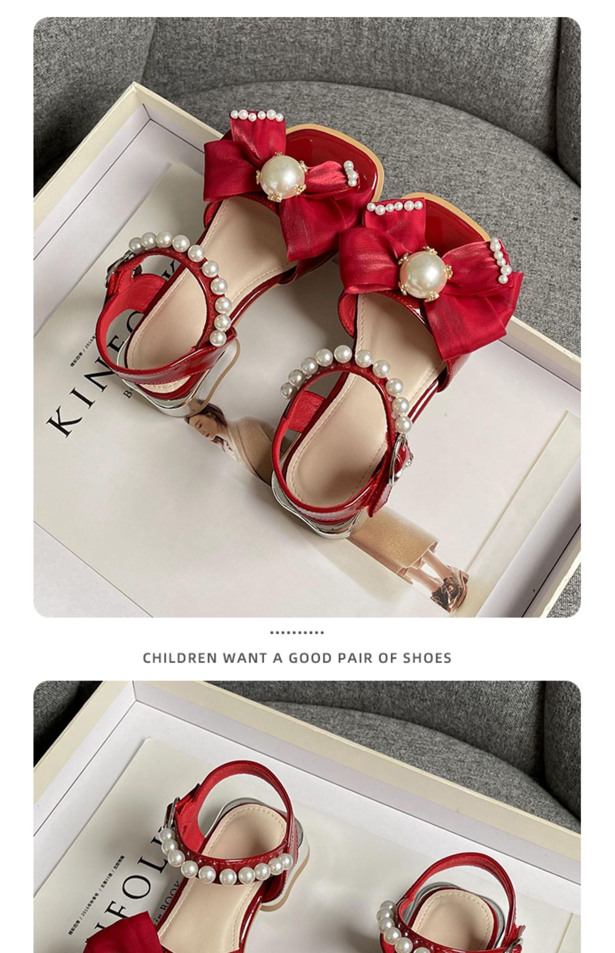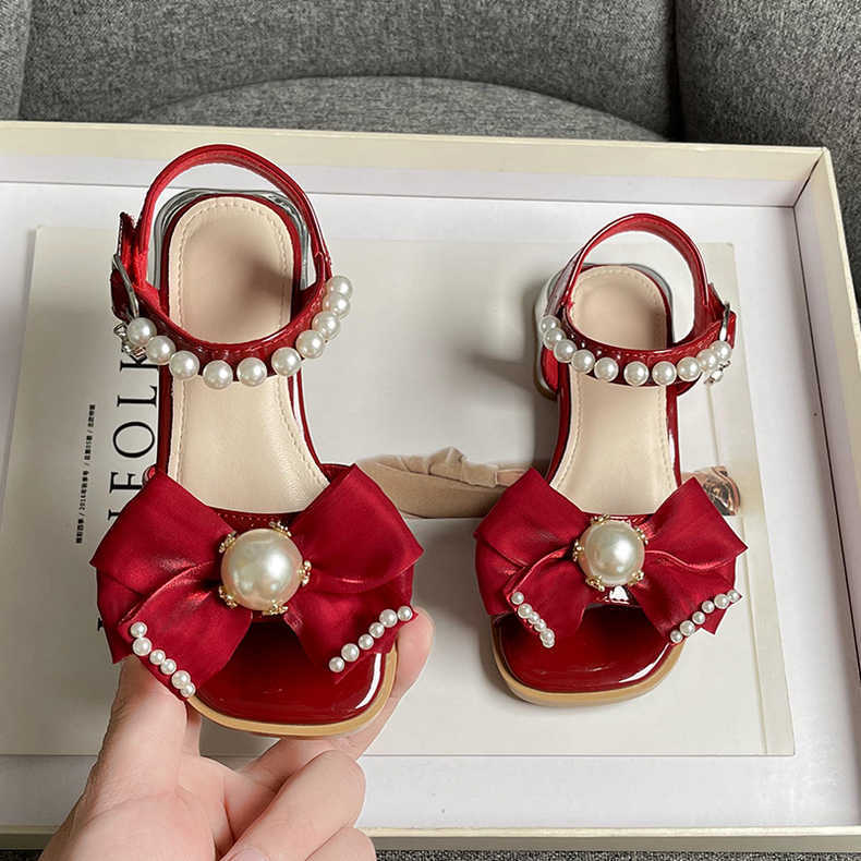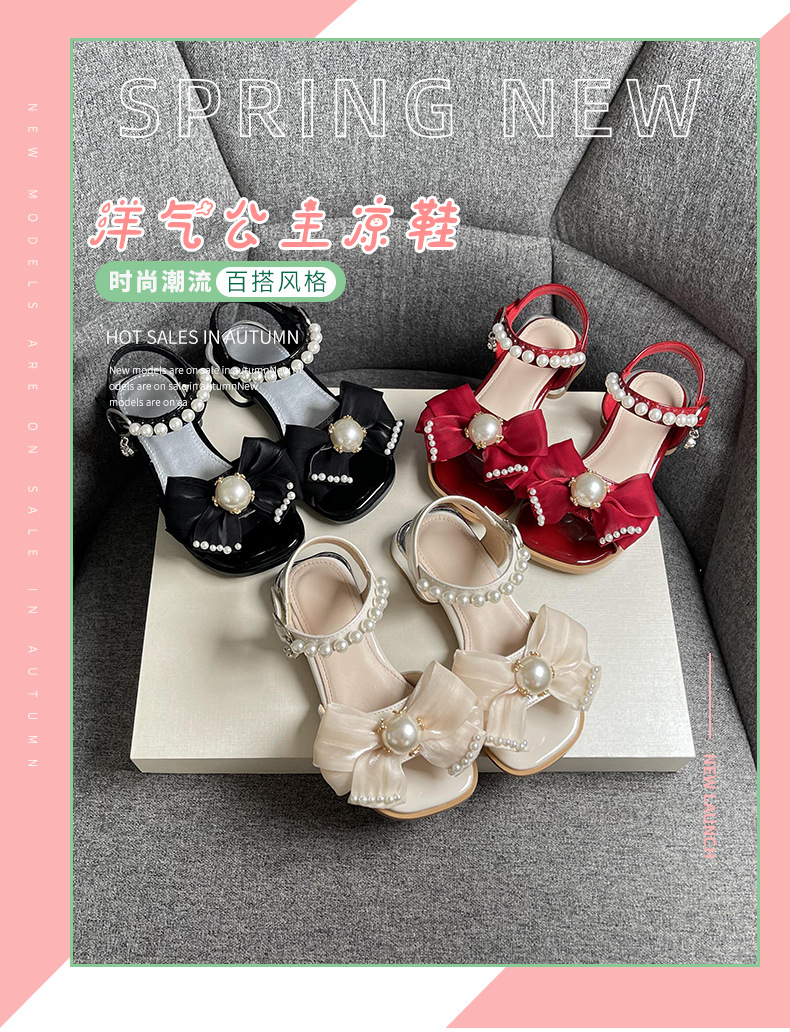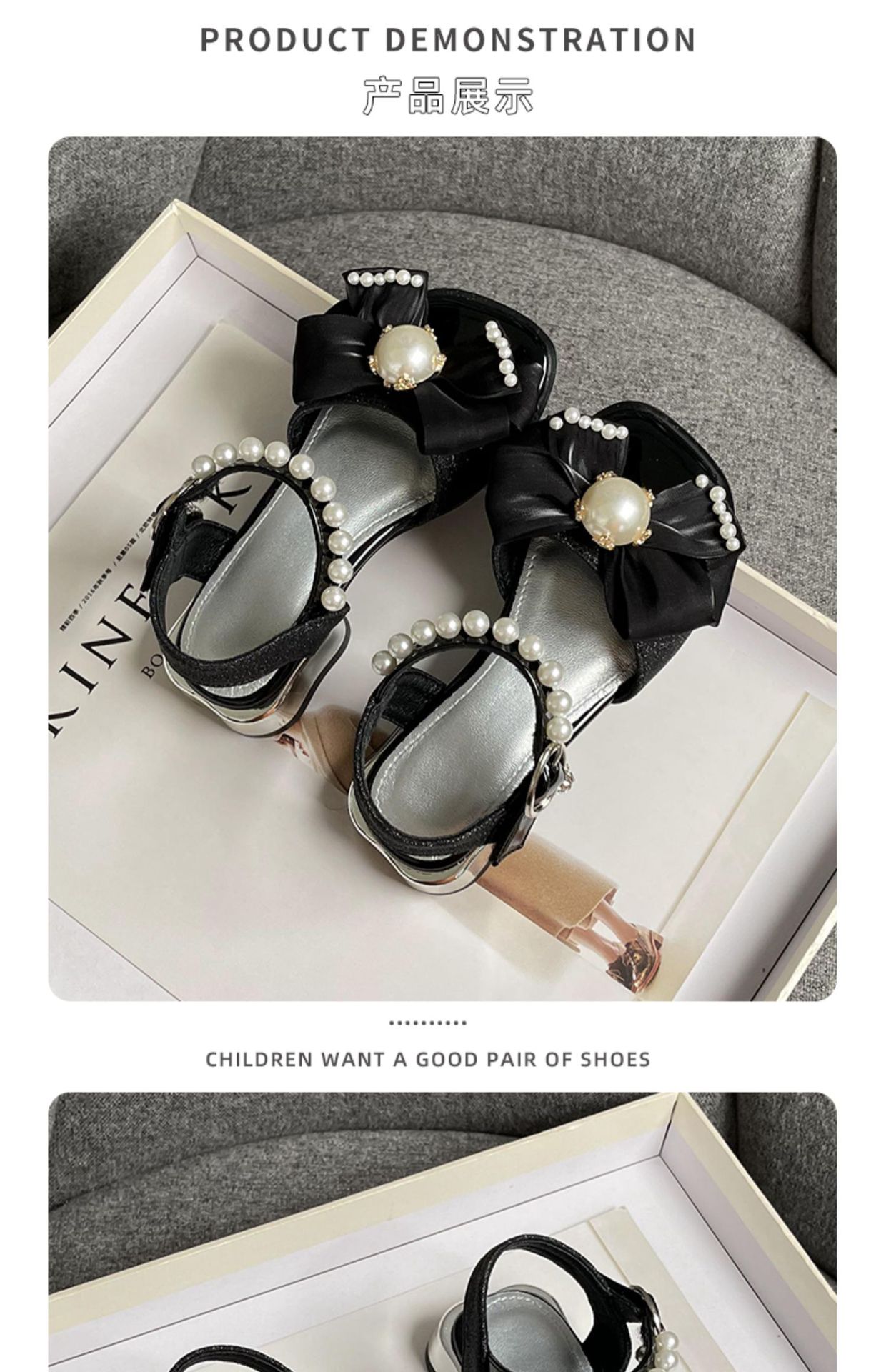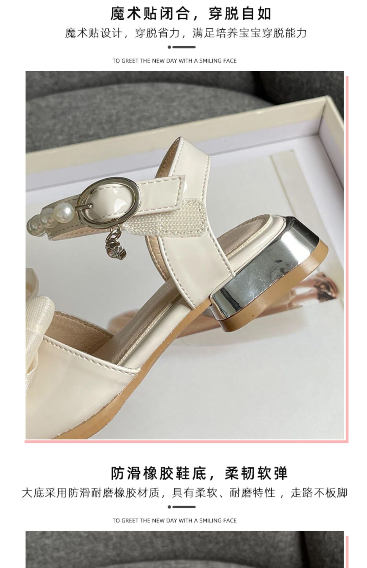 어린이 샌들 2025 중대형 어린이용 소녀용 부드러운 밑창 작은 굽 리본 장식 공주 신발 부드러운 밑창 편안함스토어 가기