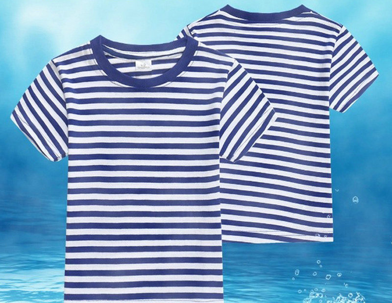 도매 아동 의류 바다 영혼 셔츠 여름 바다 줄무늬 반팔 티셔츠 그룹 활동 라운드 넥 네이비 스타일 아동 반팔스토어 가기