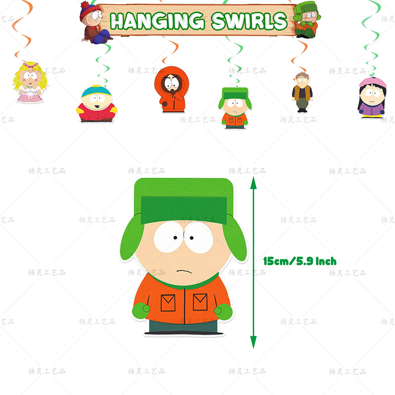 1 set Party Spirals Decor(6 Hanging Cards+6 Single Spirals: 3 Green and 3 Orange)
