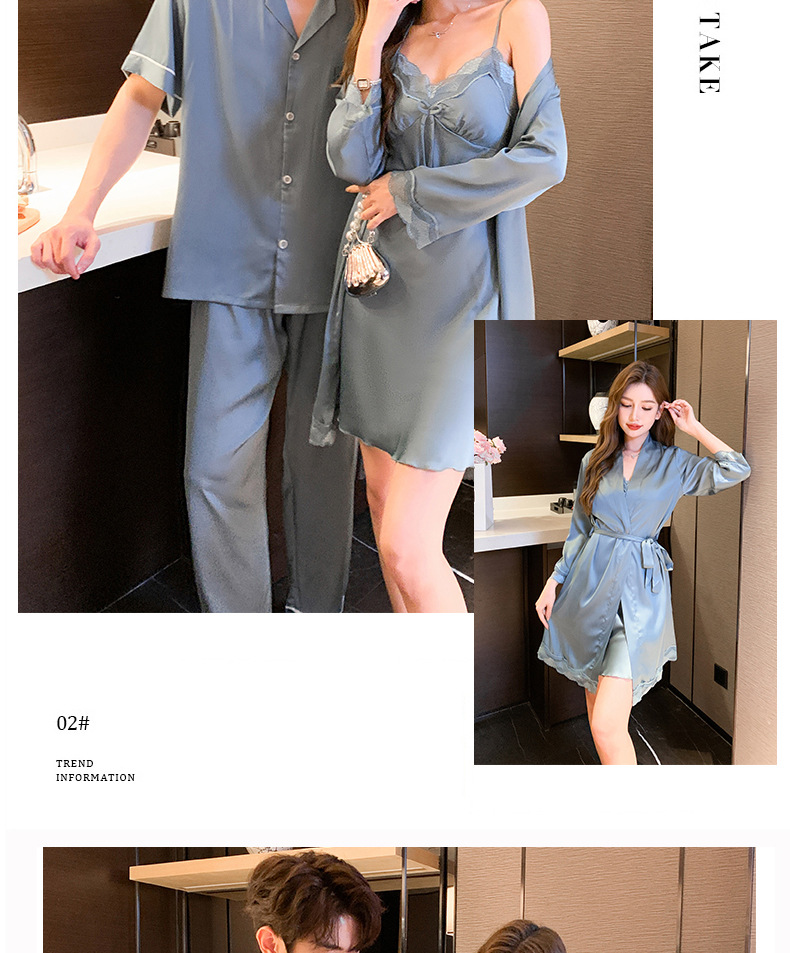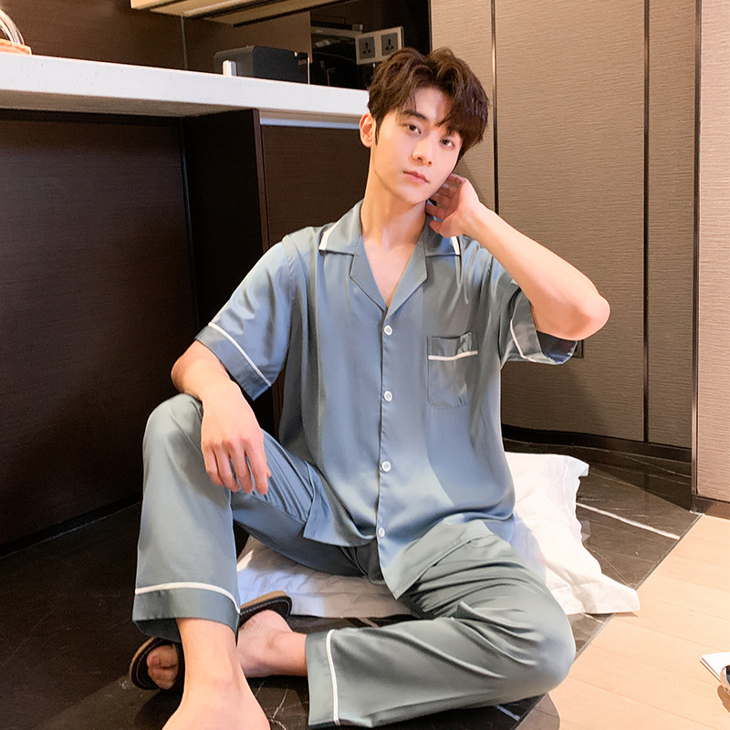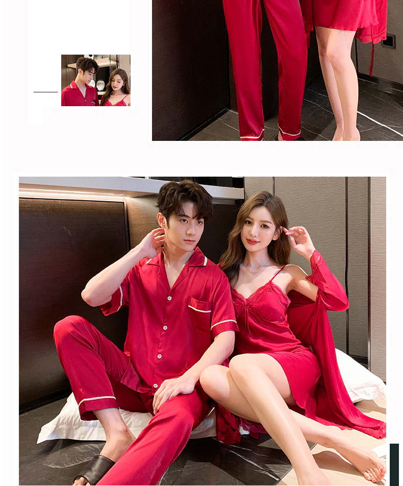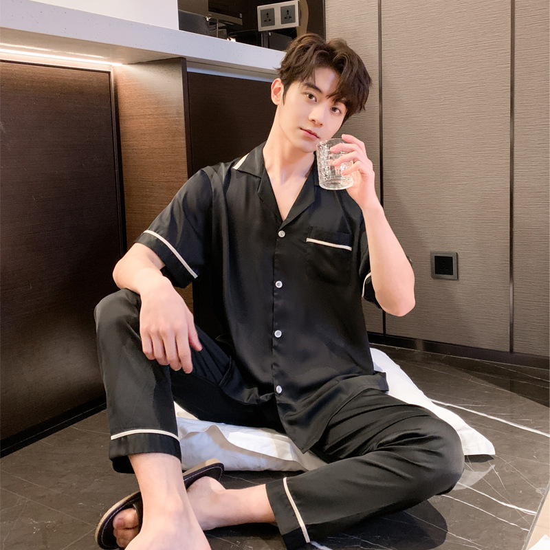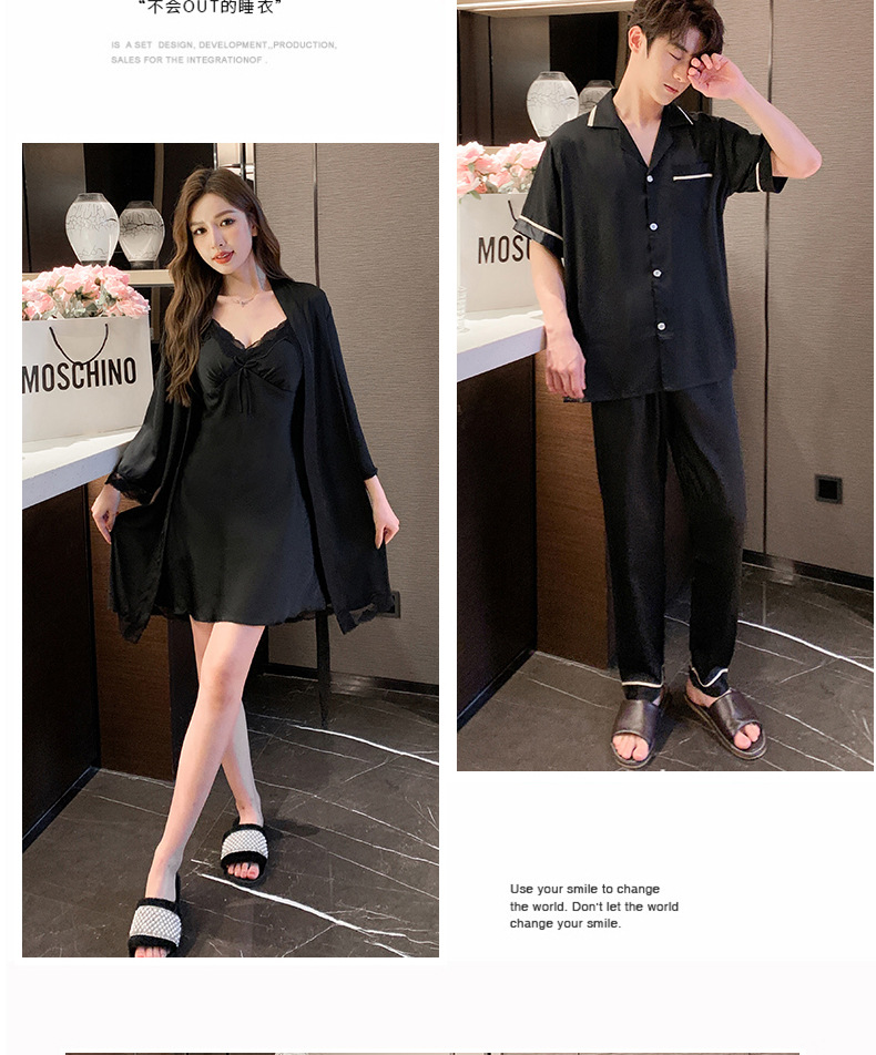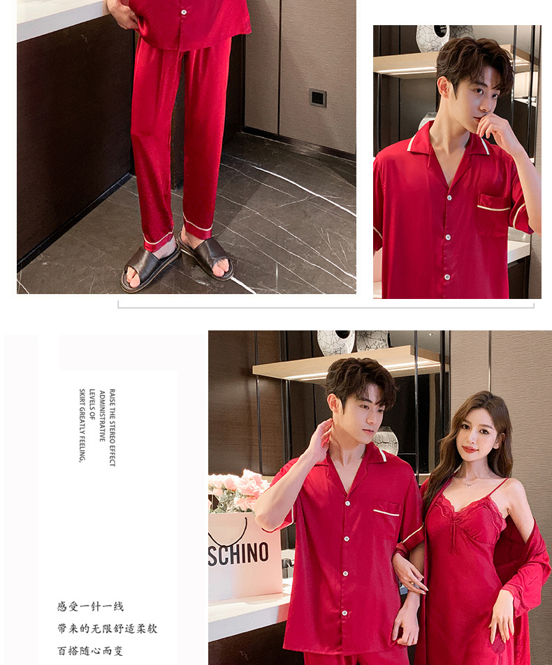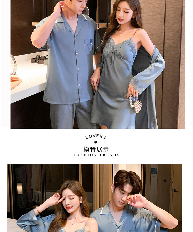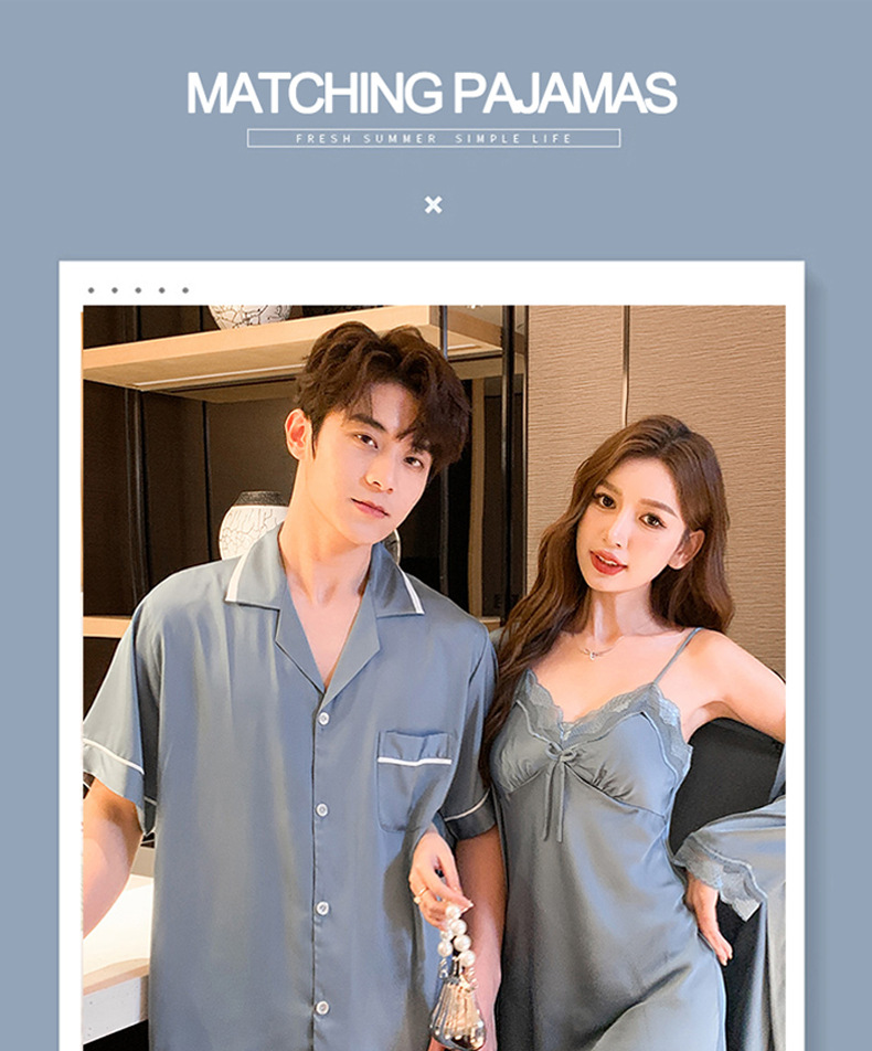 2023 봄과 여름 새로운 실크 커플 잠옷 세트 여자의 잠옷 남자의 세트 편안한 캐주얼 가정 의류스토어 가기