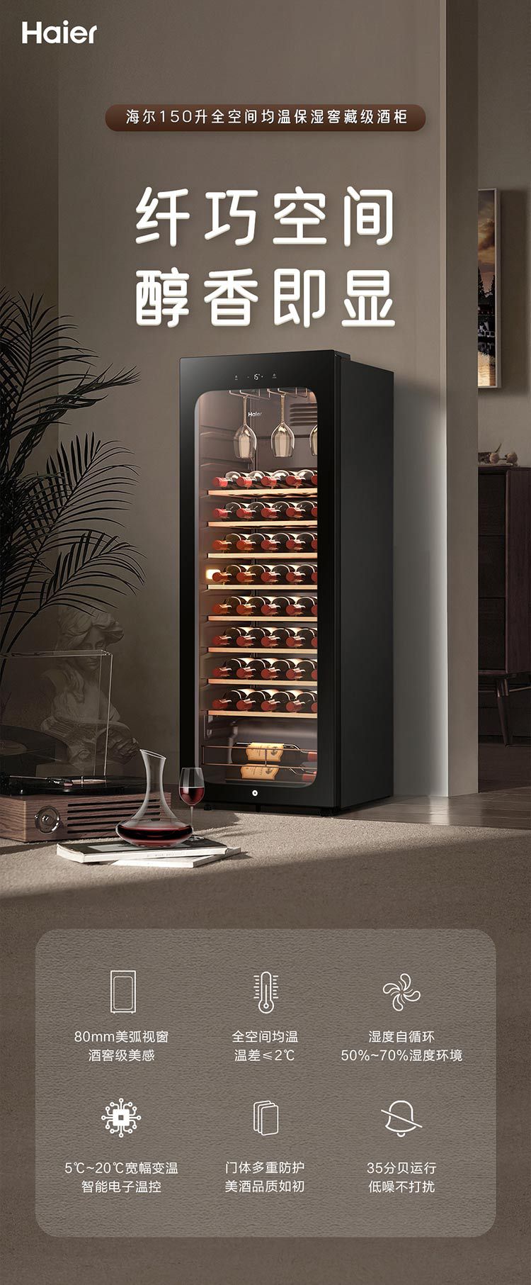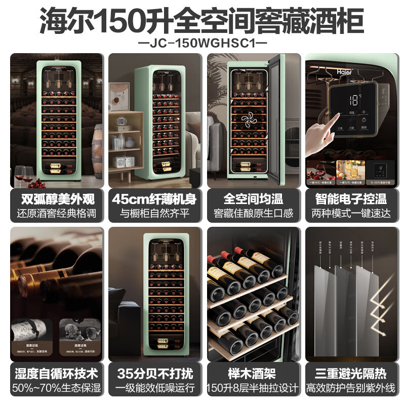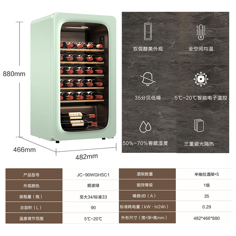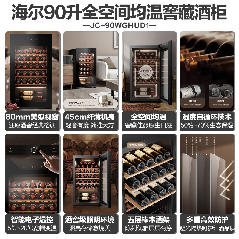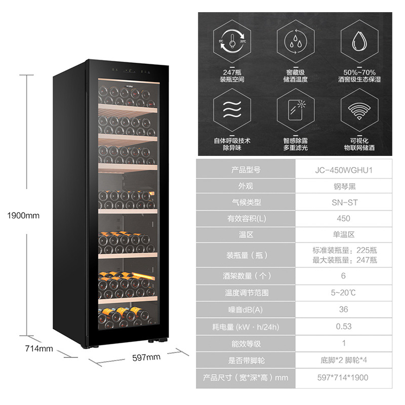 하이얼 와인 캐비닛, 항온 전자 정밀 온도 조절, 너도밤나무 와인랙, 정품, 전국 보증, 스마트