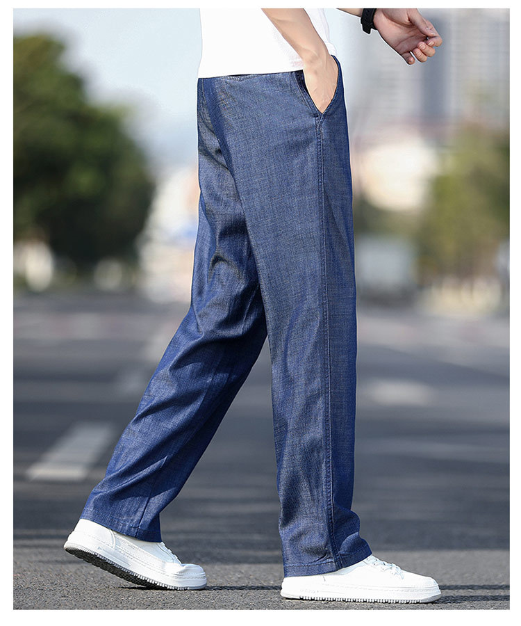 남자의 봄과 가을 부드러운 청바지 부드러운 통기성 느슨한 편안한 남자의 데님 바지 캐주얼 바지 남성스토어 가기