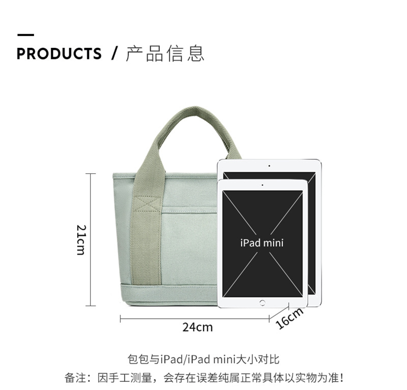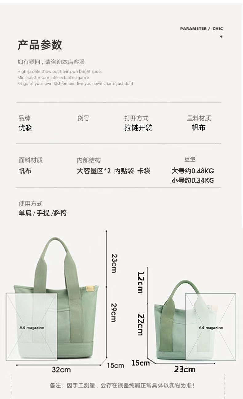 고가의 새로운 일본 캔버스 가방 유행 심플 대용량 핸드백 매일 출퇴근 여성용 다용도 도시락 가방