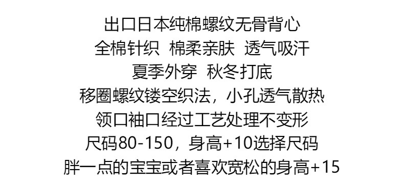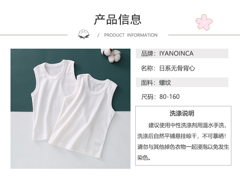 일본 여름 얇은 뼈없는 어린이 조끼 면 클래스 아기 장애물 소년 조끼 머리카락 세대스토어 가기