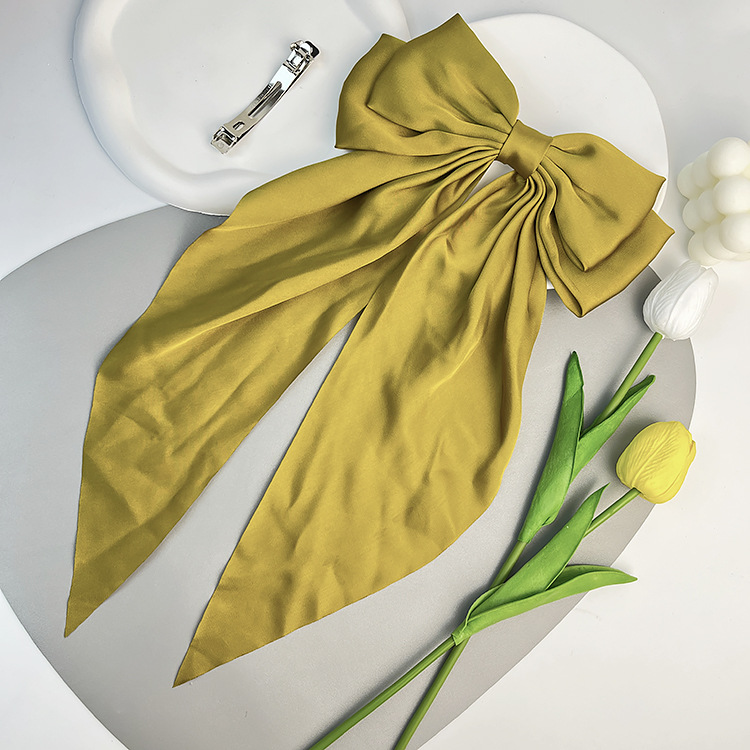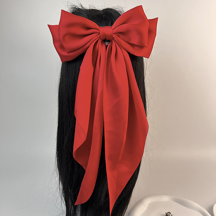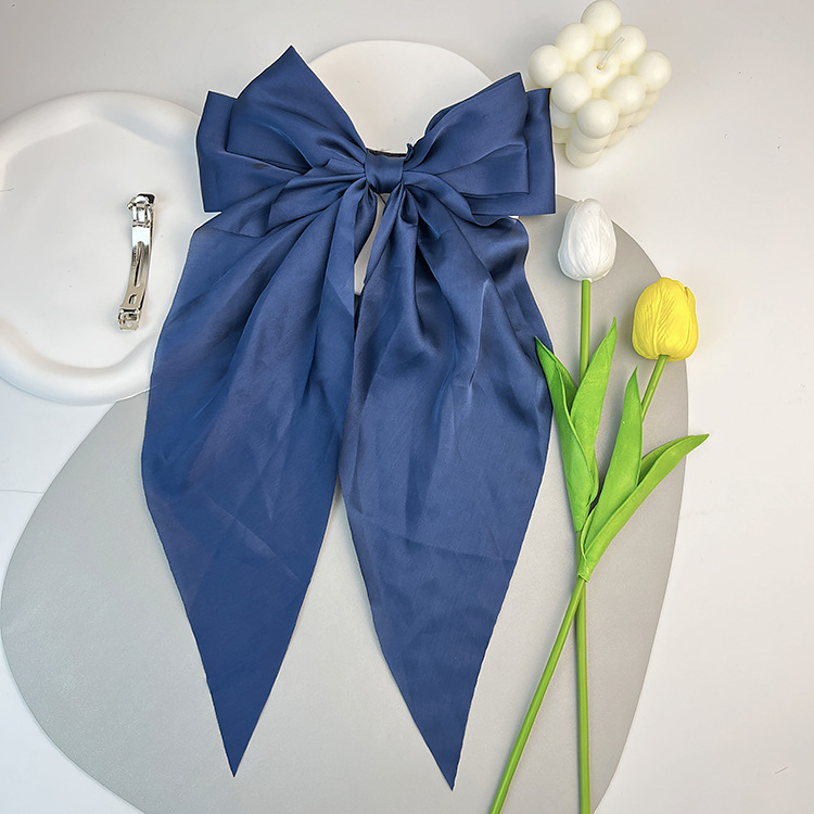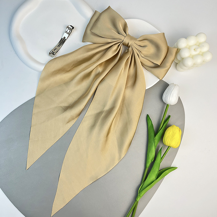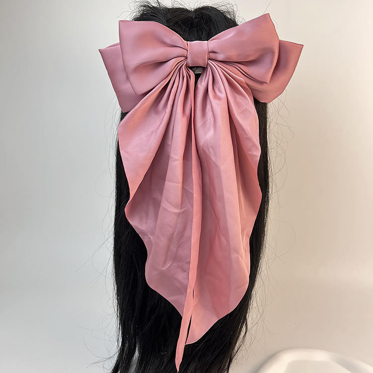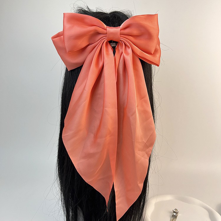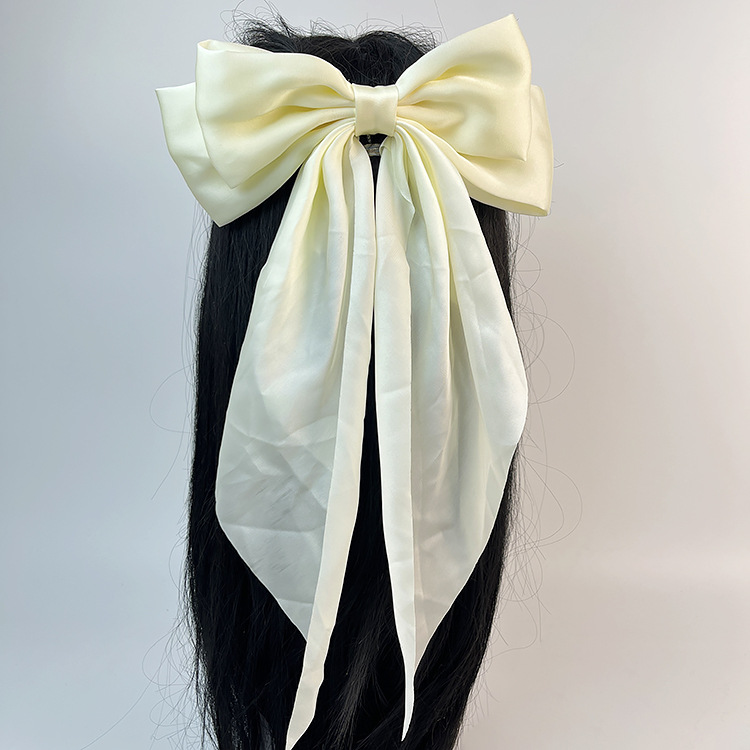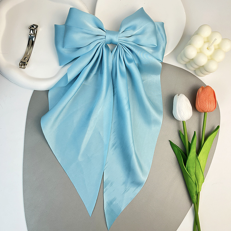 단색 롱 빅 보우 롱 플로팅 백 헤드 헤어 클립 인터넷 연예인 같은 스타일 우아한 새틴 스프링 클립 탑 클립 헤어 액세서리