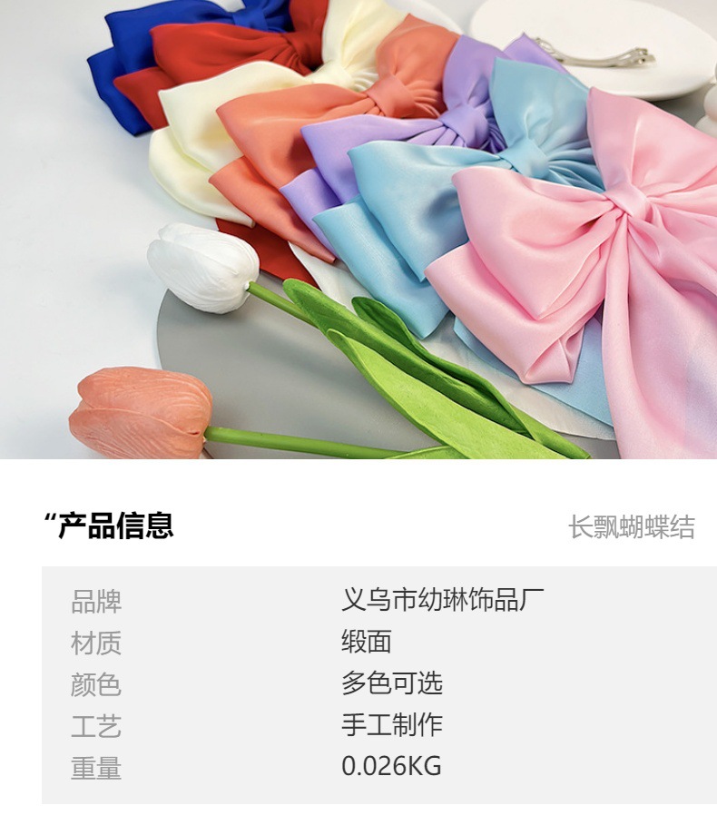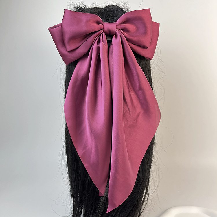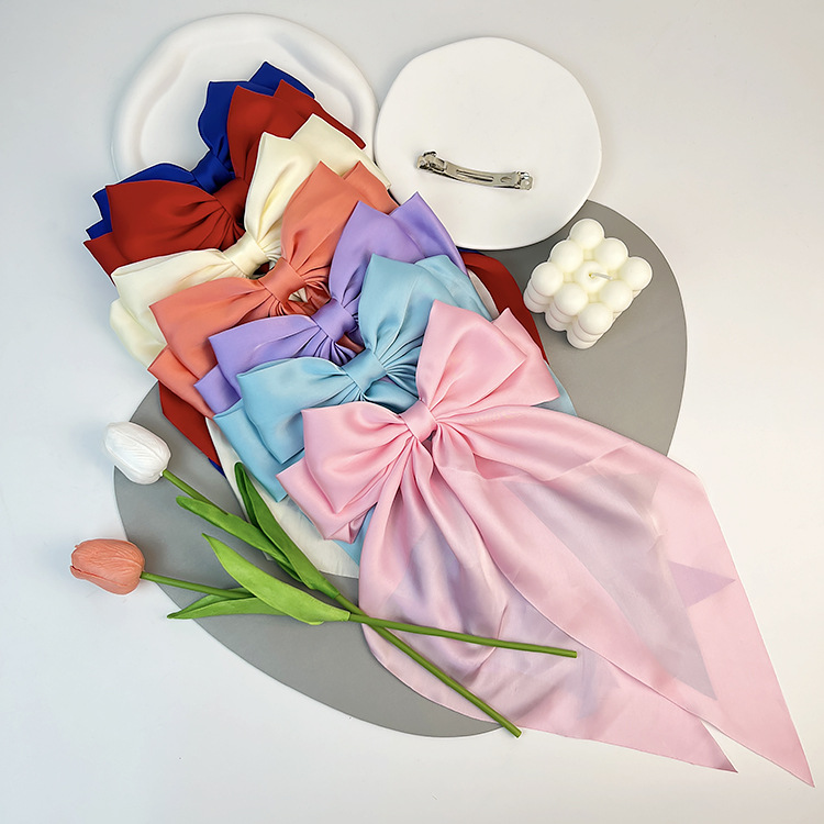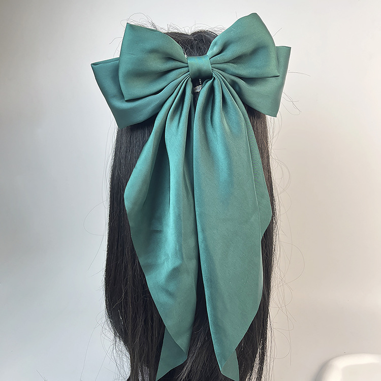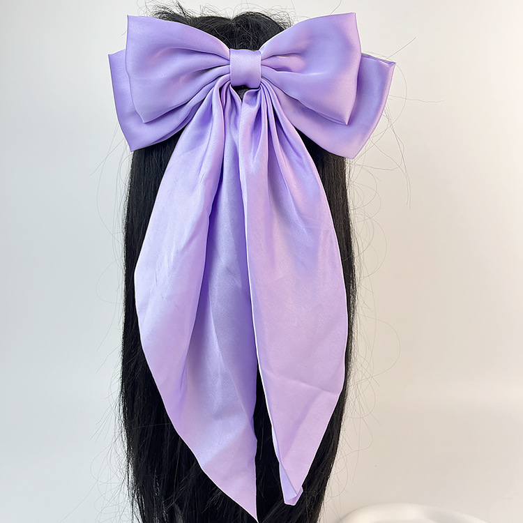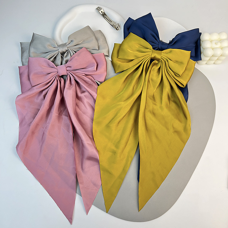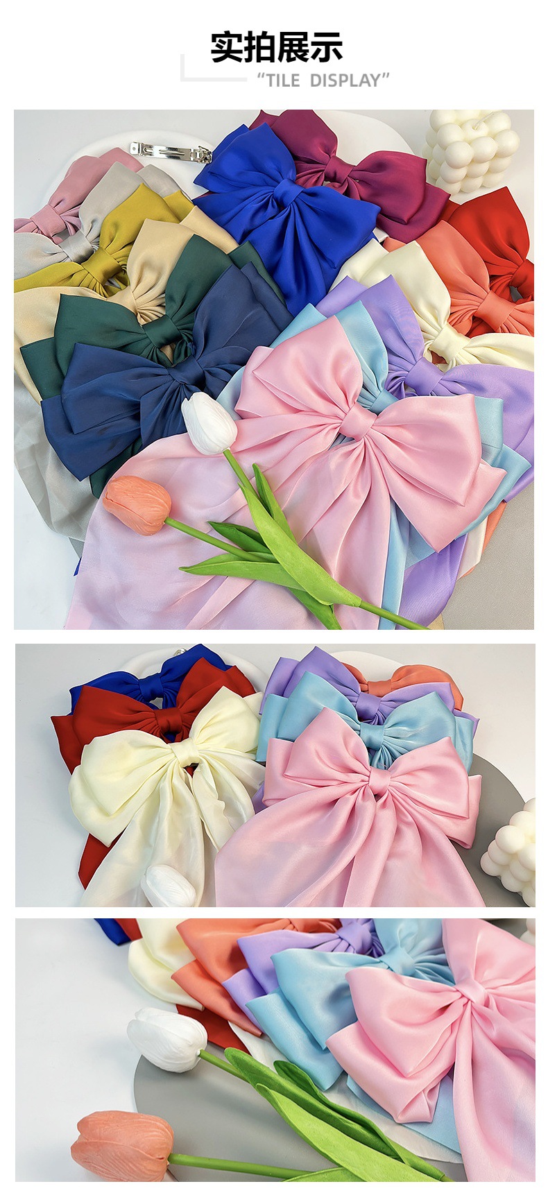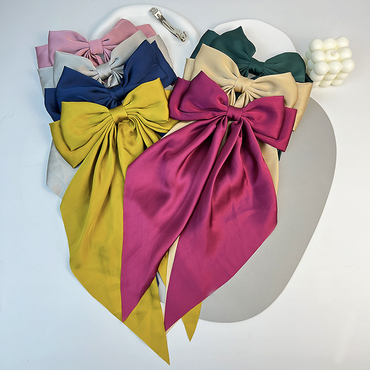 단색 롱 빅 보우 롱 플로팅 백 헤드 헤어 클립 인터넷 연예인 같은 스타일 우아한 새틴 스프링 클립 탑 클립 헤어 액세서리스토어 가기