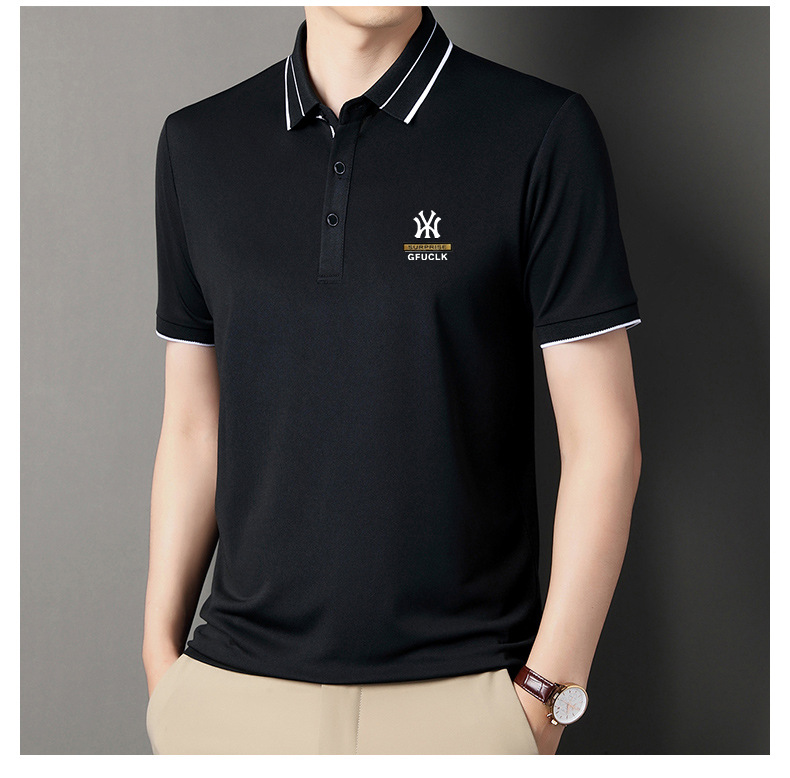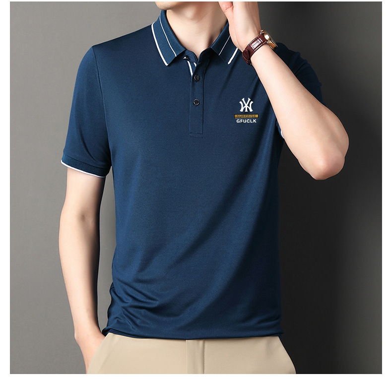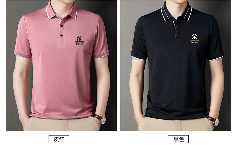 2023夏季新款印花Polo衫男士翻领中青年冰丝速干宽松半袖短袖t恤