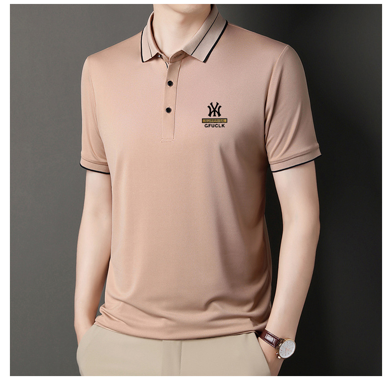 2023 여름 새로운 스타일 프린트 폴로 셔츠 남성용 라펠 영 중년 아이스 실크 속건 루즈한 반팔 반팔 티셔츠