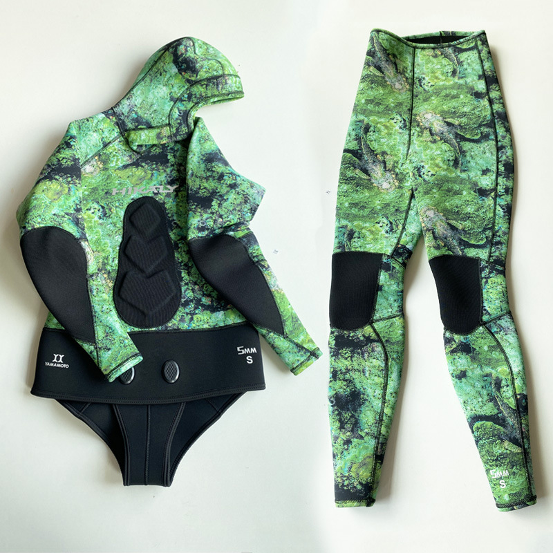 야마모토 고무 바디 5mm 다이빙 세트 남성용 세미 드라이 딥 다이빙 위장 물고기 사냥 세트 스플릿 다이빙 세트
