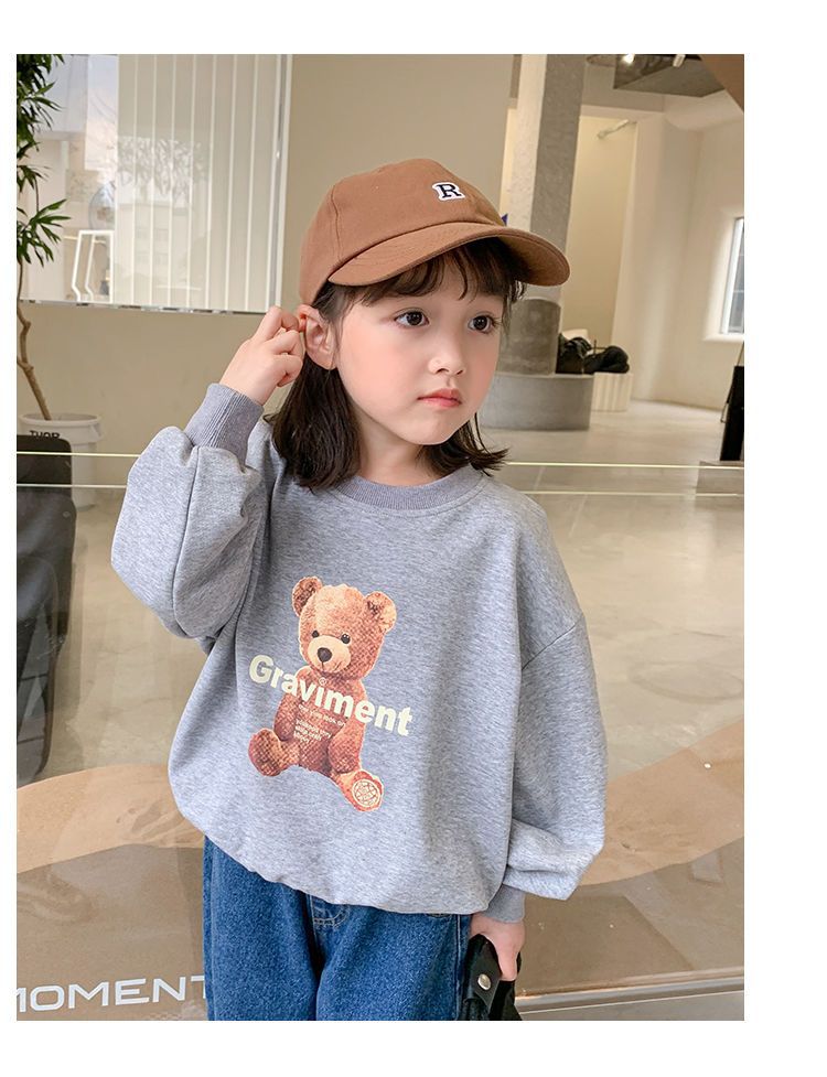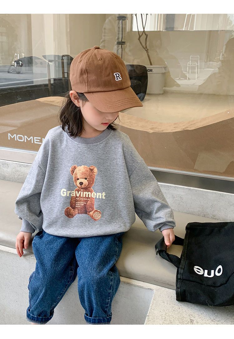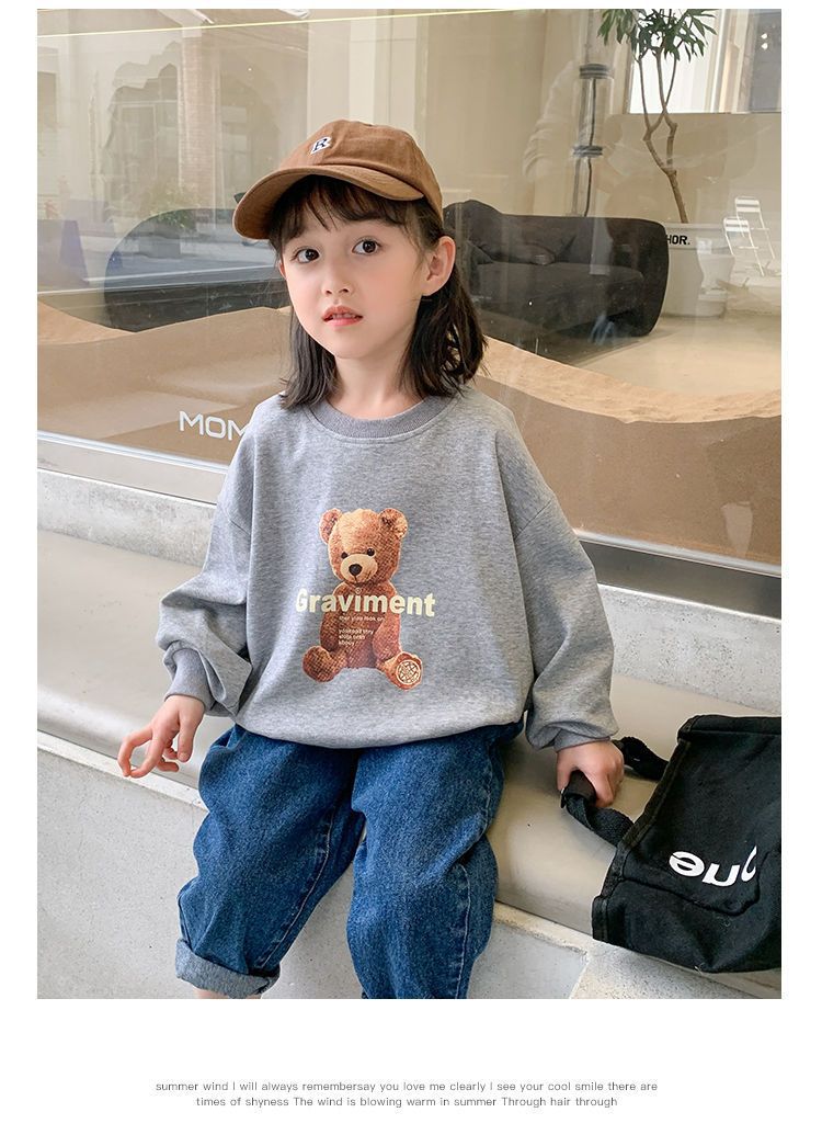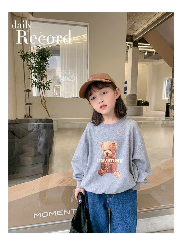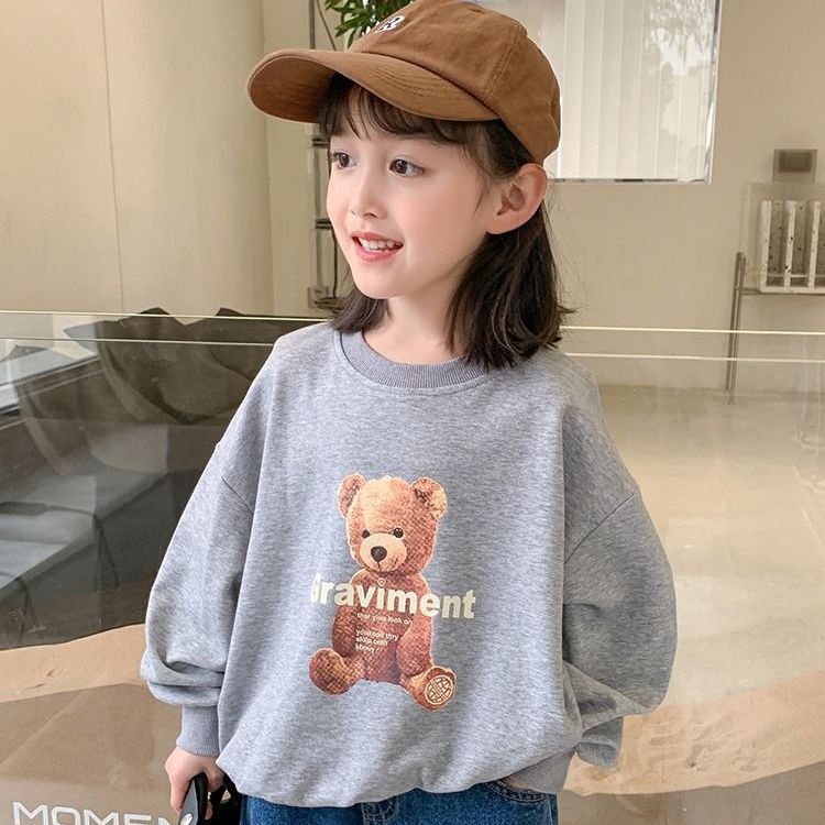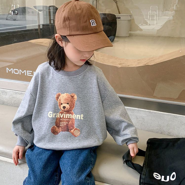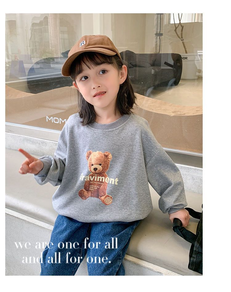남성과 여성의 중소 어린이 귀여운 곰면 한국식 편안한 스웨터 봄과 가을 새로운 만화 최고 모든 경기 트렌드스토어 가기
