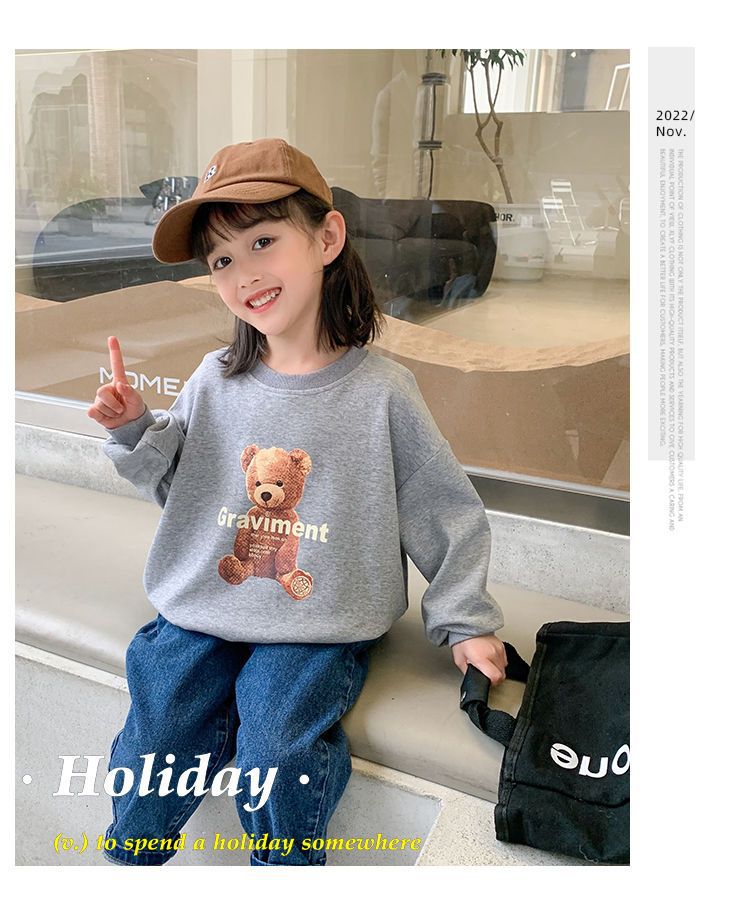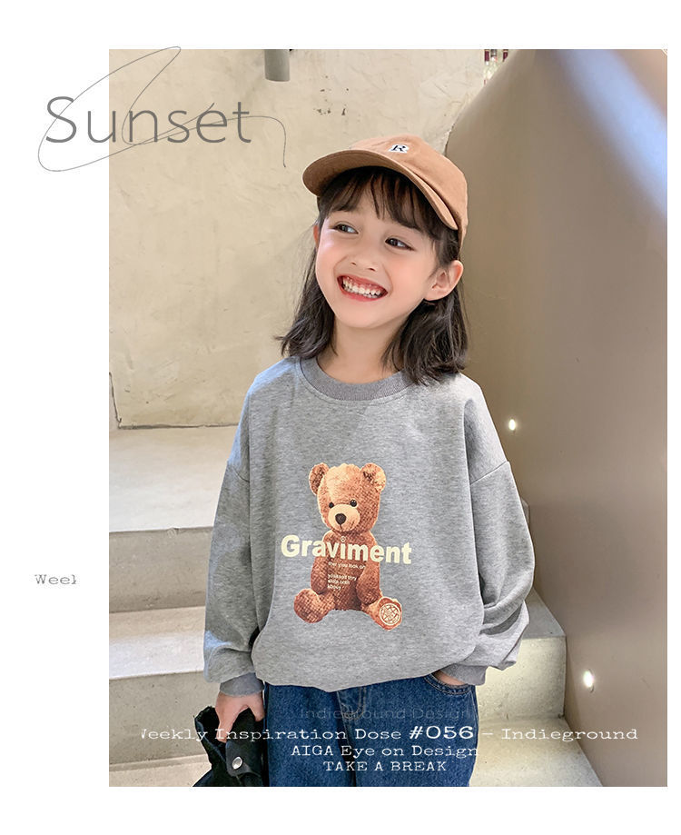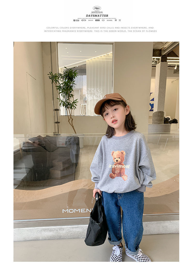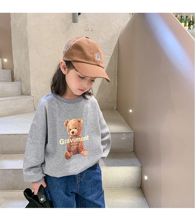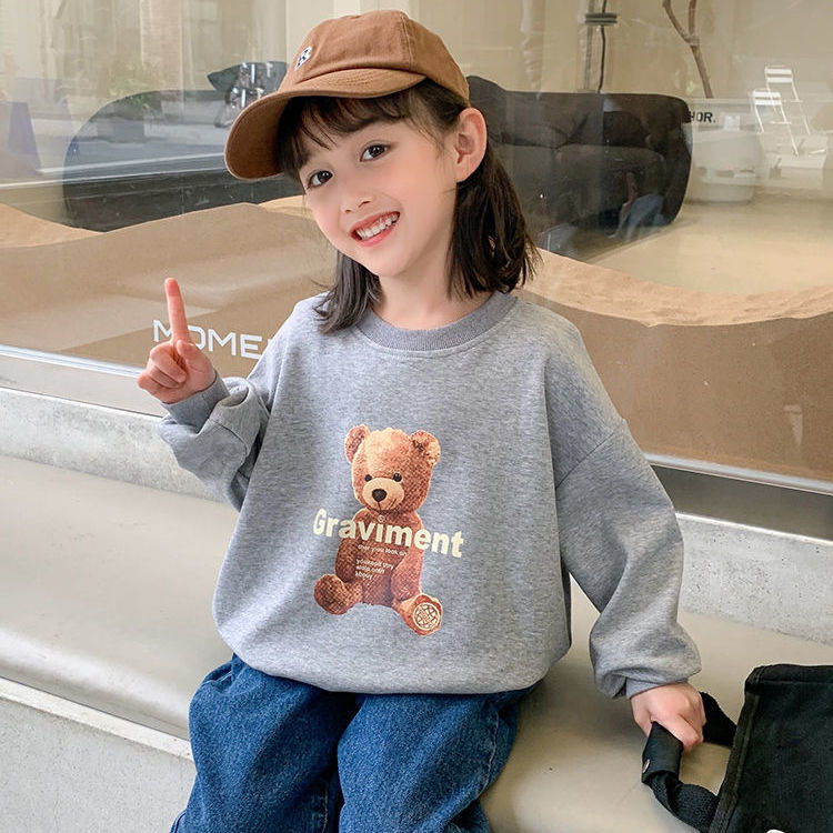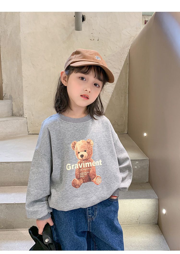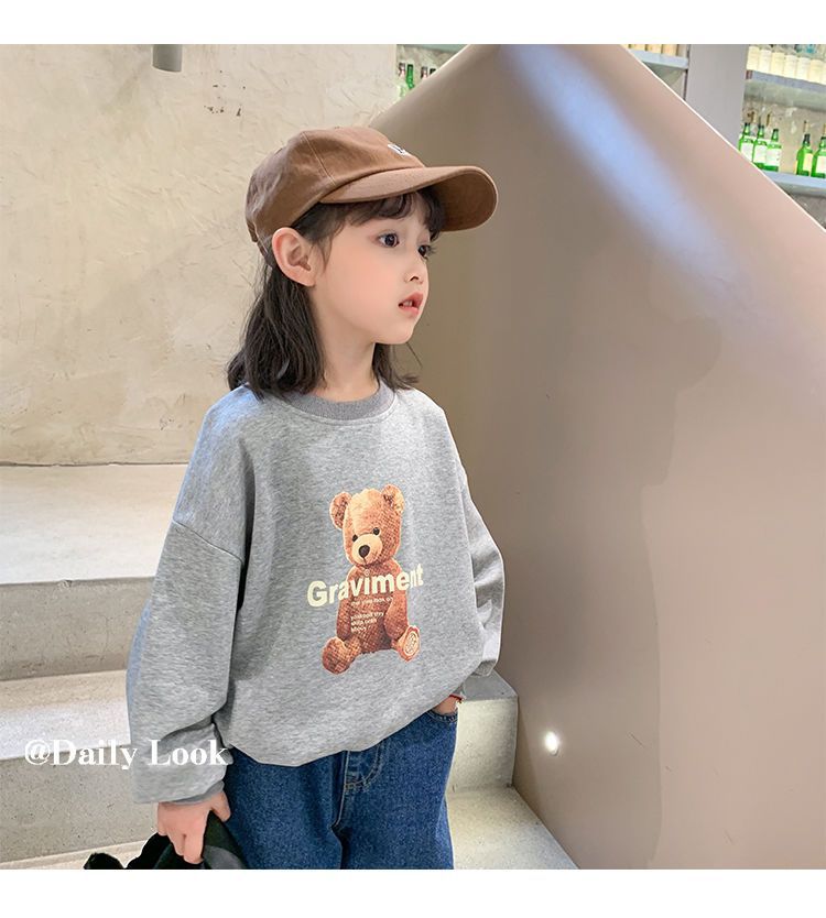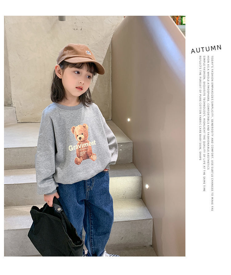 남성과 여성의 중소 어린이 귀여운 곰면 한국식 편안한 스웨터 봄과 가을 새로운 만화 최고 모든 경기 트렌드스토어 가기