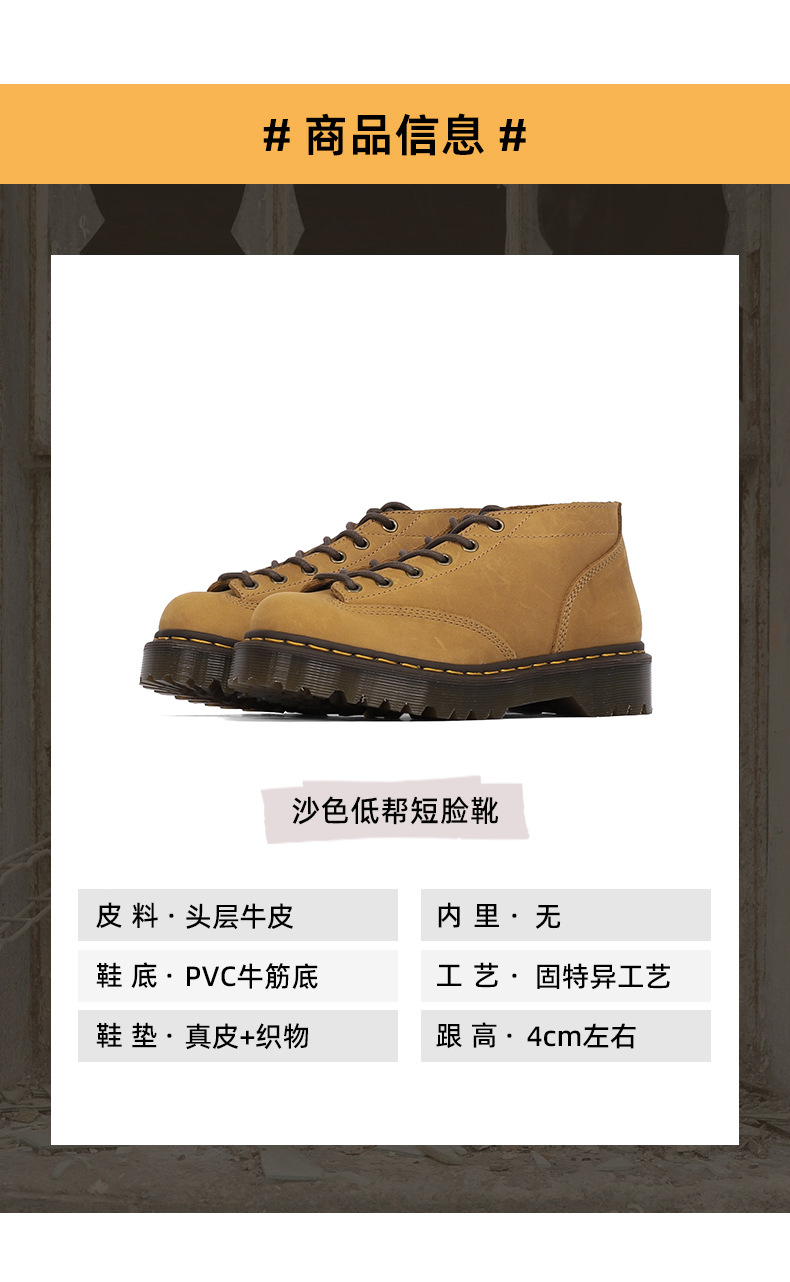 Goodyear Craft 두꺼운 밑창 빈티지 마틴 신발 여성용 로우탑 숏페이스 부츠 아미 카지 빈티지 툴링 슈즈스토어 가기