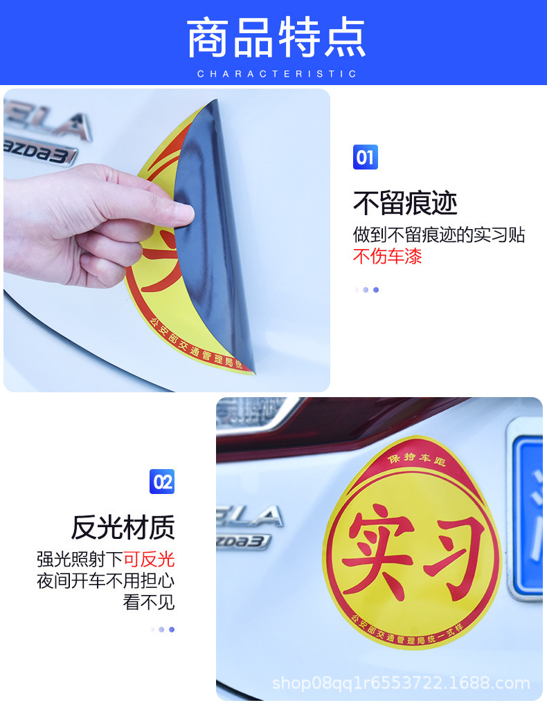 공장 도매 자동차 자기 매력 인턴쉽 자동차 스티커 반사 스티커 차체 스티커 도로에 초보자 통일 로고 인턴쉽 로고스토어 가기
