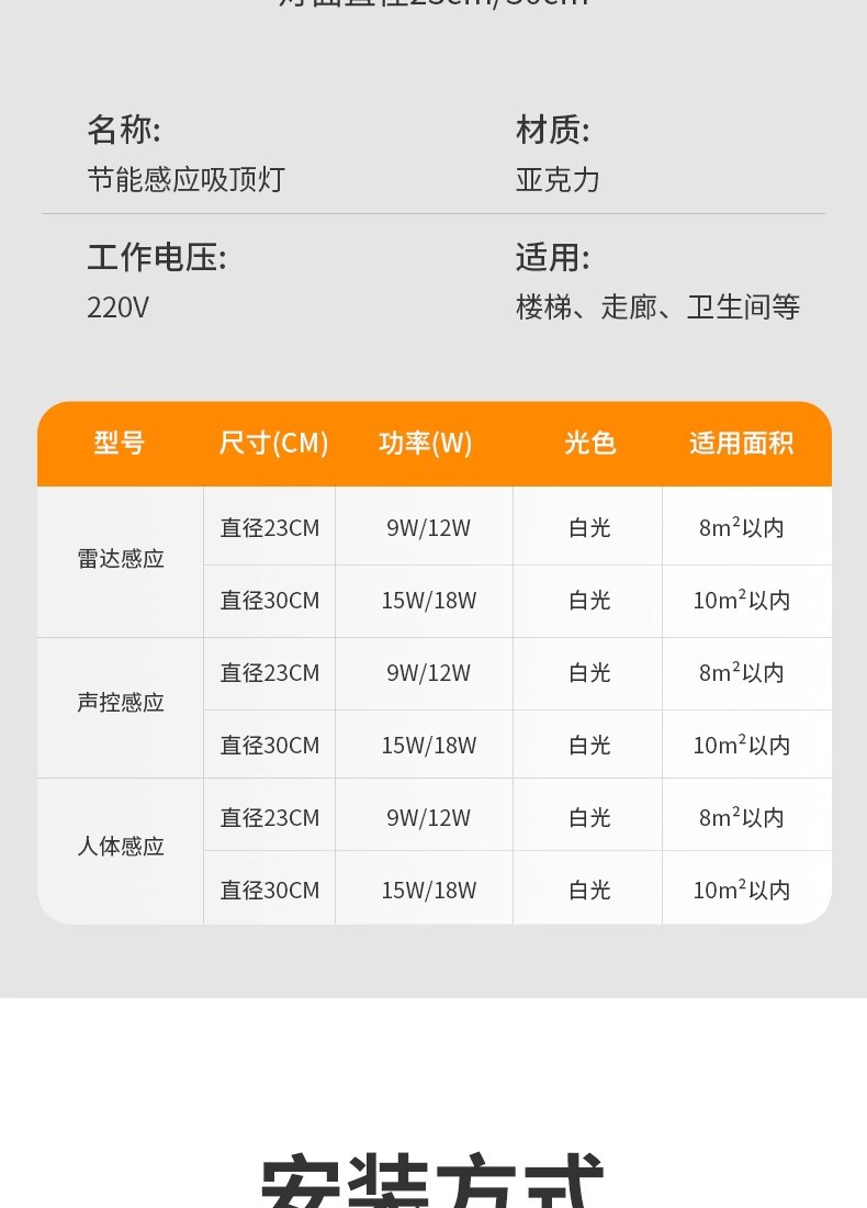 • 【절전형】 레이더 자동 감지 - 최대 밝기 - 대형 23cm - 12W