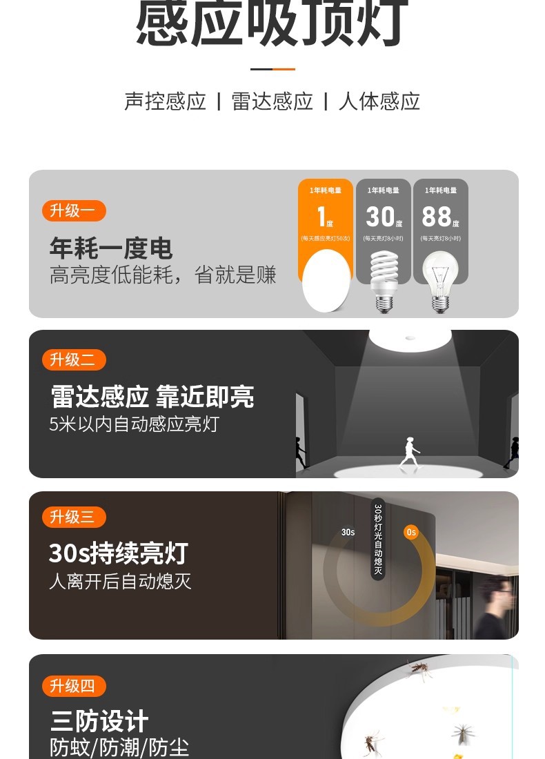 • 【절전형】 레이더 자동 감지 - 최대 밝기 - 대형 30cm - 24W