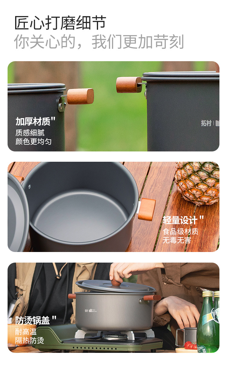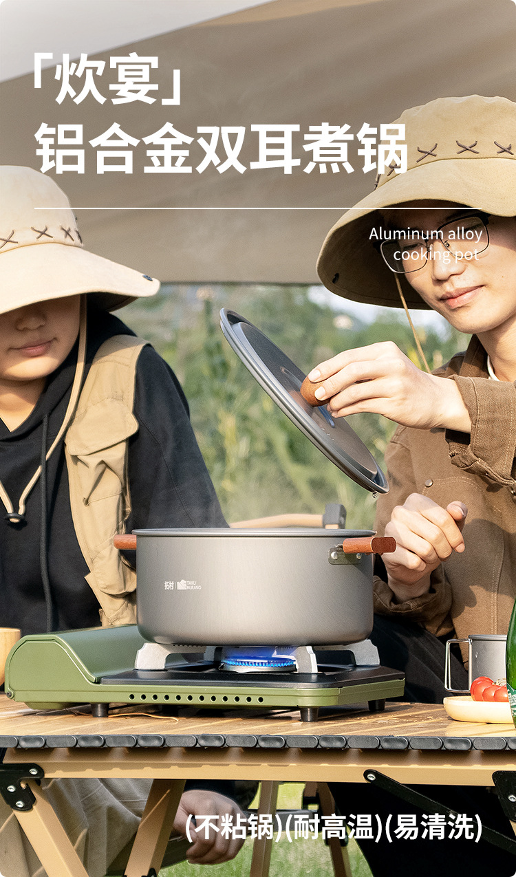 Tuocun 야외 휴대용 바이노럴 스튜 냄비 냄비 굽기 가정용 대용량 피크닉 여행 식기 장비 용품