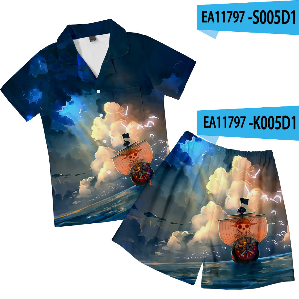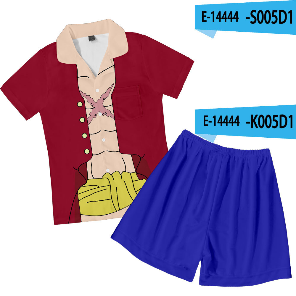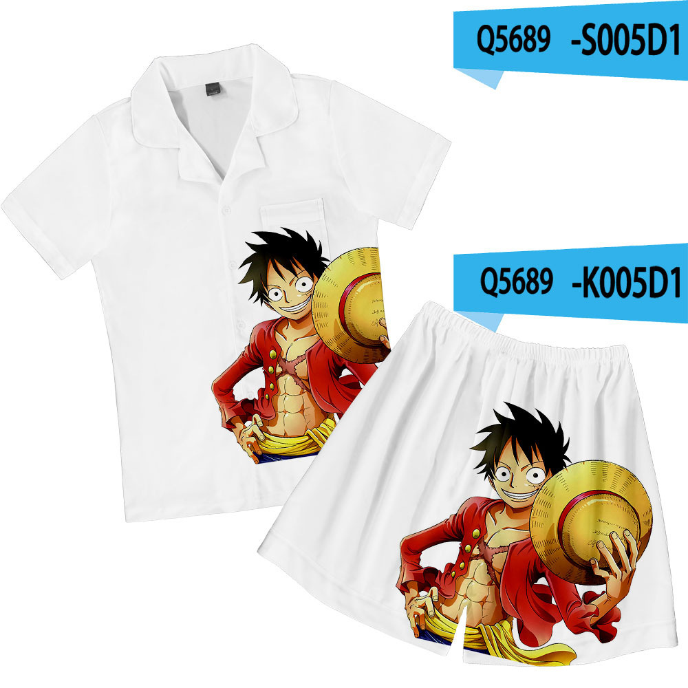 크로스 보더 새로운 애니메이션 원피스 3D 캐주얼 반바지 반팔 잠옷 세트스토어 가기