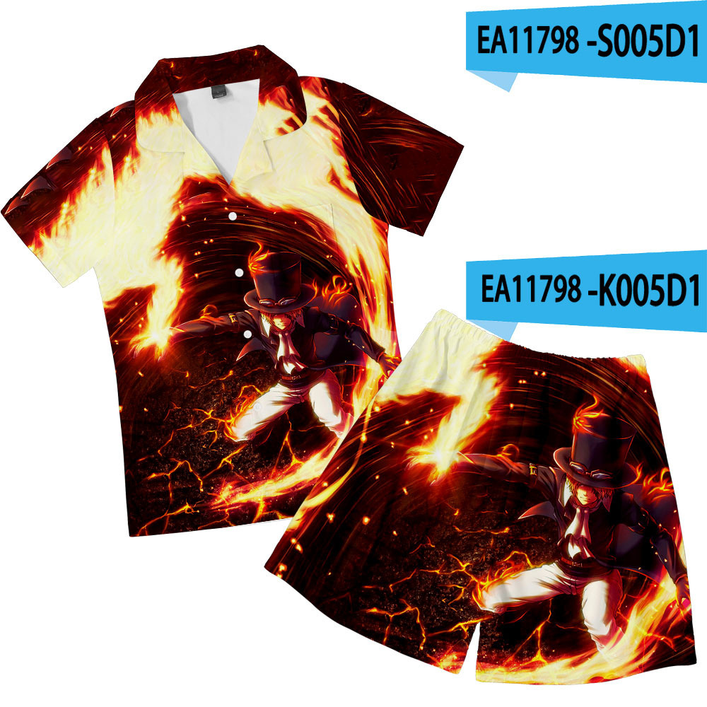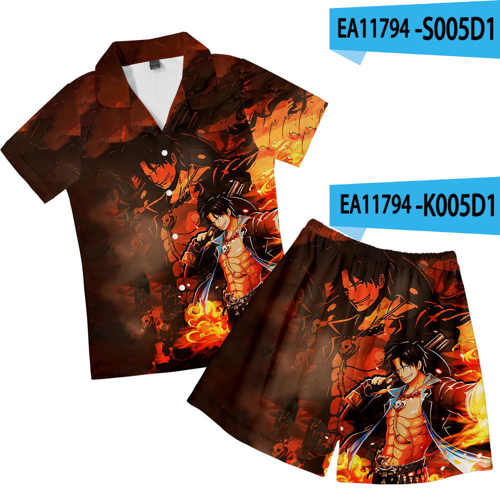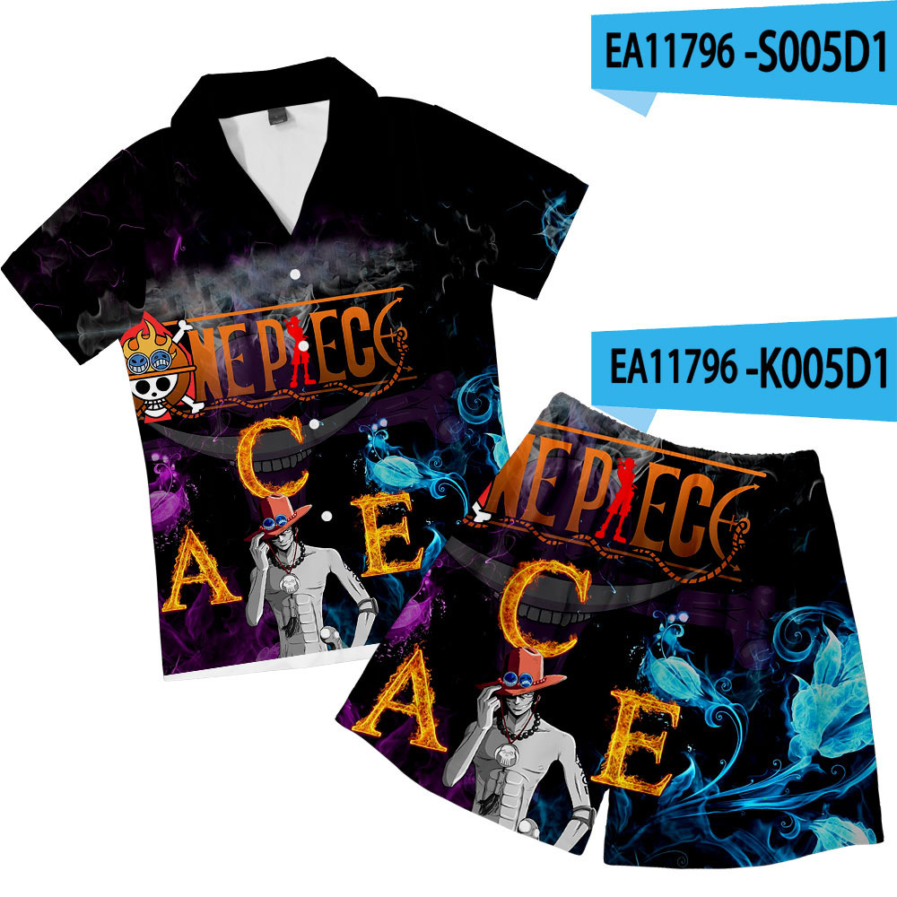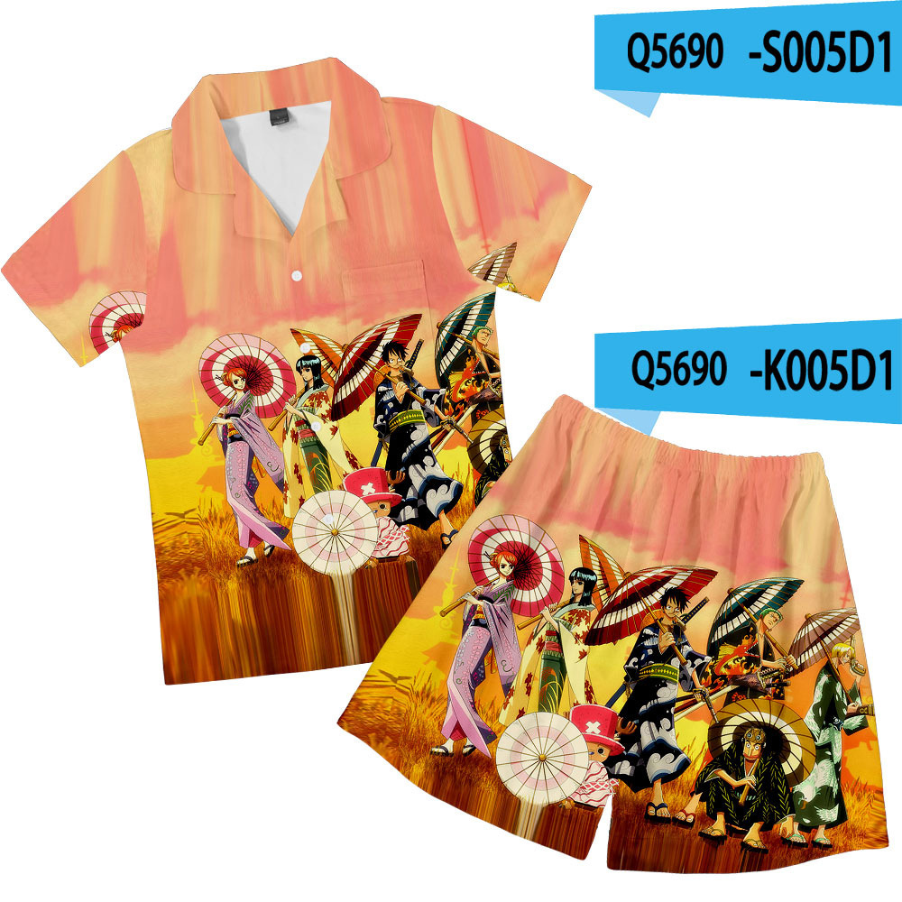 크로스 보더 새로운 애니메이션 원피스 3D 캐주얼 반바지 반팔 잠옷 세트스토어 가기