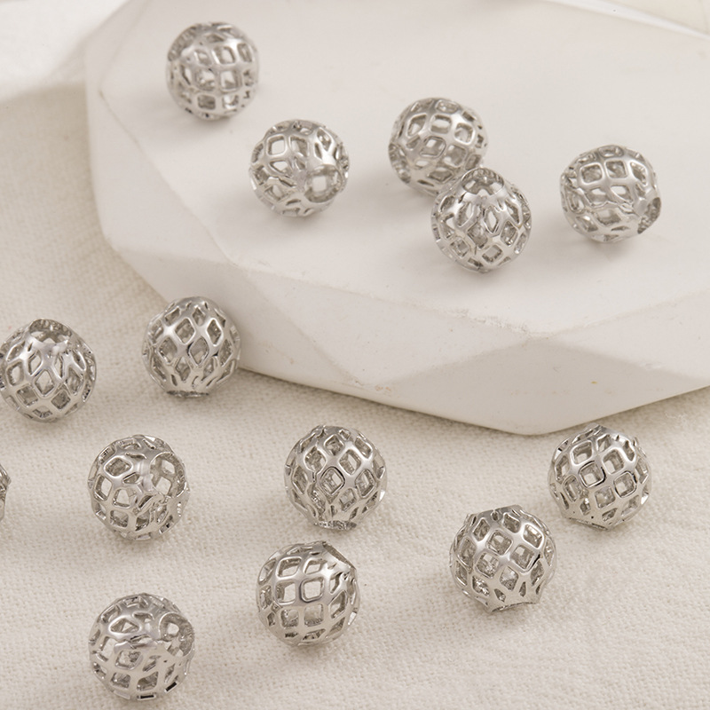 구멍을 통해 18K 골드 컬러 유지 중공 공 구리 도금 리얼 골드 라운드 메쉬 구형 느슨한 구슬 DIY 보석 액세서리