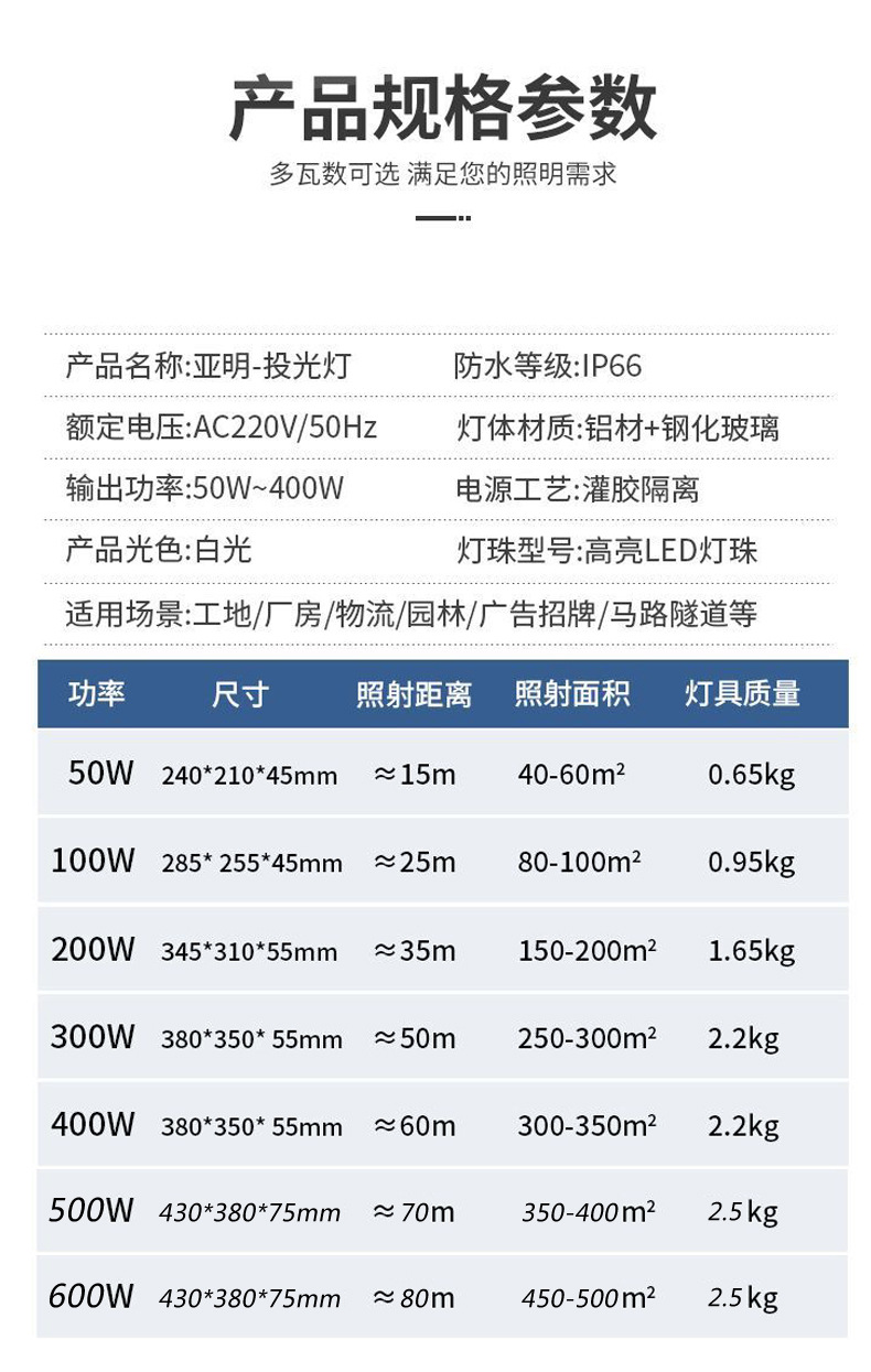 상하이 야밍 LED 투광 조명 야외 방수 투광 조명 슈퍼 브라이트 엔지니어링 공장 스포트라이트 광고판 조명