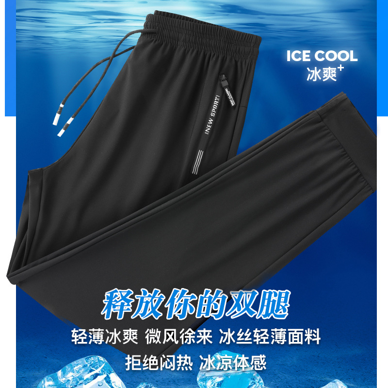 아이스 실크 바지 남자 여름 경량 높은 탄성 빠른 건조 통기성 달리기 스포츠 플러스 사이즈 캐주얼 연인 긴 바지