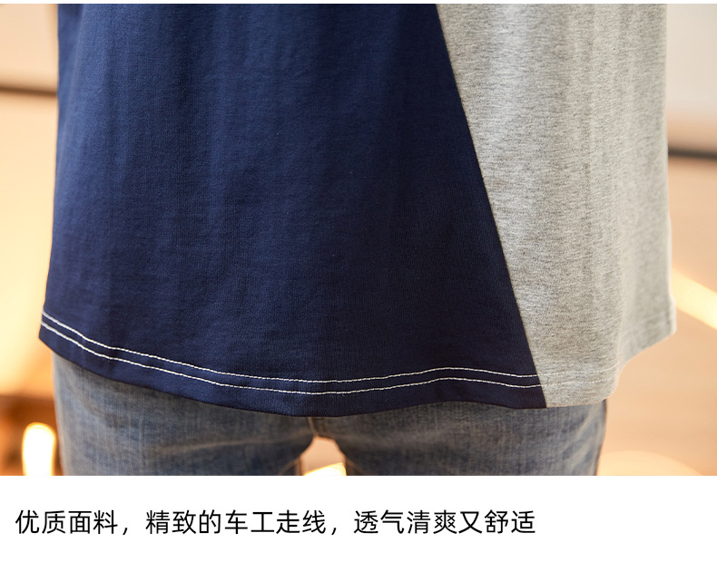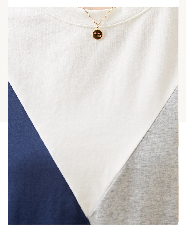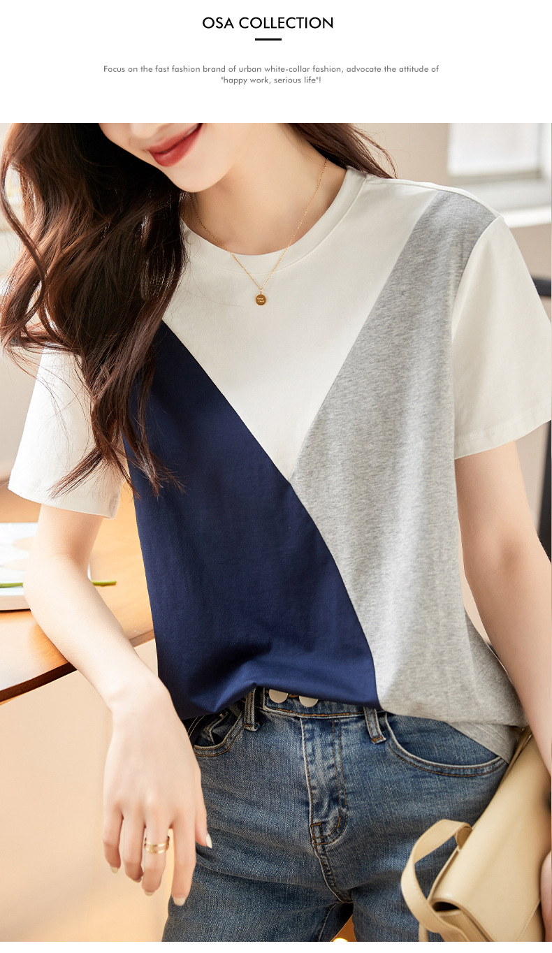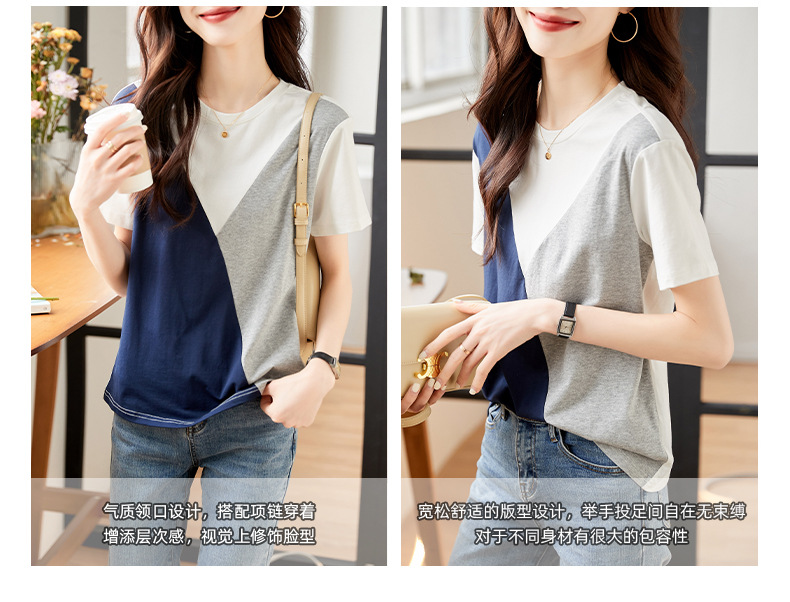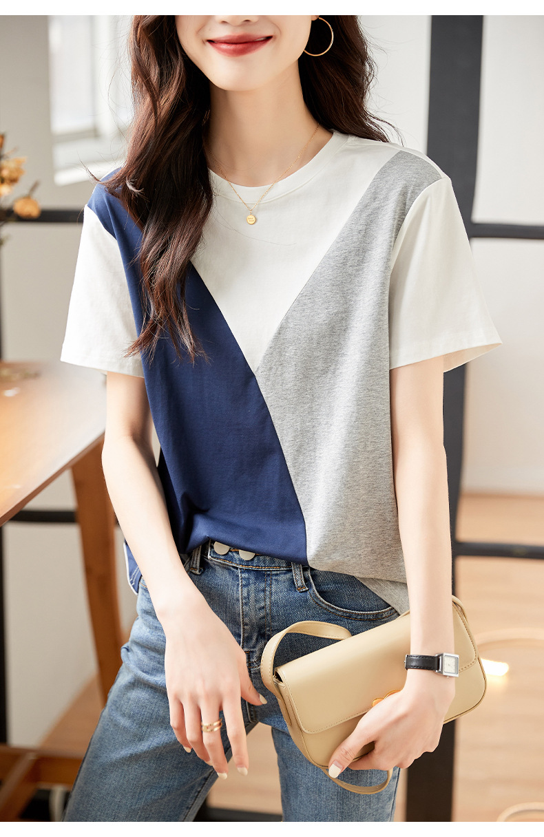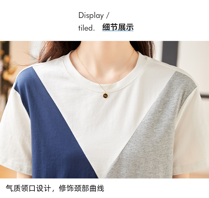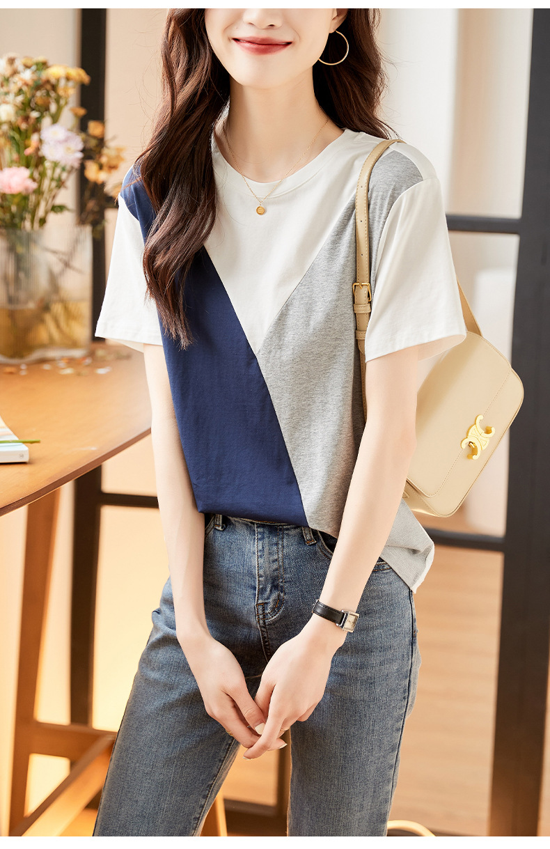 2022 여름 새로운 한국 스타일 편안한 패셔너블한 심플하고 우아한 착용 올매치 슬림핏 커버링 연령 감소 배색 여성 티셔츠스토어 가기