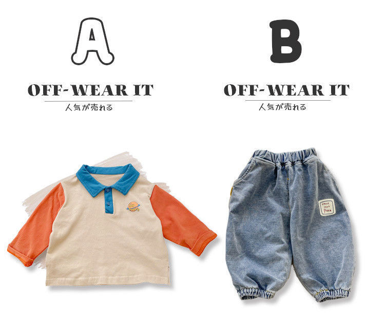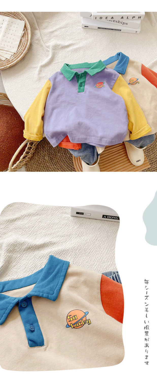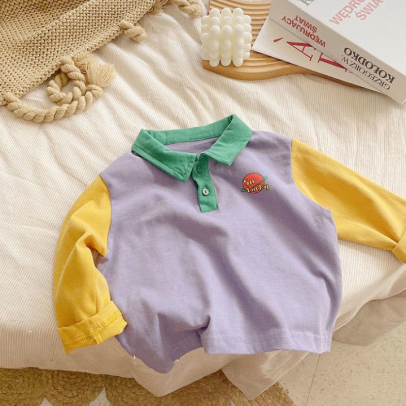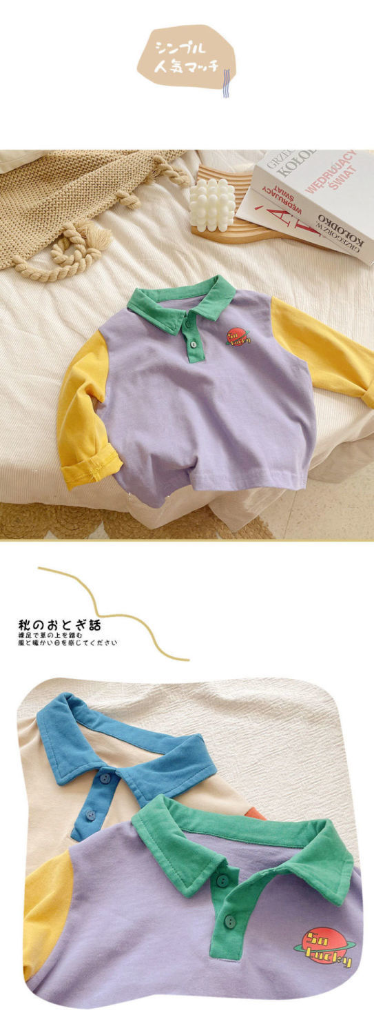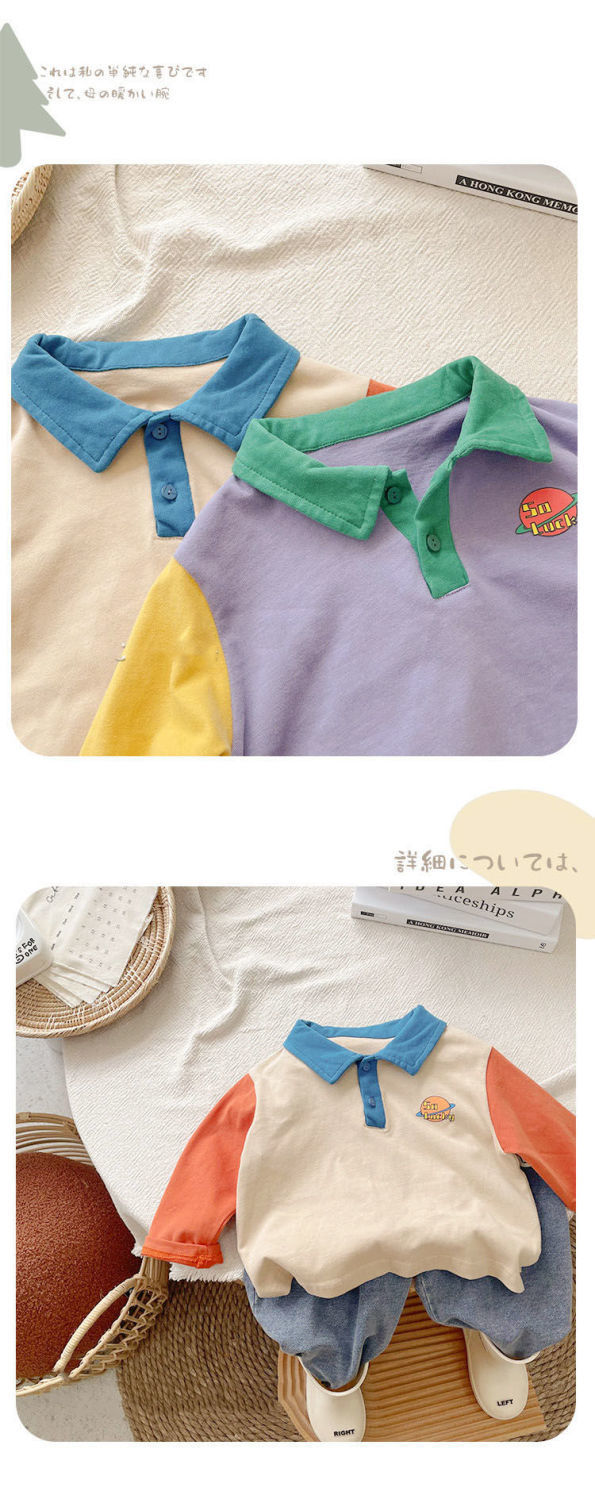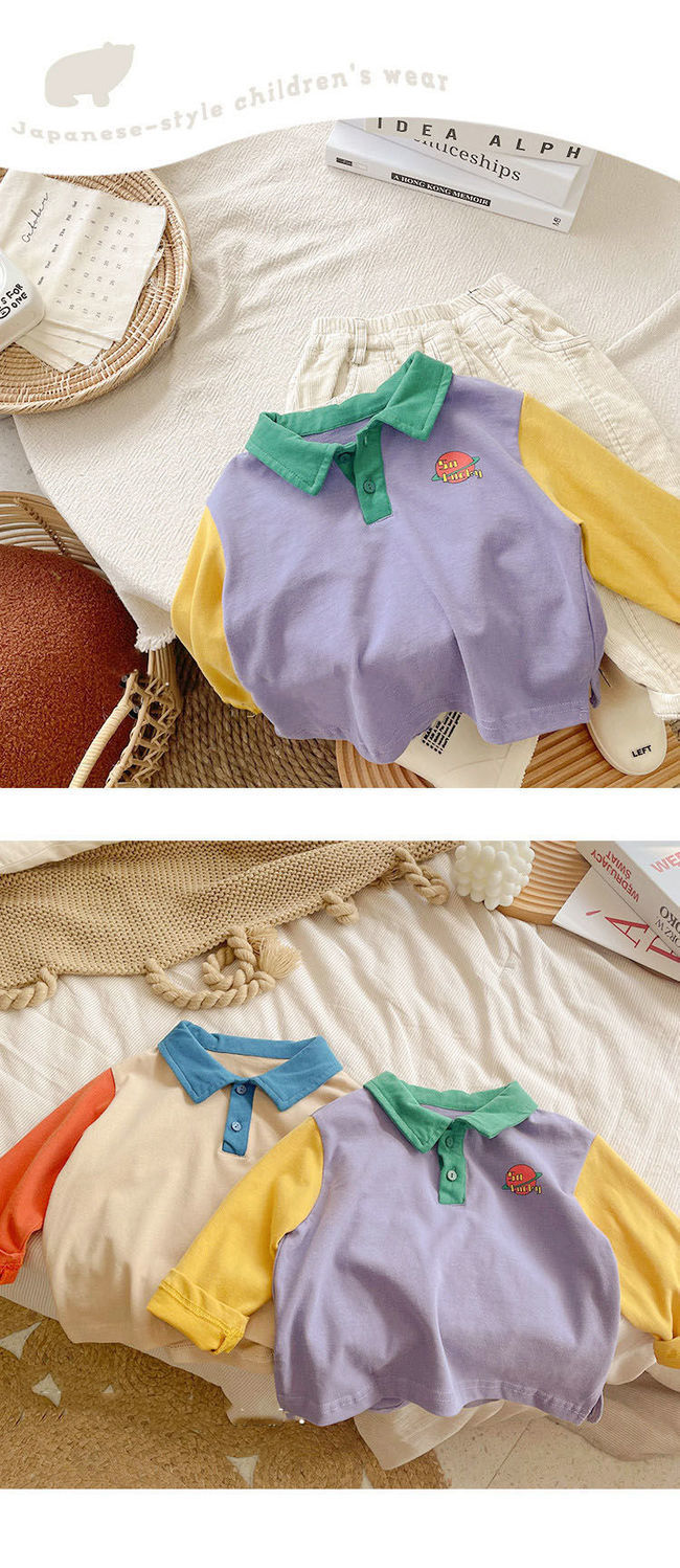 독특한 어린이 대비 색상 ~ 한국 어린이 폴로 셔츠 면 긴팔 티셔츠 아기 봄과 가을 스웨터 봄과 가을 얇은스토어 가기