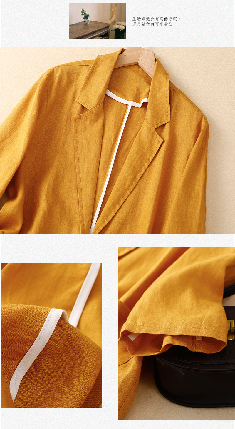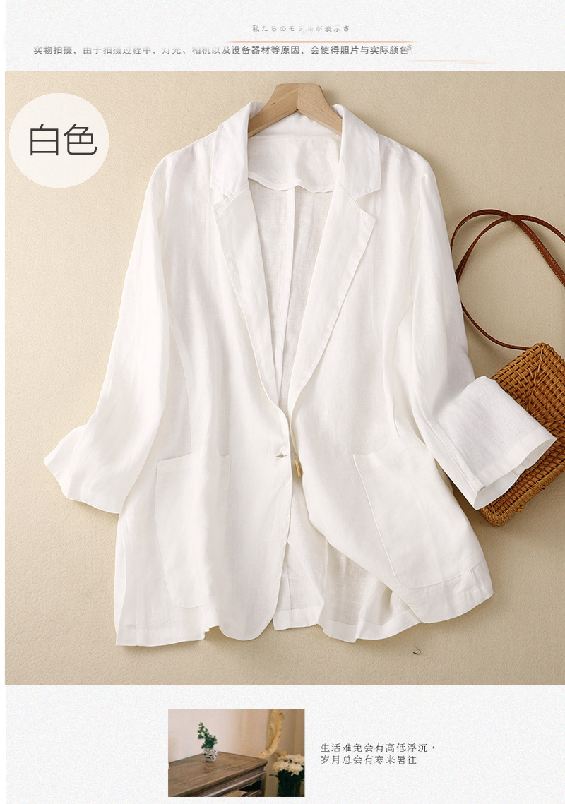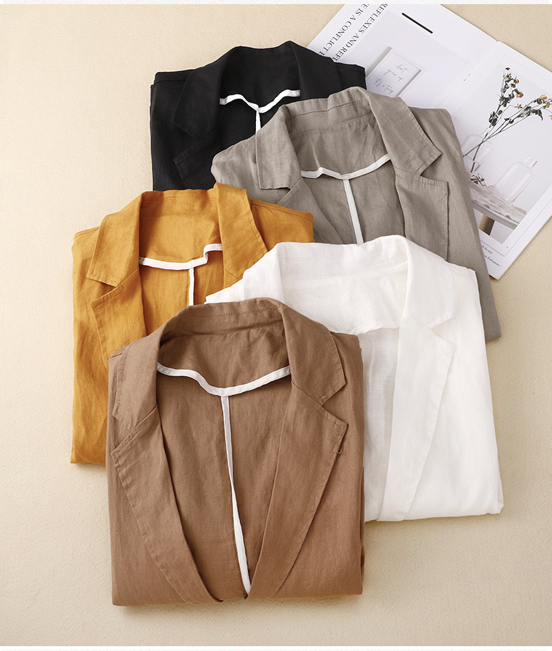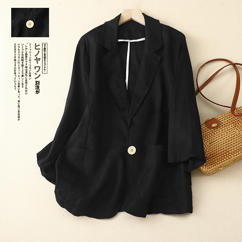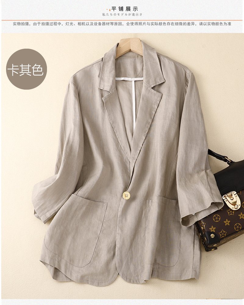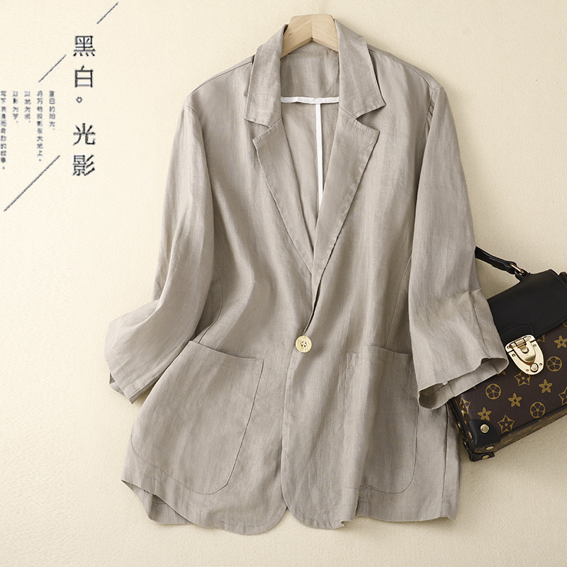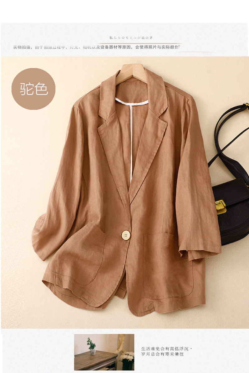 2026 봄 가을 신상품 예술적인 레트로 스타일의 면과 린넨 소재 캐주얼 7부 소매 숏 재킷 여성용 단색 블레이저스토어 가기