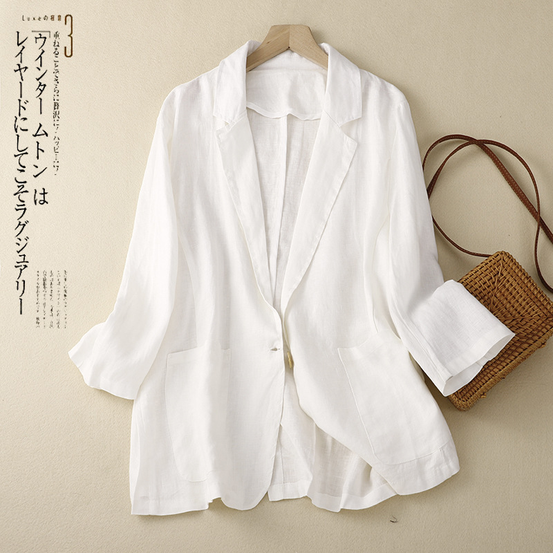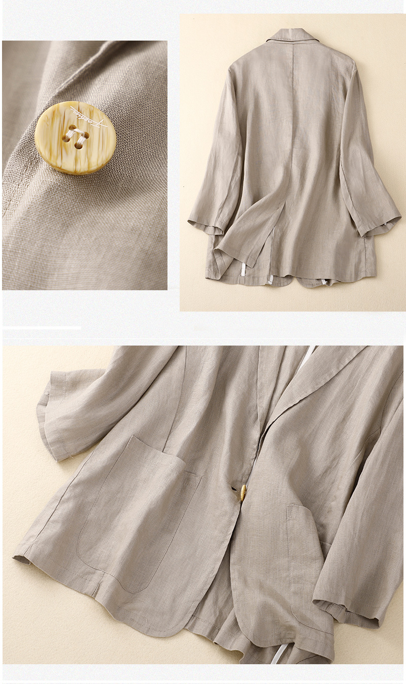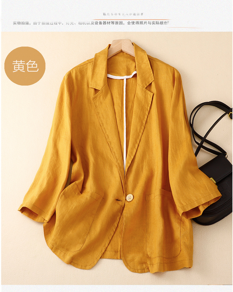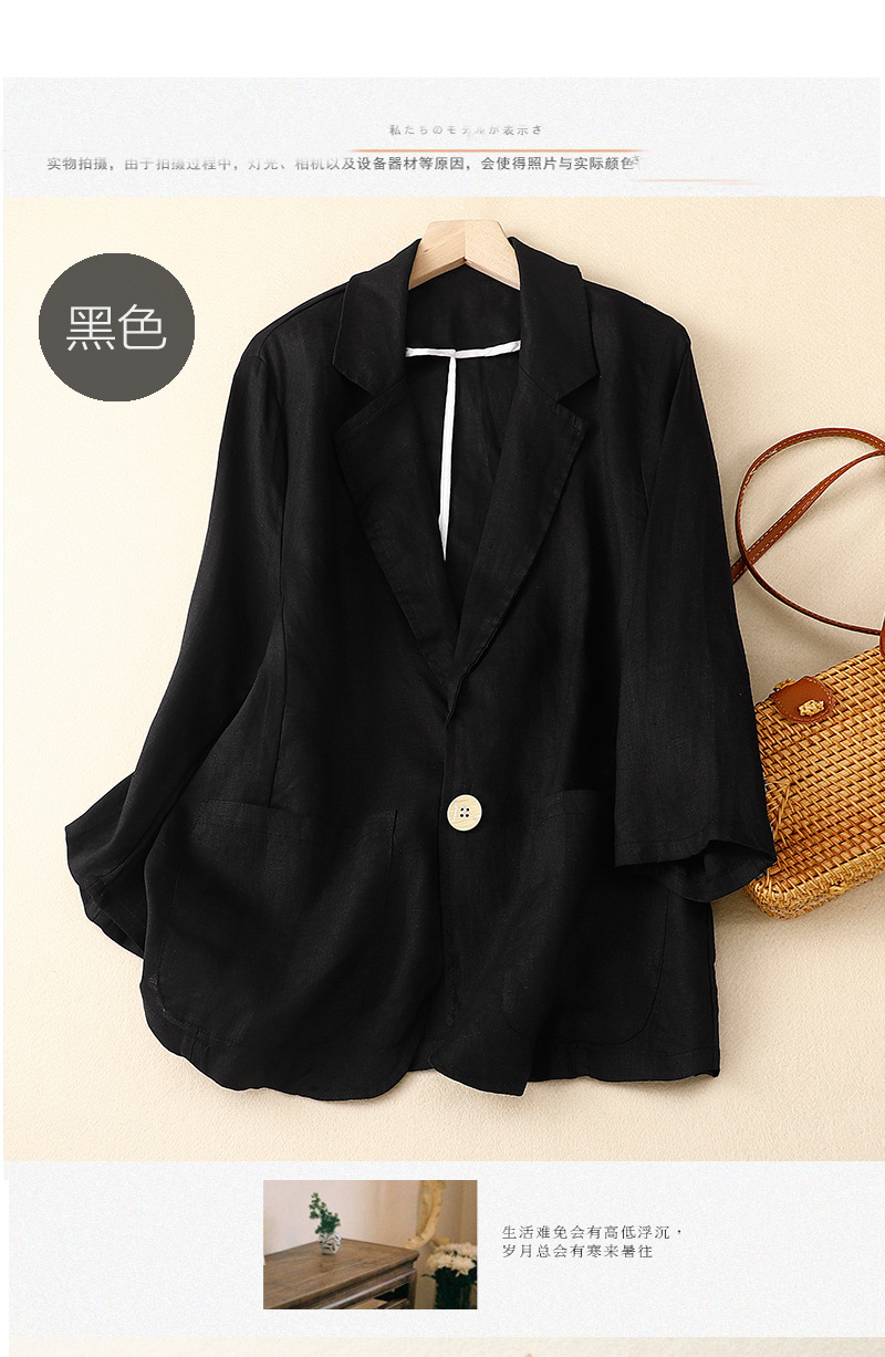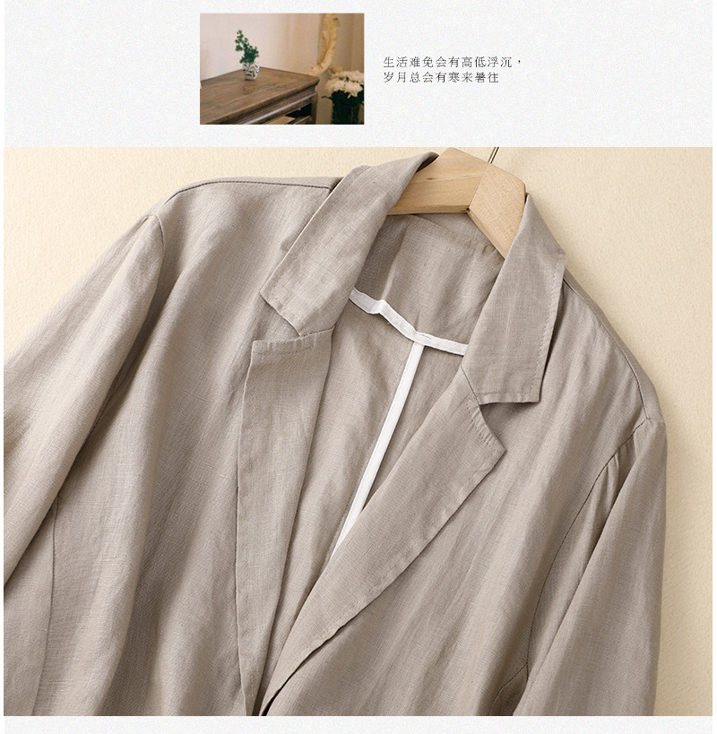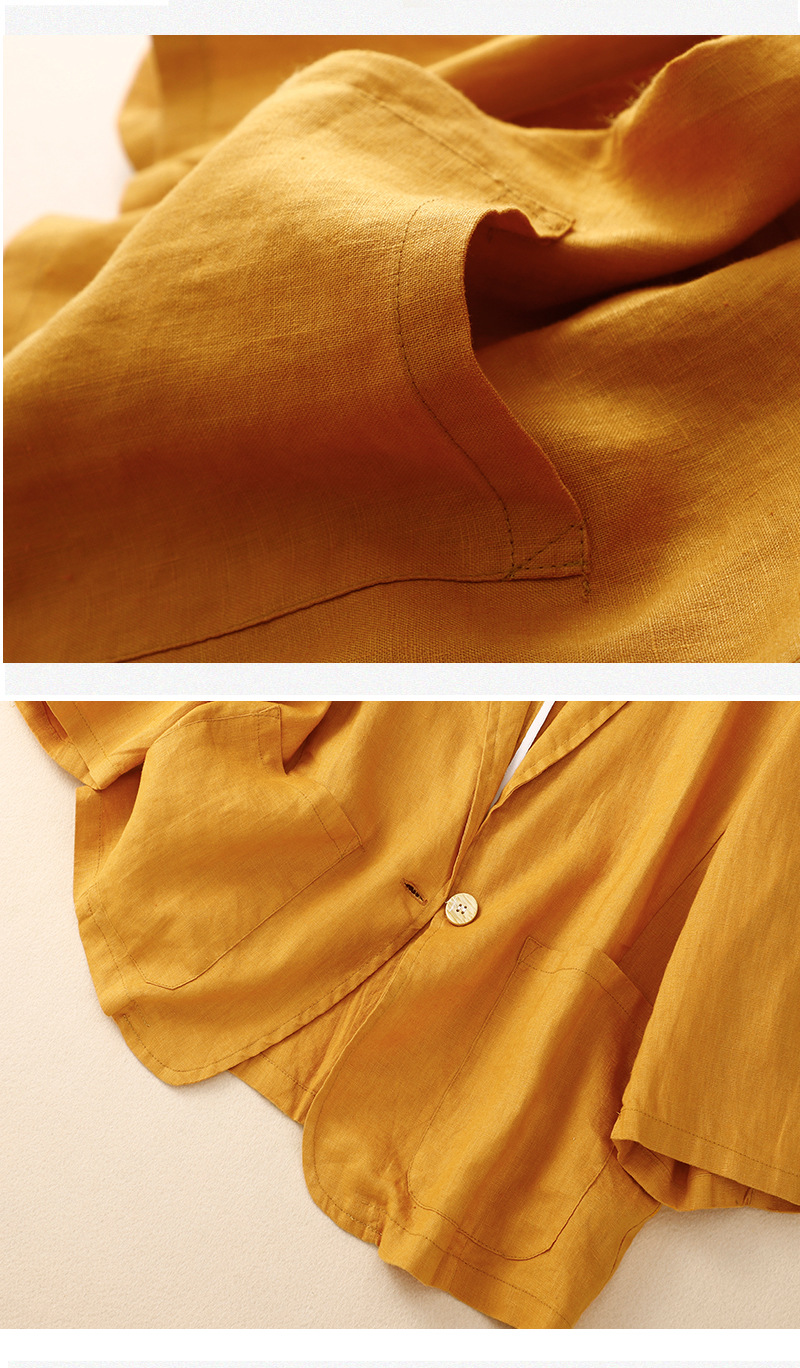 2026 봄 가을 신상품 예술적인 레트로 스타일의 면과 린넨 소재 캐주얼 7부 소매 숏 재킷 여성용 단색 블레이저스토어 가기